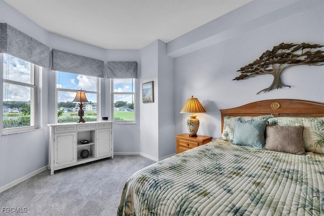 Charming first floor Golf Membership condo with amazing Golf course views!! This beauty is in the desirable neighborhood of Farrington/Wellington and nicely situated close to the cul-de-sac and only steps to the pool and Clubhouse!! Beautiful Quartz counters in the kitchen with knock down of the barstool area for expansive counter space. French door refrigerator, double deep ss sink and custom backsplash, new carpet in both bedrooms and laminate flooring in the living room, water heater in 2023, large master bedroom with bump out, seamless glass shower door, updated light fixtures and nicely painted and decorated in a coastal theme. Sit back on your relaxing tiled lanai while enjoying spectacular golf views of two holes and the water, along with amazing sunsets!! You're sure to have peace of mind with remote controlled storm shutters on your lanai. Wait there's more.. This beauty is being offered Turnkey and ready for immediate occupancy!!The Legends is a prestigious private country club w/ a 30,000+ sq ft Clubhouse offering fine dining, a casual sports pub & a stunning outdoor Sunset Grill!! Tons of amenities to choose from such as tennis, championship golf, bocce ball, pickle ball, a huge lagoon style pool w/ a waterfall & an exercise facility w/ plenty of classes to choose from. Low carrying costs w/ no cart/green fees & low taxes. Resort Style Living to it's finest, move in ready and waiting for you to call it home!!