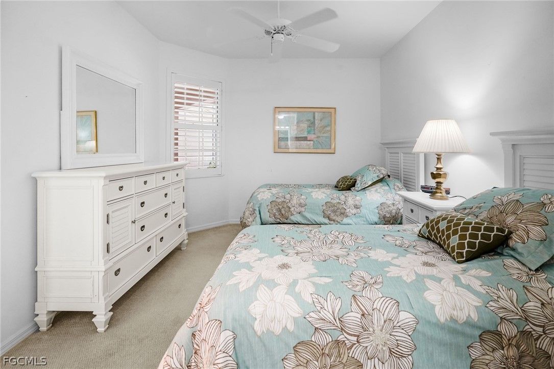 Bright and airy, popular Carlisle floor plan on the 1st floor. This Social membership prooerty has a fantastic view across the 16th fairway and is just a short walk to the community pool. Newer A/C, water heater and appliances. The property is being sold with all of the existing furniture, housewares and decor'. Social membership includes an award-winning resort style pool with waterfall and spa, fitness center, tennis and pickle ball courts, 3 amazing restaurant/bars. The community is very active with social events, various clubs, dances, concerts and much more. Legends Country club has no city taxes or C.D.D. fees, making it one of the lowest taxed country clubs in SW Florida. Located close to shopping, dining, entertainment, l75 interstate and an international airport for easy travels. Resort style living waiting for you to call it home!