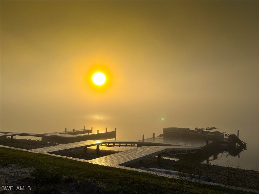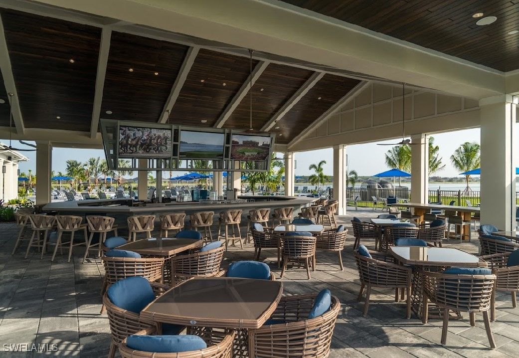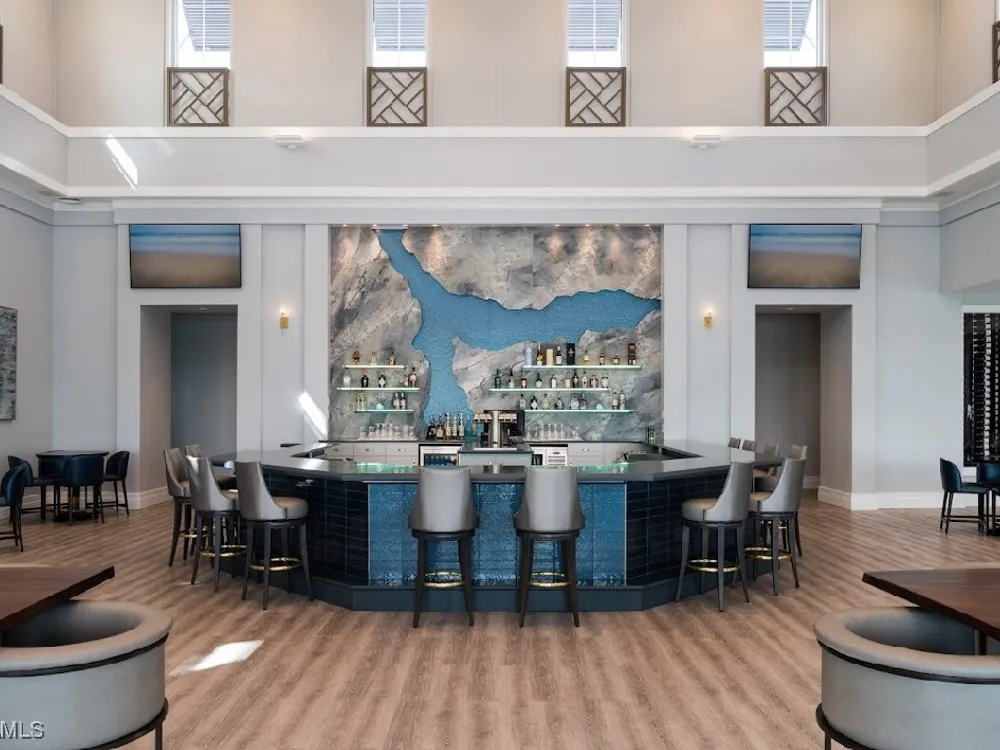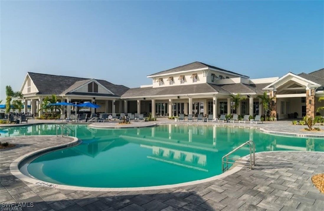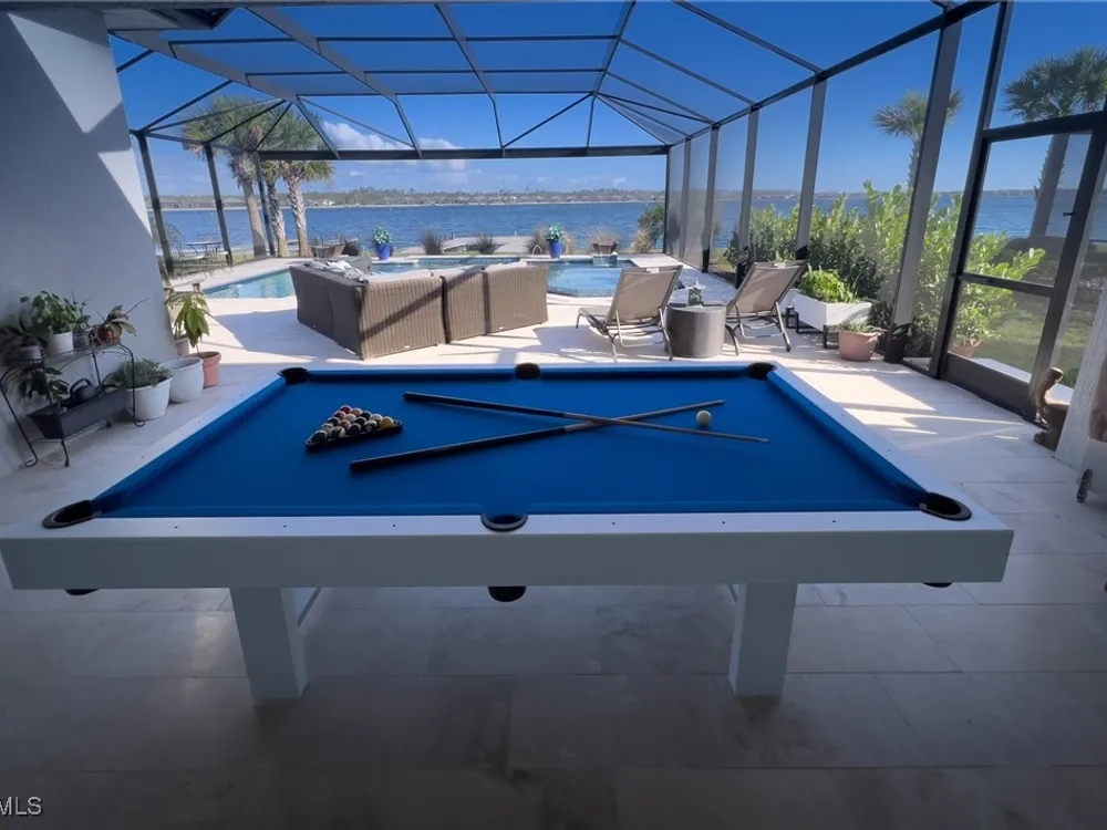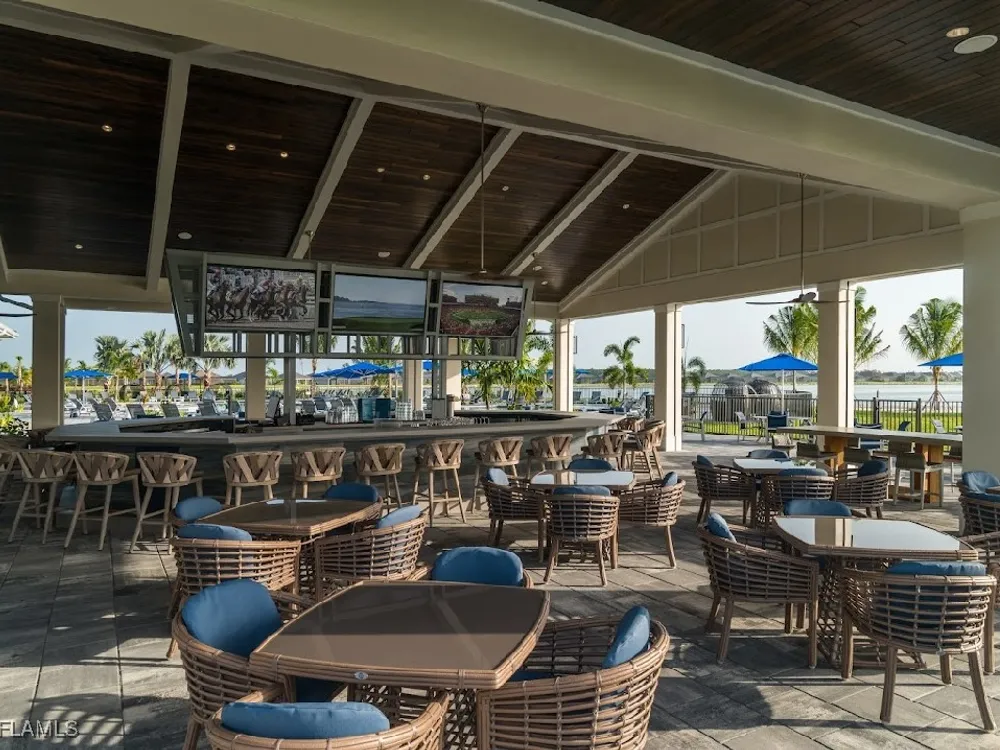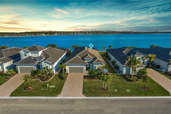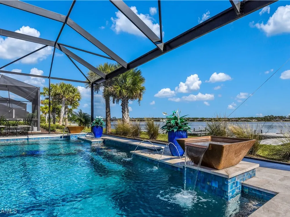 LUXURY UPGRADES THROUGHOUT! You will LOVE this beautiful waterfront setting that this pool home has to offer with a highly desired SE exposure allowing you to take in the picture perfect sunrises overlooking the 225-acre boatable & fishing lake. Enjoy this stunning outdoor living space w/ a private 16'x20' boat dock that extends your waterfront lifestyle, huge pool deck, fully custom designed 30’ x 14’ saltwater pool w/ a raised infinity spa featuring six water features, breathtaking LED lighting, swim-up bar with four pedestal seats overlooking the serene lake, volleyball-ready layout, eight-person spa for ultimate relaxation, RGB LED strip lights illuminate the pool, and pool deck creating an enchanting evening ambiance, covered area w/ mounted tv & outdoor regulation 8’ billiard table/ping-pong table, picture window screen, & water bowls spilling over into the pool (See the full upgrade/feature list attached to the MLS). A wall-mounted, back-lit 75” Sony Bravia 4K HD LED TV anchors the living room. Additional upgrades include all impact resistant windows, full alarm system for the entire house (24/7 monitoring for burglary, fire, 2 waters sensors for flooding, smoke, and carbon monoxide detectors—always ensuring peace of mind), electric remote blackout shades, gas appliances, tankless hot water heater, added insulation throughout home, UV bacteria purification system inside the A/C unit, split a/c unit in the insulated garage, entire home surge protector, high-end fans & designer grade light fixtures, tile flooring throughout, volume ceilings, & more! Vista Wildblue is a distinct gated community in a highly-desired area of SWFL. This community has access to every amenity of Wildblue -resort style pool, tennis & pickle ball complex, lap pool, poolside café bar & grill, indoor formal dining, outdoor chess, bocce ball, horseshoes, basketball courts, day spa, yoga & event lawns, fitness & aerobics centers, boat & kayak launch, playground & white sandy beach. WildBlue is one of the most desirable gated communities in SWFL with 800 acres of freshwater lakes via kayak & boat ramps, & 1300 acres of preserve. Community allows speedboats, jet skis, wakeboarding, water skiing, kayaking, fishing, tubing from your own backyard in addition to multiple community docks on the lakes.