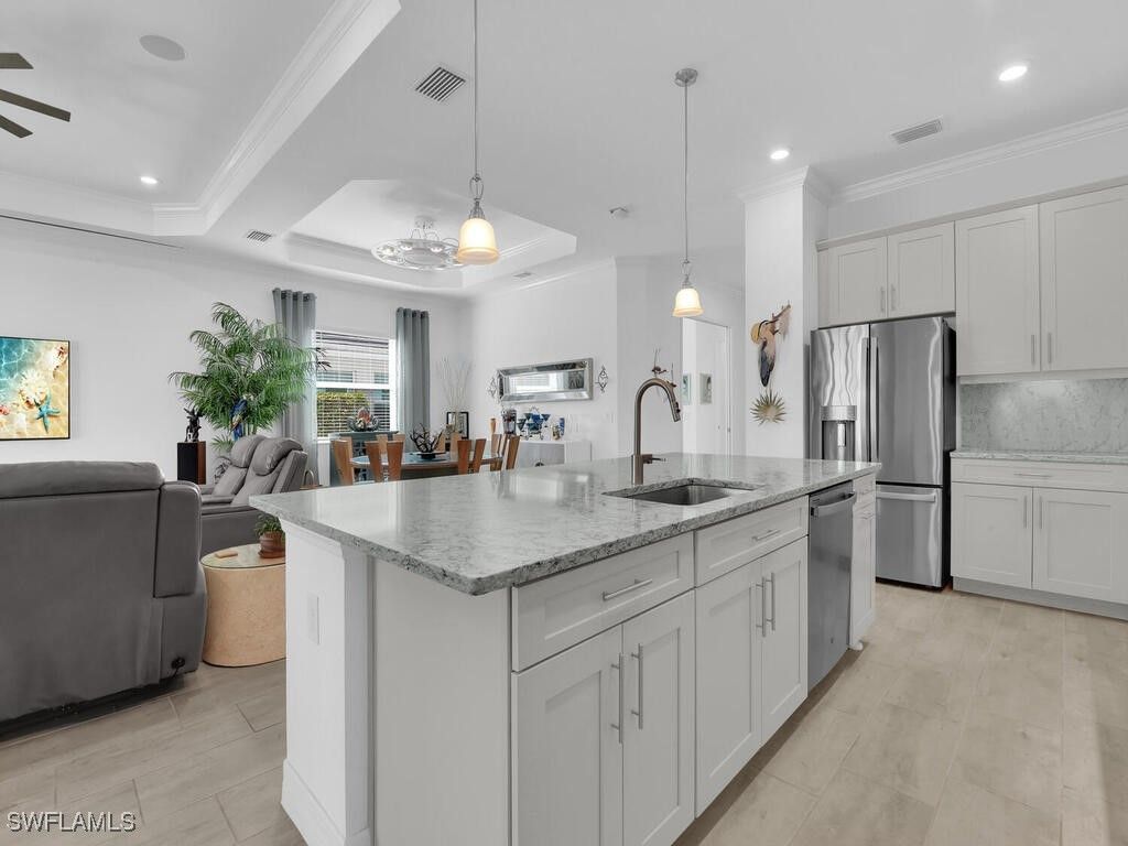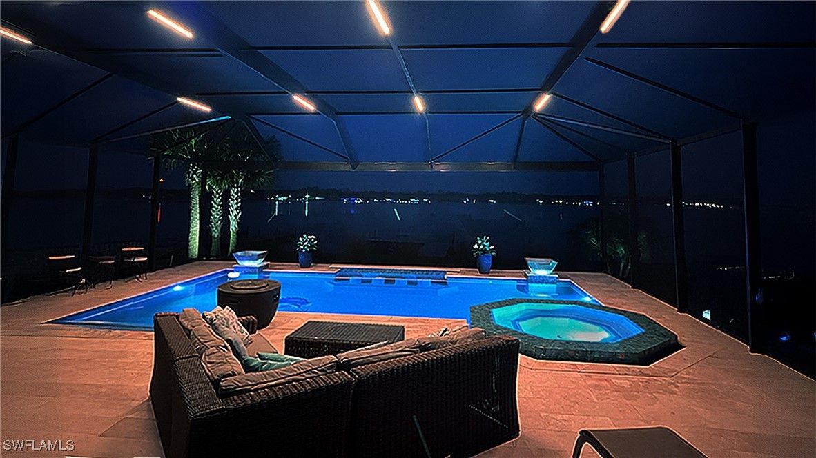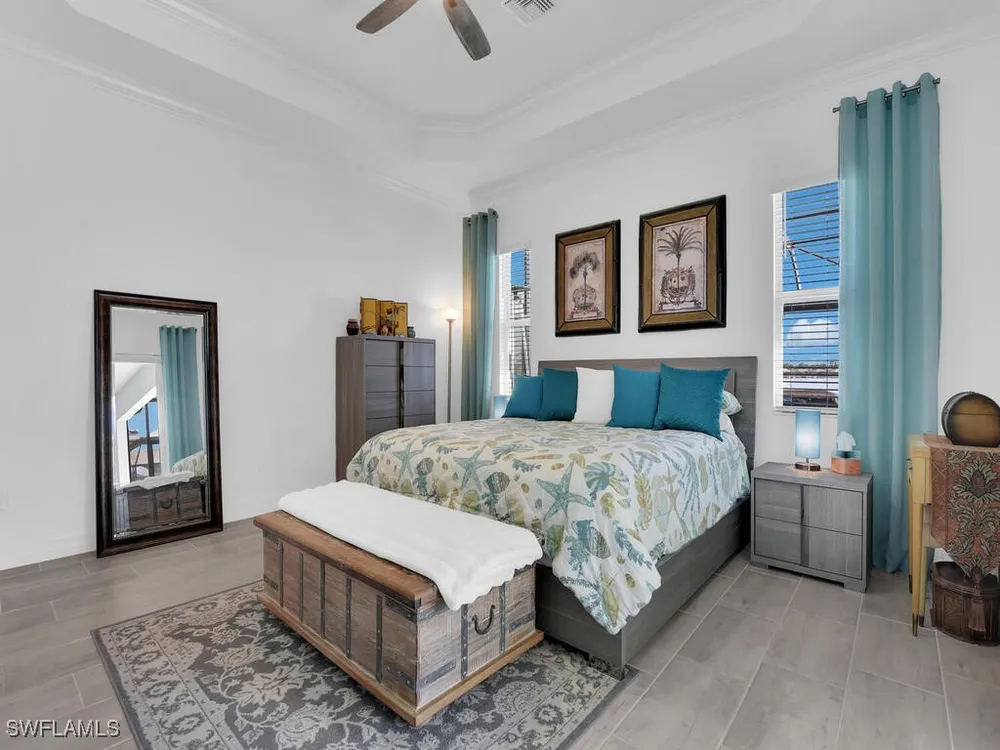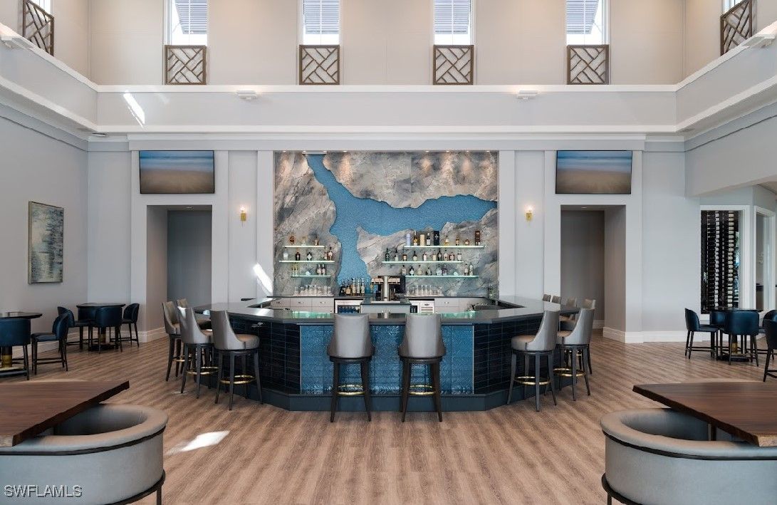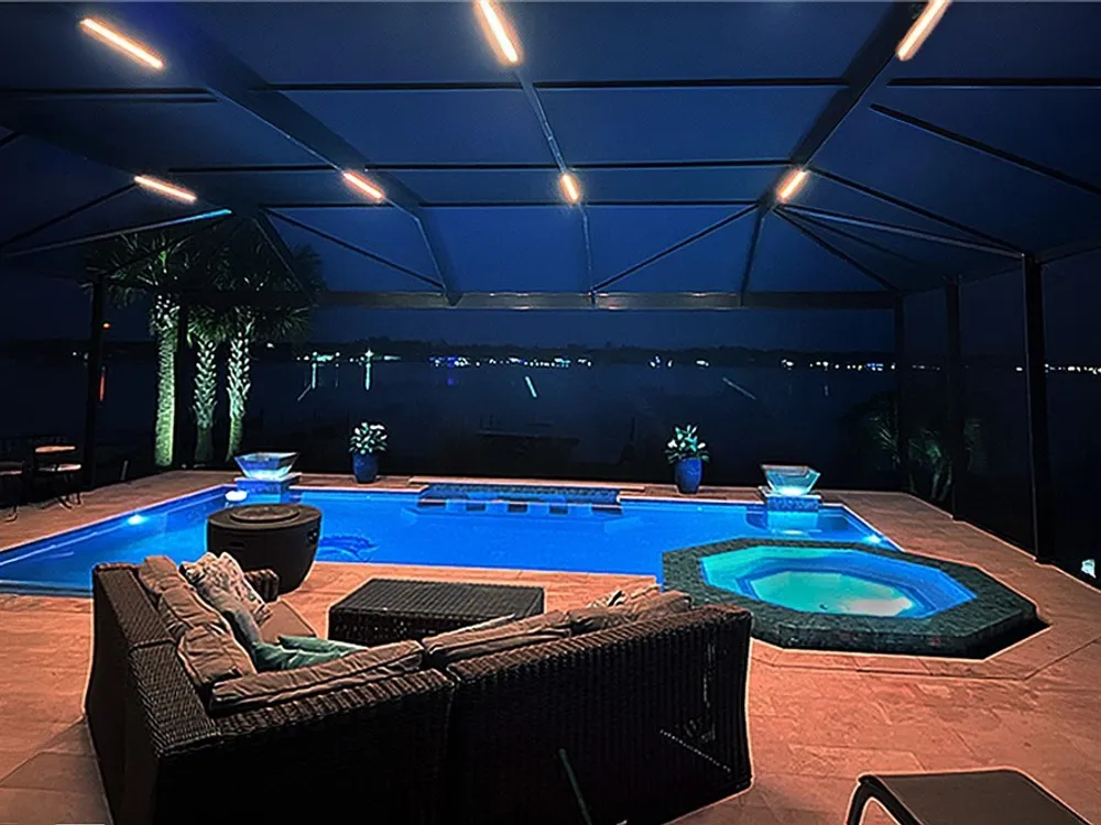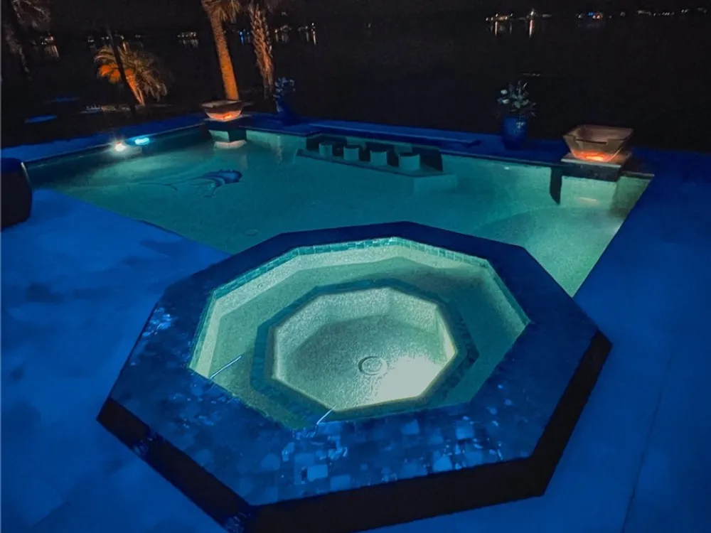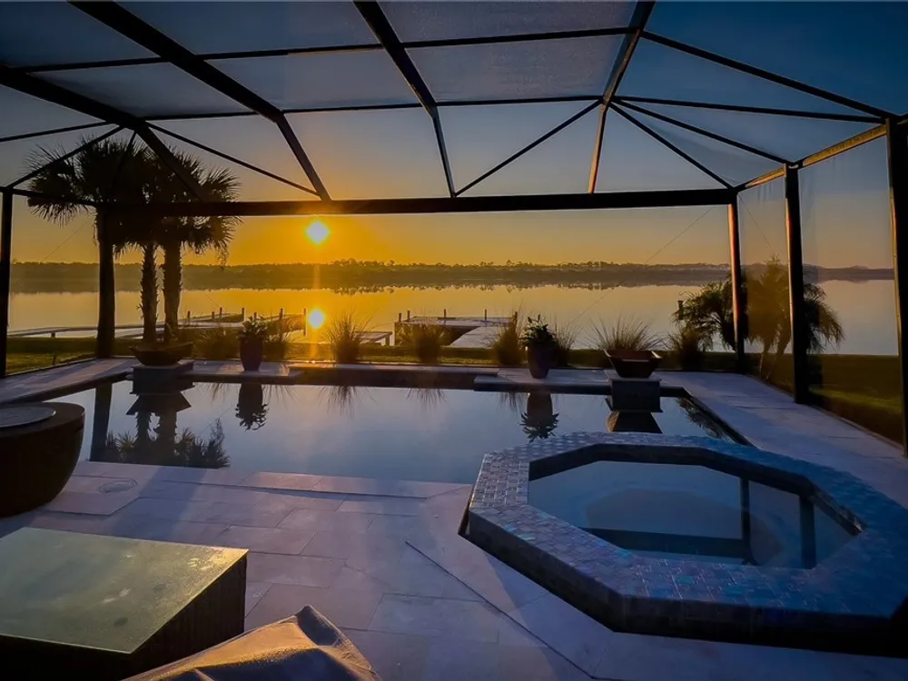 LUXURY UPGRADES THROUGHOUT! You will LOVE this beautiful waterfront setting that this pool home has to offer with a highly desired SE exposure allowing you to take in the picture perfect sunrises overlooking the 225-acre boatable & fishing lake. Enjoy this stunning outdoor living space w/ a private 16'x20' boat dock that extends your waterfront lifestyle, huge pool deck, fully custom designed 30’ x 14’ saltwater pool w/ a raised infinity spa featuring six water features, breathtaking LED lighting, swim-up bar with four pedestal seats overlooking the serene lake, volleyball-ready layout, eight-person spa for ultimate relaxation, RGB LED strip lights illuminate the pool, and pool deck creating an enchanting evening ambiance, covered area w/ mounted tv & outdoor regulation 8’ billiard table/ping-pong table, picture window screen, & water bowls spilling over into the pool (See the full upgrade/feature list attached to the MLS). A wall-mounted, back-lit 75” Sony Bravia 4K HD LED TV anchors the living room. Additional upgrades include all impact resistant windows, full alarm system for the entire house (24/7 monitoring for burglary, fire, 2 waters sensors for flooding, smoke, and carbon monoxide detectors—always ensuring peace of mind), electric remote blackout shades, gas appliances, tankless hot water heater, added insulation throughout home, UV bacteria purification system inside the A/C unit, split a/c unit in the insulated garage, entire home surge protector, high-end fans & designer grade light fixtures, tile flooring throughout, volume ceilings, & more! Vista Wildblue is a distinct gated community in a highly-desired area of SWFL. This community has access to every amenity of Wildblue -resort style pool, tennis & pickle ball complex, lap pool, poolside café bar & grill, indoor formal dining, outdoor chess, bocce ball, horseshoes, basketball courts, day spa, yoga & event lawns, fitness & aerobics centers, boat & kayak launch, playground & white sandy beach. WildBlue is one of the most desirable gated communities in SWFL with 800 acres of freshwater lakes via kayak & boat ramps, & 1300 acres of preserve. Community allows speedboats, jet skis, wakeboarding, water skiing, kayaking, fishing, tubing from your own backyard in addition to multiple community docks on the lakes.