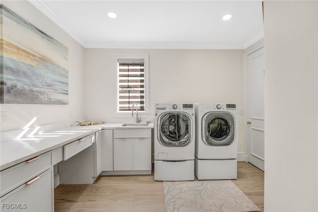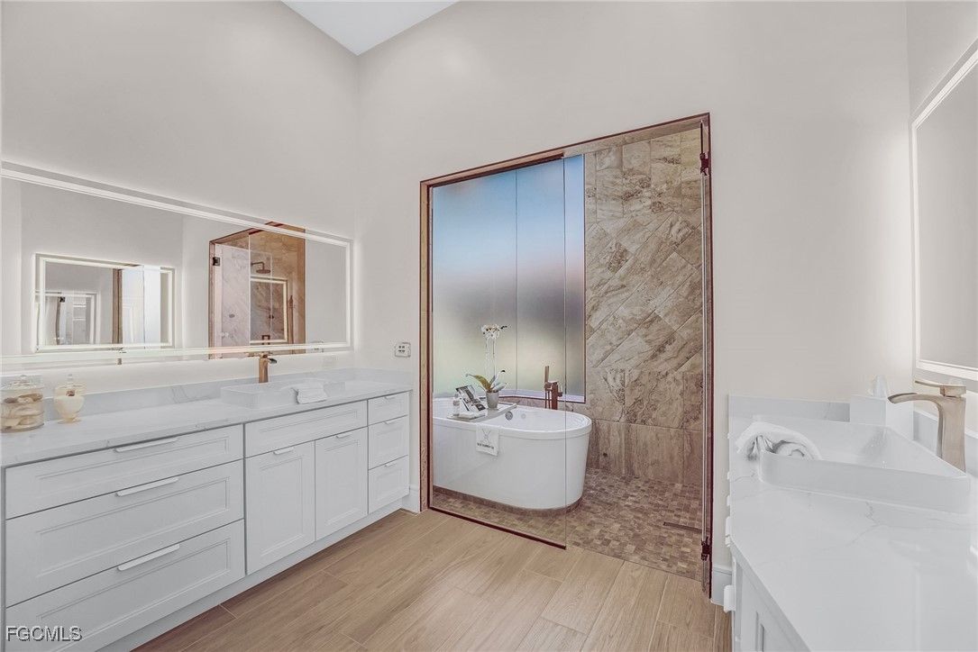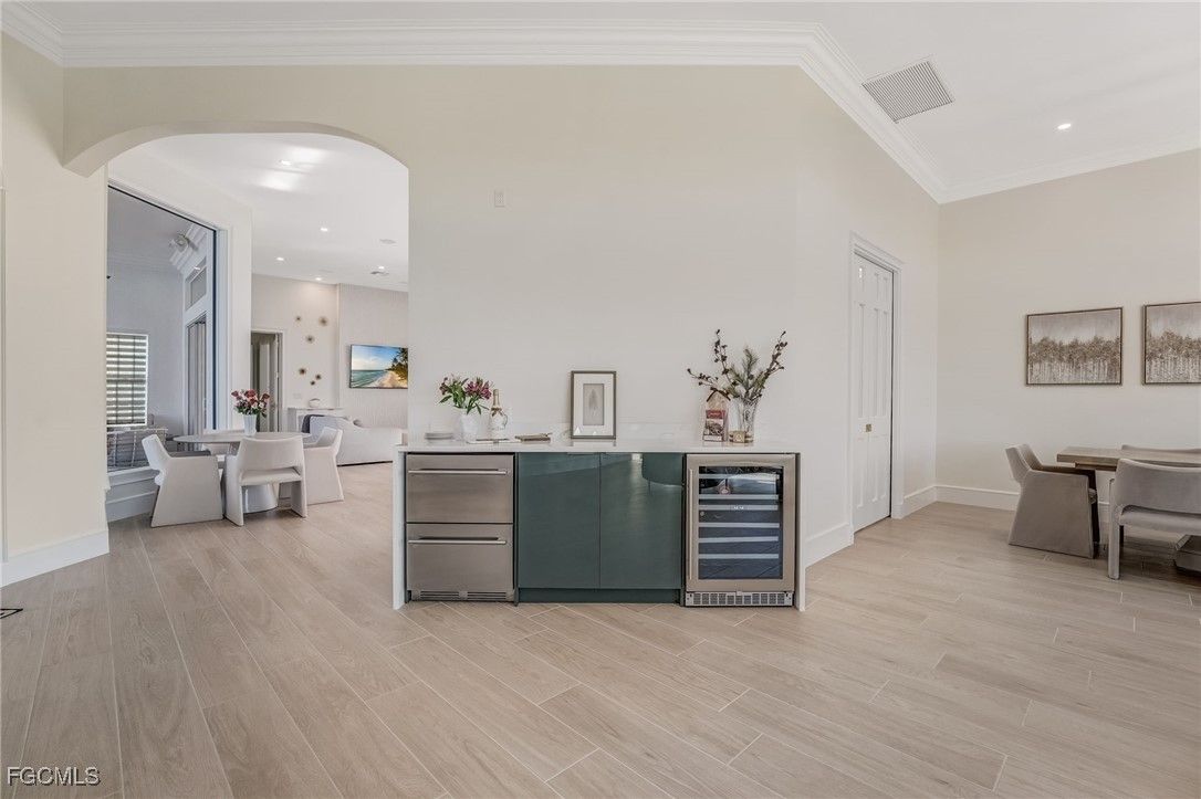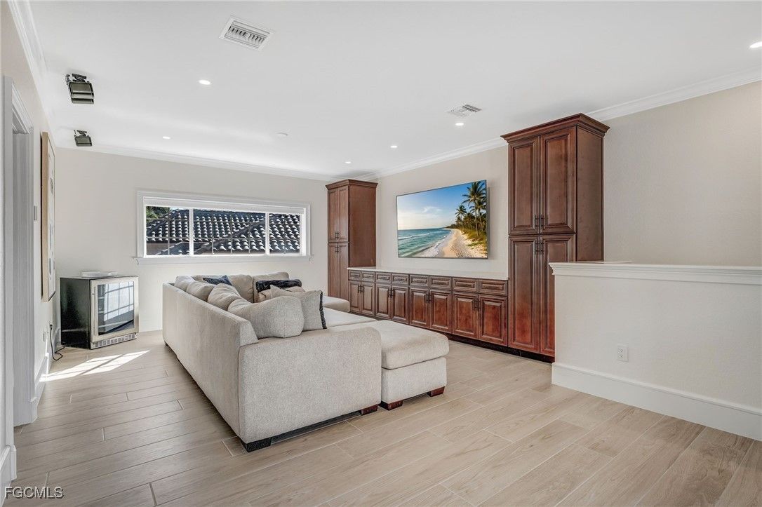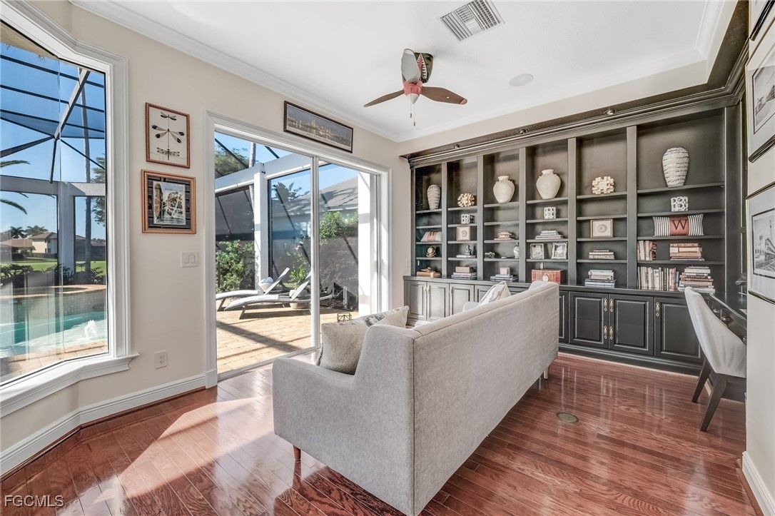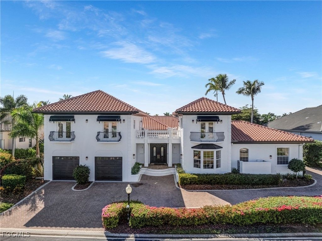 14540 HEADWATER BAY | Gulf Harbour Yacht & Country Club Experience elevated courtyard living in this beautifully upgraded residence located in the exclusive, gated Gulf Harbour Yacht & Country Club. Designed for privacy, luxury, and effortless indoor-outdoor living, this home wraps around an expansive central courtyard featuring a sparkling pool, relaxing hot tub, and a fully equipped outdoor kitchen, your own private retreat at the heart of the home. Step inside to discover a stunning, completely remodeled kitchen, anchored by a dramatic waterfall-edge quartz island and featuring premium finishes throughout. The kitchen is outfitted with a Monogram induction cooktop, pot filler, modern cabinetry, updated lighting, and sleek appliances that make both cooking and entertaining a joy. Porcelain tile flooring flows seamlessly throughout the main living spaces, creating a clean and cohesive feel. Elegant French doors lead into the formal dining room, while a stylish bar area, complete with a temperature-controlled wine chiller, offers the perfect space for evening gatherings. The primary suite is a private sanctuary featuring a luxurious bathroom with tumbled porcelain tile, a relaxing soaking tub, and shower that doubles as an impressive steam shower, providing a true spa-like experience. The additional guest bedrooms are located on the second-floor wing and connect to the casita via a charming upper-level lanai, offering unique indoor-outdoor flow and privacy for guests. The separate casita is exceptionally well-appointed with its own microwave, sink, refrigerator, and stackable washer/dryer, making it perfect for long-term guests, family, or live-in support. An additional office area off the main house provides a quiet and functional workspace, ideal for those who work remotely or need a dedicated study. Completing the home are 2 spacious, 2-car garages, offering ample storage and room for vehicles, golf carts, bikes, and more. Located within one of Southwest Florida’s most sought-after communities, residents of Gulf Harbour enjoy access to championship golf, a deep-water marina, tennis, fitness center, spa, clubhouse dining, and vibrant social events. Golf and Sport memberships opportunities are be available, offering the rare chance to enjoy the full lifestyle without the standard waitlist. 14540 Headwater Bay offers a rare fusion of luxury, comfort, and architectural character- an exceptional courtyard home designed for refined Florida living.