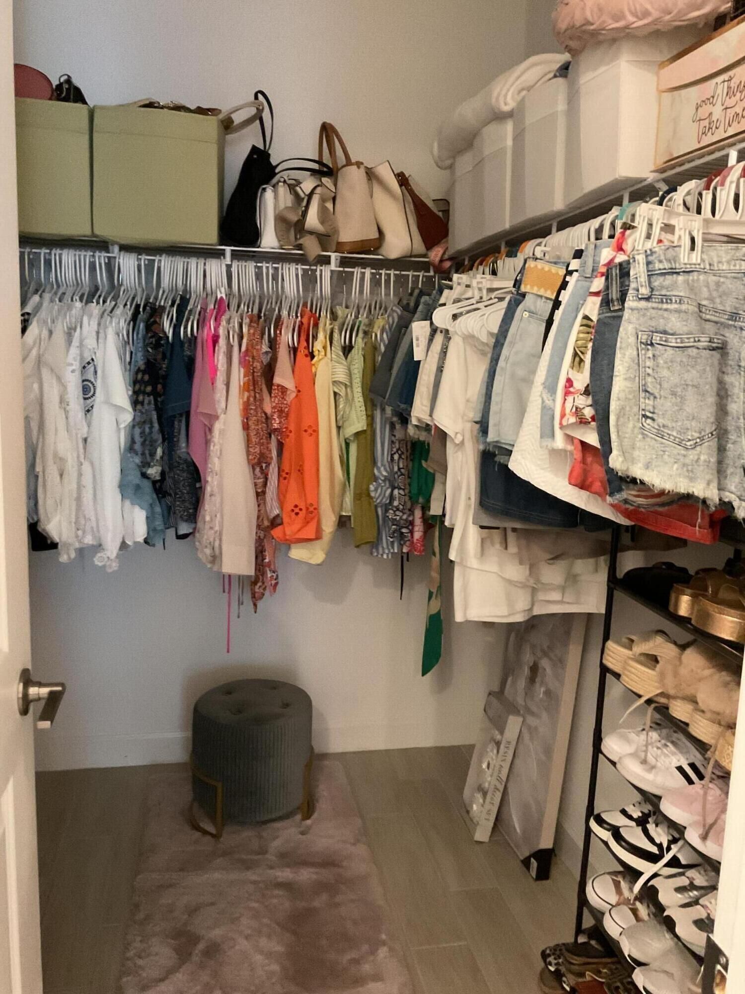 - Built-in Shelving, Closet Cabinetry, Entry Level Living Area, Pantry, Split Bedrooms, Walk-In Closet(s), Family Room, Family/Dining Room, Blinds, Impact Glass, Single Hung Metal Window(s), Sliding Window(s), Dual Sinks, Primary Downstairs, Separate Shower