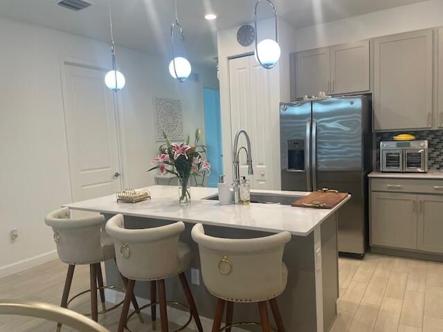 Beautifully decorated 3 bedrooms and 2 bathrooms open concept kitchen quartz counter top owner added Extra cabinets and upgraded counter top for extra space and storage with a nice island to entertain guest. Stainless steel appliances and porcelain tiles throughout a very large primary bedroom with en-suite bathroom large shower with upgrades and dual vanity beautifully decorated living room facing the patio with lush landscaping for outdoor entertainment .Enjoy the resort style clubhouse pool, fitness studio, game rooms, arts and crafts, tennis , pickleball and close to beautiful delray shopping and restaurants just 6 miles to the beach and beautiful downtown delray with lots of entertainment .