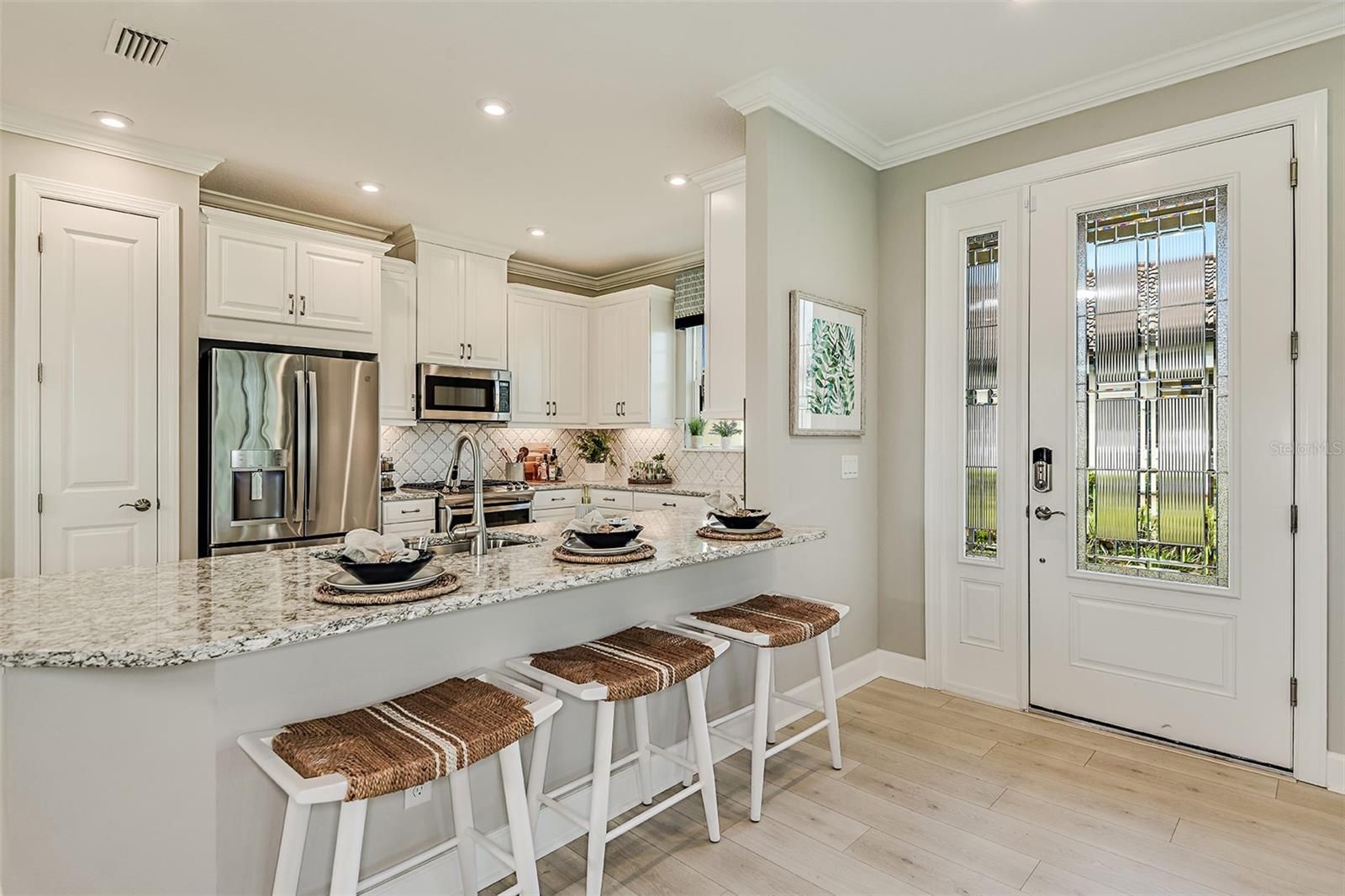 Under Construction. What's Special: Oversized Garage | Golf Course Community | Single Level Living. New Construction - June Completion! Built by America's Most Trusted Home Builder. Welcome to the Arezzo at 14541 Derna Terrace in Esplanade at Azario Lakewood Ranch! This beautifully designed new villa welcomes you through a side entry into an open and spacious layout made for easy living. The designer kitchen overlooks the dining area and inviting great room and features white shaker cabinets, quartz countertops, and cushion close doors and drawers for a polished finish. Luxury vinyl plank wood tone flooring runs throughout the main living areas and is complemented by crown molding for an elevated touch. Sliding glass doors lead from the great room to a covered lanai with a screened patio, perfect for relaxing outdoors. The primary suite offers a private retreat with a well-appointed bath and a two-sided walk-in closet, while two secondary bedrooms, a full bath, a dedicated study, and a conveniently located laundry room round out the home, all enhanced by whole house impact windows. Additional Highlights Include: Study with pocket doors in place of flex, extended screeded patio, 8' interior doors, tray ceiling package, 4' garage extension, and additional sink at secondary bath. Photos are for representative purposes only. MLS#A4689411 Resort-Style Living in Esplanade at Azario Lakewood Ranch, the perfect blend of relaxation and recreation! Enjoy the heated resort-style pool, state-of-the-art fitness center, and energizing aerobics classes. For outdoor enthusiasts, there are pickleball courts, scenic trails, Vitality Park, and if golf is your game, you'll love Esplanade's 18-hole championship course! Unwind with a facial massage or by the fire pit after a workout. Exclusive amenities like a Wellness Center, Culinary Center, and sports courts ensure there's something for everyone, whether you want to stay active or relax in style.
