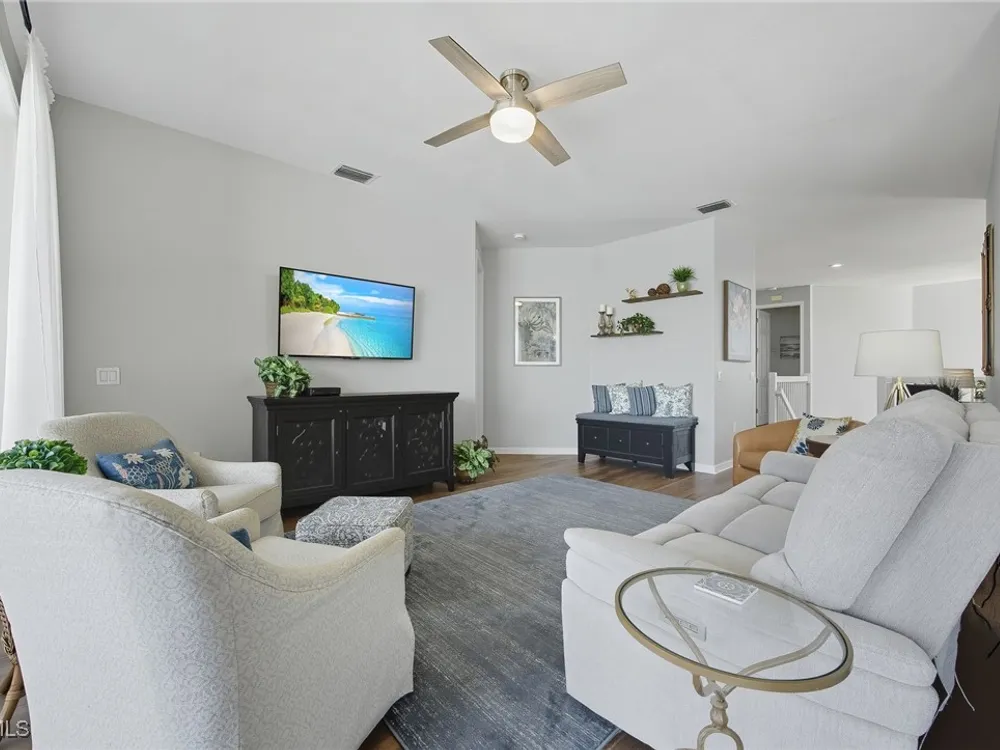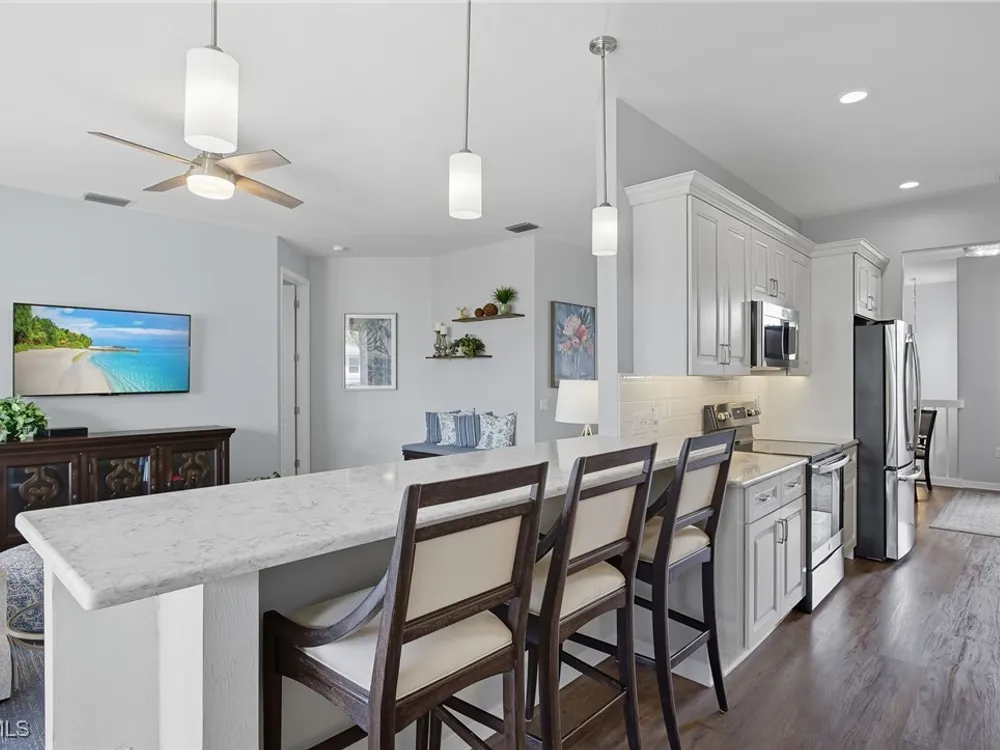 If you’ve been dreaming of a beautifully renovated turnkey home in Southwest Florida, this is it! This second-floor, 3-bedroom, 2-bath coach home in Grande Cay at Gulf Harbour Yacht & Country Club has been completely redone and is being sold turnkey, complete with stylish furniture and décor. The open great-room design is bright and inviting, with abundant natural light and a spacious layout perfect for entertaining. The kitchen showcases quartz countertops, stainless steel appliances, spot lighting, and under-cabinet lighting a perfect blend of design and function. The primary suite offers a walk-in closet and an ensuite bath with dual vanities and a walk-in shower. Enjoy the benefits of second-floor living with added privacy, vaulted ceilings, and enhanced views. Step out to the large screened lanai overlooking the sparkling community pool, which is less than a one-minute walk from your front door, ideal for a quick dip or relaxing in the sun. Grande Cay residents enjoy a private community pool and spa, while optional membership at Gulf Harbour provides access to world-class amenities including championship golf, tennis, a state-of-the-art fitness center, full-service marina, clubhouse dining, and a vibrant social calendar. A sports membership is currently being offered at an incredible discount, an excellent opportunity if you’d like to become a member. Located in highly desirable South Fort Myers, just minutes from beaches, shopping, dining, and RSW airport, this property combines modern updates, comfort, and the sought-after Gulf Harbour lifestyle. Schedule your private tour today!