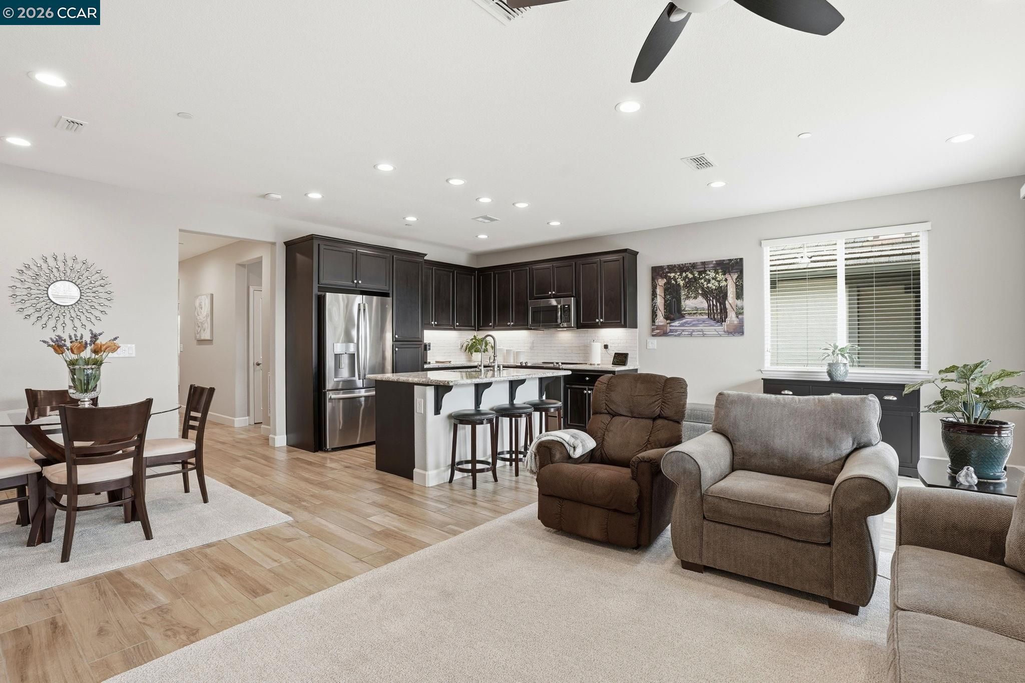 Stunning Highly Desirable and Rarely Available Duet in the Coveted Gated 55+ Barcelona Enclave. If Privacy, Location and Condition are important to you then look no further! This is truly a Turnkey home that has an open concept and shows like a model. Premium builders lot with stunning views of the hills & low maintenance landscapes. Home features an office space, Gourmet Kitchen with large granite island & countertops, subway backsplash, GE SS appliance package, SS sink w/upgraded faucet, espresso cabinetry & new dishwasher. Solar, LED lighting, ceiling fans, high end tile work and upgraded carpet & pads, whole home water filtration system & reverse osmosis system. Large primary suite w/amazing views of the hills. Custom interior paint and many windows make this a light & bright home. Rear yard is your own private soothing retreat that backs to the greenbelt has amazing views of the hills, no rear neighbors and a covered California Patio. Barcelona has a beautiful Clubhouse, SPOOL and Bocci ball court! Across the street is a park with Pickleball, Dog Parks, Basketball & Picnic areas. Close to shopping, restaurants, HYW 4 and just minutes to historic Downtown Brentwood and award winning wineries! This home shows like a new home and has been well loved! Pride of ownership shows.