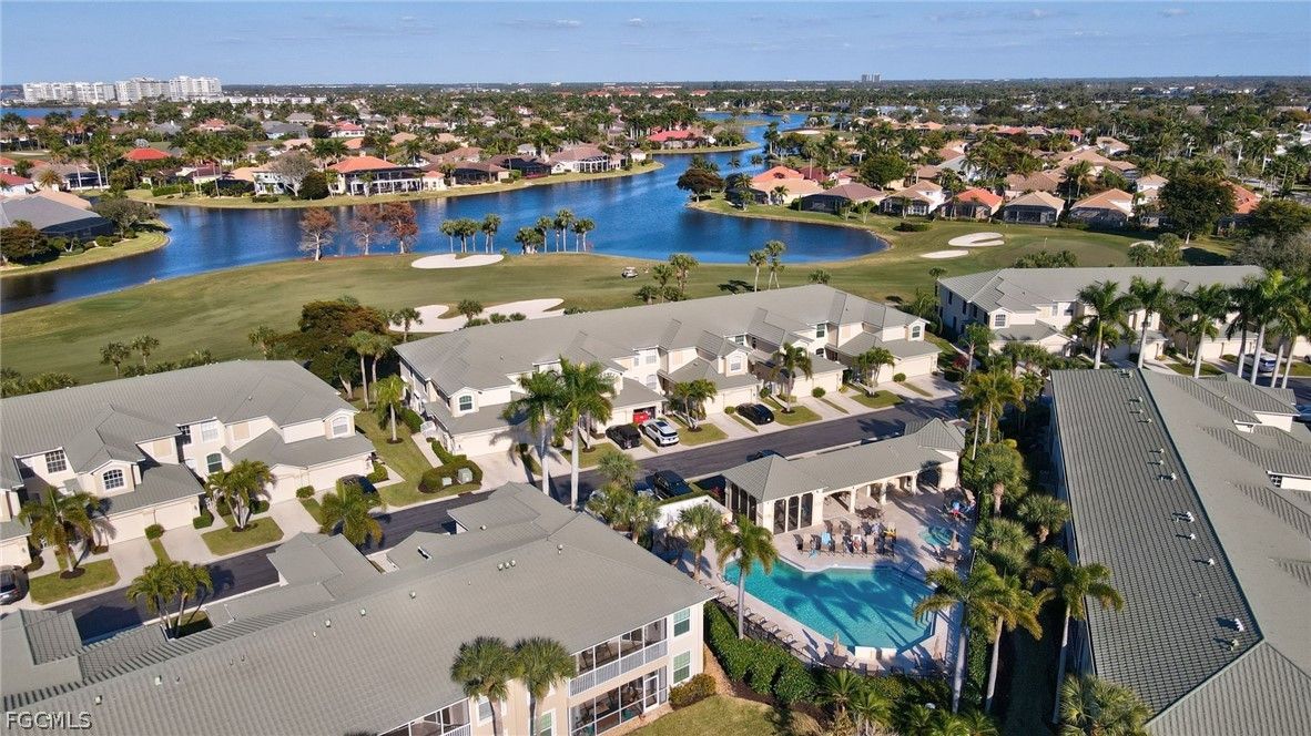 Location, location, location, this condominium has a fantastic golf course and lake view and is located directly across from the neighborhood pool. This is a second floor 2 bedroom plus den and a one car garage. Bright and cheery with tile throughout the living area and storm shutters on the lanai. Gulf Harbor is a highly-desired community with its unparalleled access to boating, golf and private club amenities and memberships are still available for purchase. The Grande Cay neighborhood has its own lovely pool with loungers, umbrellas, and grills for residents to enjoy. The beaches of Sanibel and Captiva are only short drive away!
