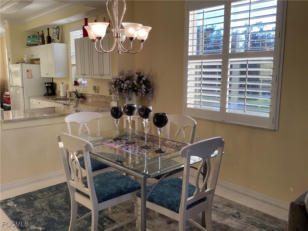 You won't be disappointed as you enter this beautiful, and pristine home. This end unit condo has been meticulously cared for with beautiful engineered vinyl floors throughout the living area, while the kitchen and breakfast nook have pristine neutral tile for easy upkeep. The condo is light and bright with lovely plantation shutters, neutral granite counters in the kitchen, with lots of work space. Newer refrigerator, and A/C was installed in 2021. The view from the lanai is absolutely breathtaking, overlooking the brand new renovated golf course and lake. Enjoy the view, but not the golf fees, as this is a social only home but with all the other amenities Legends has to offer. Tennis, bocce ball, Pickleball, gorgeous outdoor dining, sports pub, and grill to name a few!
