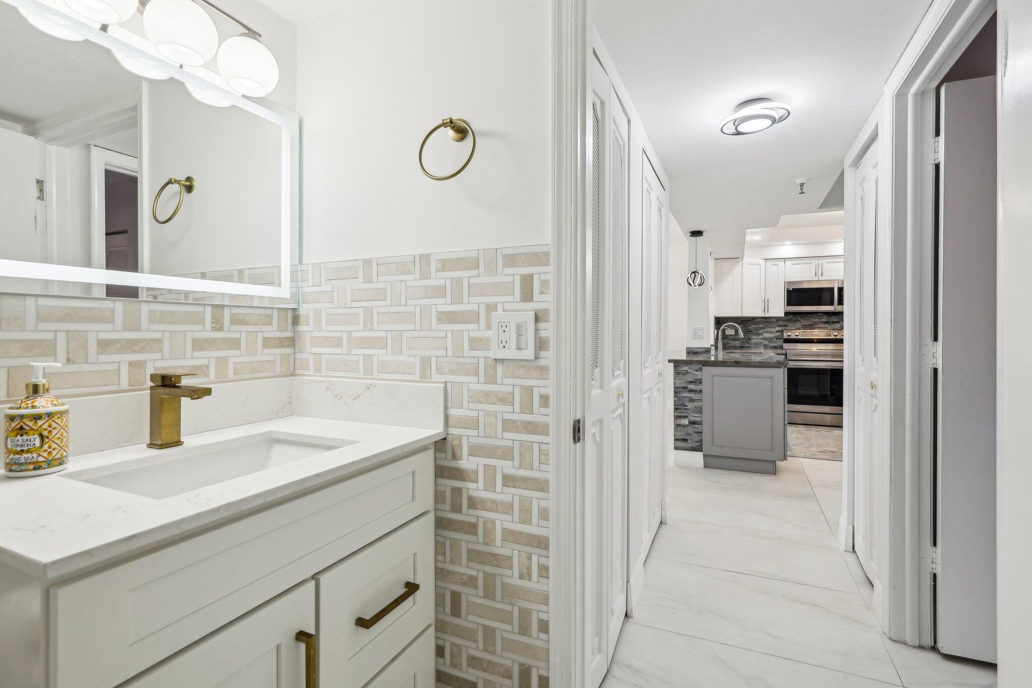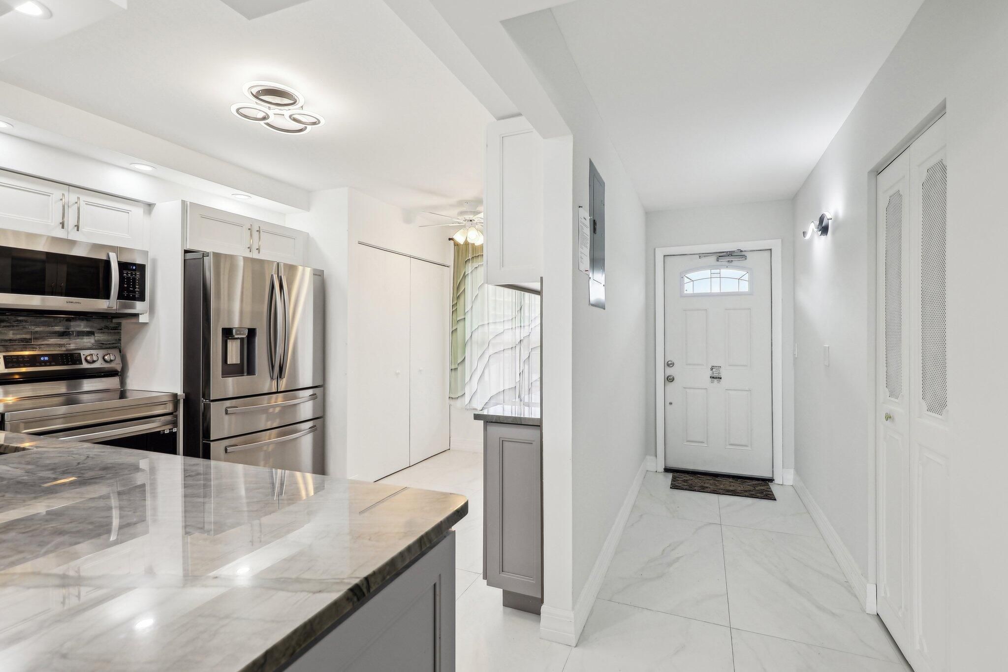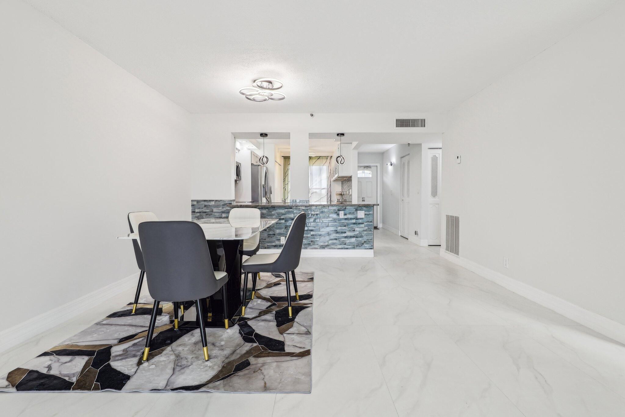 Spacious 2-bedroom, 2-bath condo in Bonaire Village — move-in ready and thoughtfully updated. Open-style kitchen with stainless steel appliances, quartzite counters, and additional built-in cabinets for extra storage. Light-filled interior features Euro-style large tile flooring throughout and an enclosed patio with hurricane impact windows. In-unit washer & dryer, updated electrical panel, newer AC & newer hot water heater. Primary suite offers a remodeled bathroom with modern vanity, walk-in shower and a generous walk-in closet. Second bath also remodeled with contemporary finishes. Active community amenities include a clubhouse, gorgeous pool and additional recreational facilities. Well-maintained unit in a vibrant, conveniently located community — don't miss this opportunity.