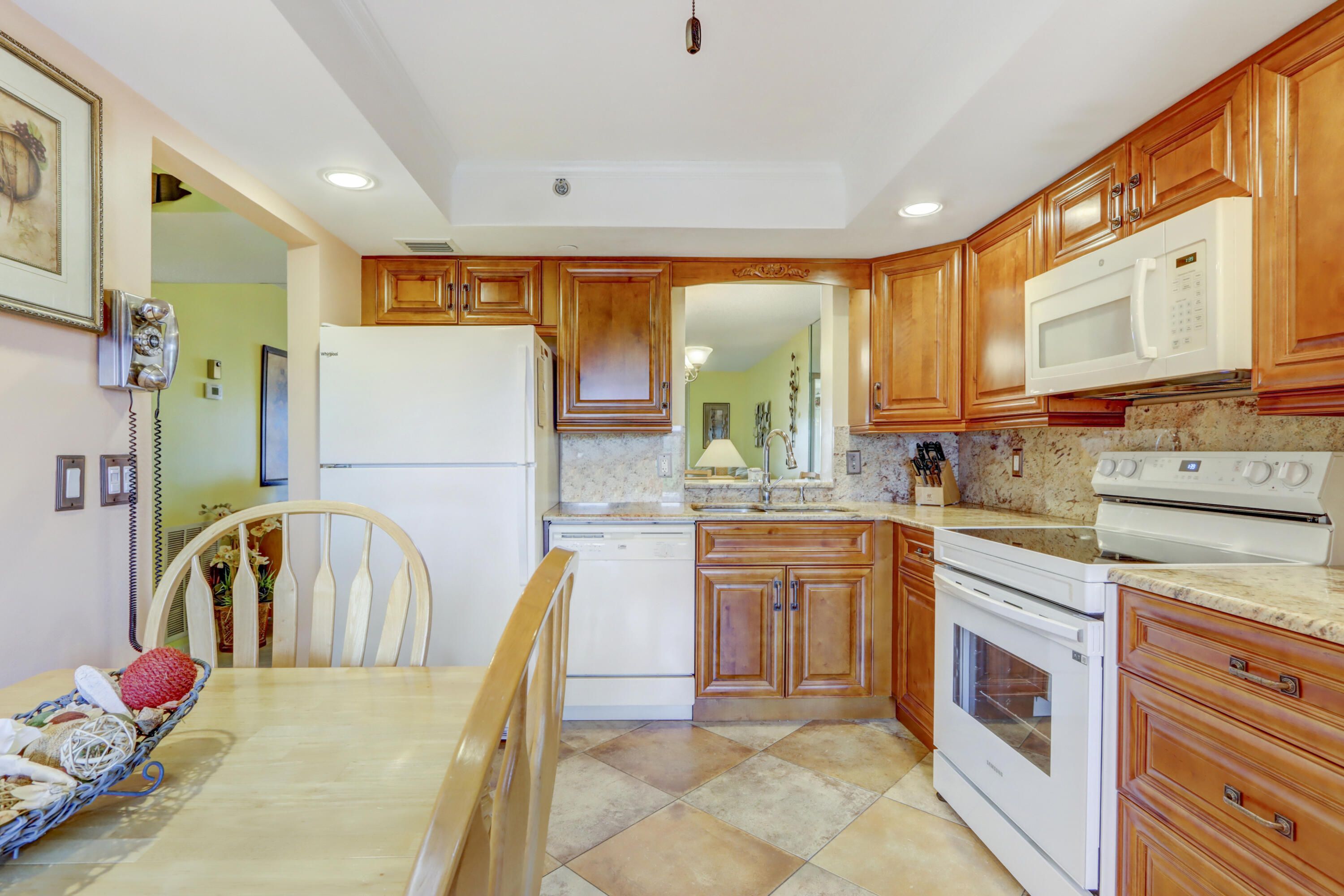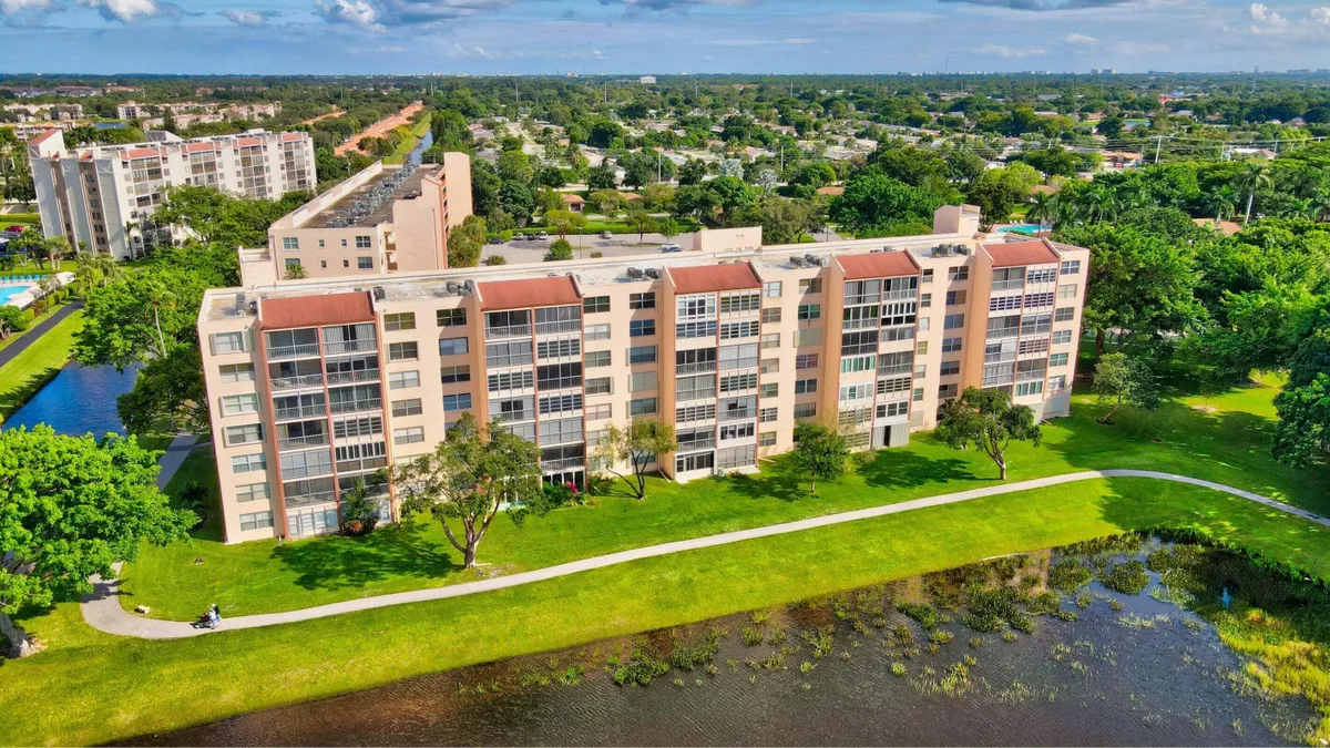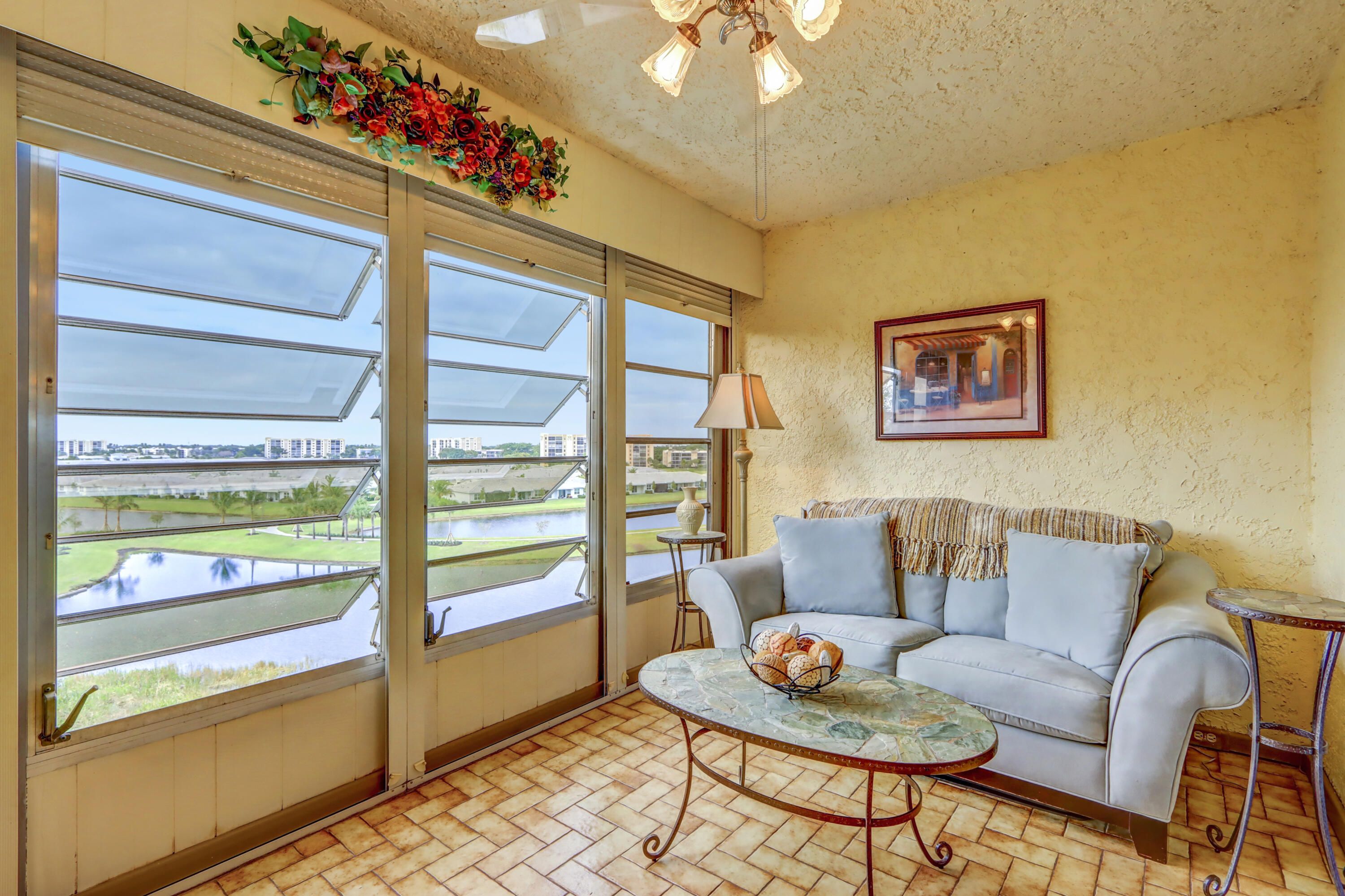 *Stunning 6th-Floor End Unit with Panoramic Lake Views* Don't miss this rare opportunity to own a beautiful 2-bedroom, 2-bath end unit in the sought-after Villages of Oriole. Located on the 6th floor, this light-filled home boasts breathtaking lake views and a spacious screened-in patio—perfect for relaxing or entertaining. Inside, you'll find tile flooring throughout, an updated eat-in kitchen with granite countertops, and the convenience of an in-unit stacked washer and dryer. The generously sized primary suite offers a walk-in closet and a private bath with a walk-in shower. The versatile second bedroom is ideal as a guest room, den, or home office, with easy access to the second full bath. Additional perks include extra storage just steps from the elevator. Enjoy a vibrant lifestyle with access to a clubhouse featuring multipurpose social spaces, plus outdoor amenities like a pool and shuffleboard courts. Assigned parking in front of building. Near Delray's Atlantic Ave with art galleries, sidewalk cafes, waterfront dining, live music events and beaches.Your perfect Florida retreat awaits!