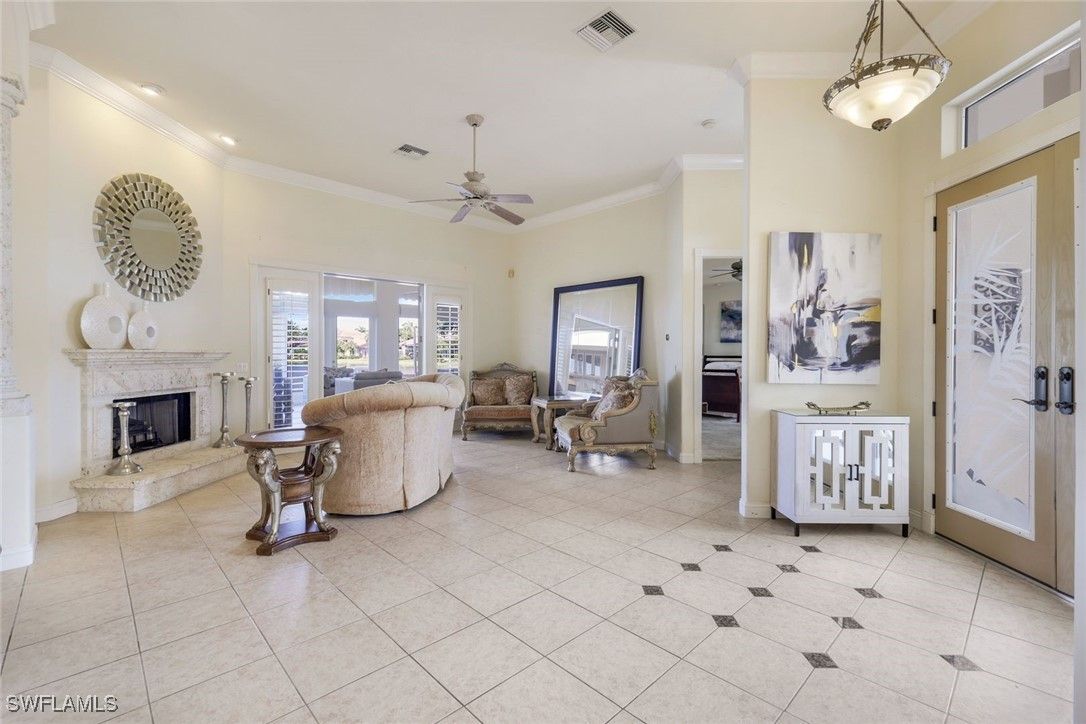 Welcome to 14581 Headwater Bay Lane—an exquisite single-family residence located in the prestigious Edgewater Estates within Gulf Harbour Yacht and Country Club. Built in 1997, this elegant home offers a luxurious lifestyle with a spacious floor plan, refined features, and the added value of a new roof and AC unit installed in 2021. The home boasts an open floor plan with cathedral ceilings, custom mirrors, and a gourmet kitchen equipped with modern appliances, new Sub-Zero Refrigerator and JennAir microwave and convection wall oven, a large pantry, and ample counter space, perfect for the culinary enthusiasts. The master suite features a walk-in closet and a luxurious en-suite bathroom. A separate guest house off the courtyard is equipped with a full bath, bedroom, and kitchenette, making it ideal for visitors. Entertain guests in the large entertainment room, which offers ample space for hosting large groups comfortably. This room was originally designed to house a state-of-the-art home theater system, including a large screen and surround sound for an immersive viewing experience. A stylish wet bar with a hand blown glass sink shipped from Italy, along with a seating area, is perfect for serving drinks and snacks during parties or casual get-togethers. The entertainment room also includes a designated area for games such as billiards, table tennis, pinball or a Grand Piano, adding to the entertainment options. This space is ideal for creating memorable moments with family and friends, whether you're watching the latest blockbuster, enjoying a game night, or hosting a celebration. Enjoy breathtaking views of the lake from various points in the home or relax in the courtyard next to the pool. Gulf Harbour Yacht and Country Club is a prestigious gated waterfront community situated on the Intracoastal Waterway, offering stunning views and easy access to boating and water activities. The community boasts a 186-slip marina, perfect for boating enthusiasts. Enjoy an 18-hole championship golf course, or if golf isn't your game, there are 8 Har-Tru tennis courts available and a state-of-the-art facility for fitness and wellness. Lounge at the junior Olympic-size pool while enjoying food and drinks at the Tiki Bar, and in the evening, visit one of the indoor dining restaurants with stunning views and fantastic food. These amenities enhance the luxurious and active lifestyle at Gulf Harbour, making it a great place to relax and socialize. Please Note: The Sports membership fee has been temporarily reduced by $30,000, and that the Clubhouse renovation is going through a $19M transformation which is expected to be complete by fall of 2026.