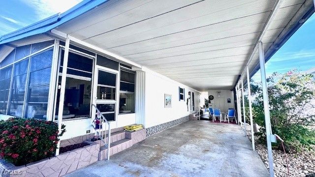 Welcome to your dream retreat in the premier 55+ waterfront community of Old Bridge Village! This beautifully maintained manufactured home features 2 bedrooms, 2 bathrooms, and a long list of desirable upgrades and a Golf Cart Included. Step inside to an inviting open-concept layout with a blend of carpet, vinyl and tile flooring. The open kitchen boasts custom pull-out drawers, sleek black appliances, and a stylish tile backsplash, perfect for the home chef. Both bathrooms offer tiled, walk-in showers for added comfort and convenience. Relax and enjoy the light-filled Florida room, an ideal spot for coffee mornings or extra room for entertaining. Outside, a spacious carport for 2–3 cars provides plenty of parking, while foam insulation under the home and wood plantation shutters enhance energy efficiency and comfort. Old Bridge Village offers a vibrant, active lifestyle with a sparkling brand new community pool, social activities, and peaceful surroundings. There is a fitness center, recreation center, bocce ball, pickleball, shuffleboard, tennis, basketball, putting green, horse shoe pits, new large pool, hot tub, community clubhouse, fishing pier, fish cleaning station, kayak and boat launch and an 81 slip marina. Drive your golf cart around the community, to and from your activities or to Palm Point, an 8.5 acre greenspace on the riverfront where you can fish, have a picnic, watch the boats or just enjoy the sunset. This community is a hidden gem with just minutes by boat or car to downtown Ft. Myers and right between 2 airports with approximately 30 minutes to both Southwest Florida International Airport and Punta Gorda Airport. Don’t miss your chance to own this exceptional home—schedule your private tour today and start living the retirement lifestyle you've always imagined