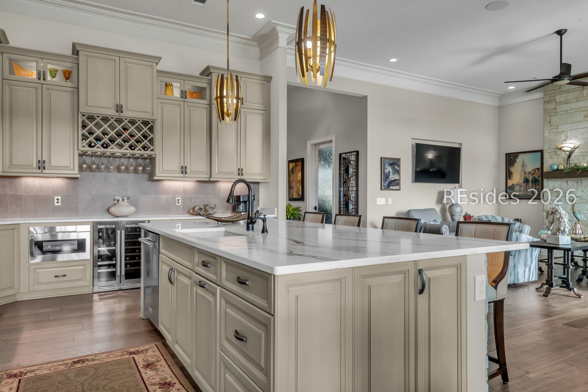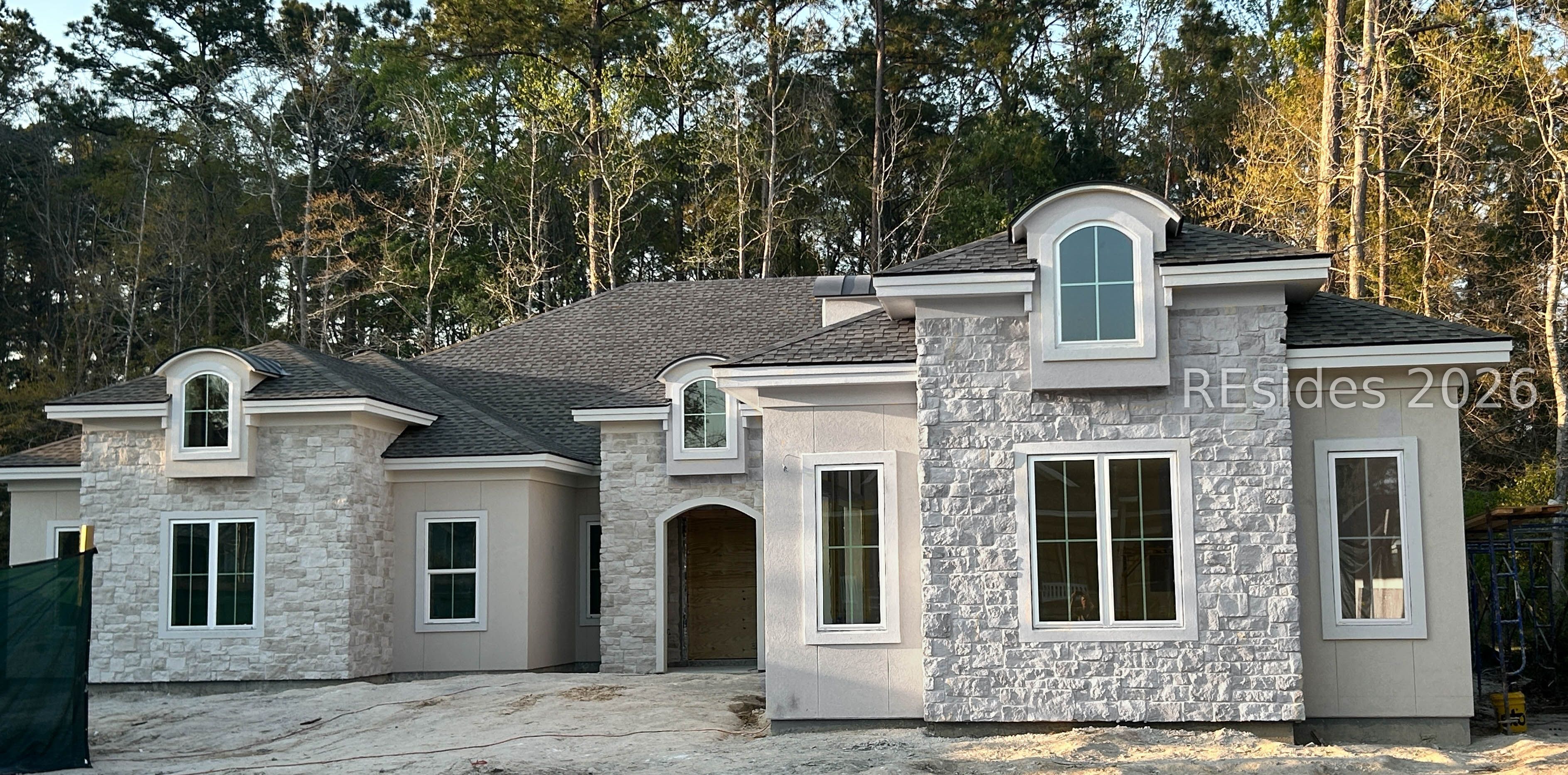 Designer's Dream Home - New Construction | April 2026 Completion | Riverbend. Rare opportunity to own a truly exceptional custom residence in Riverbend. Perfectly positioned on a private 1/3+ acre homesite with partial marsh views, this architectural showpiece offers just over 3,260 square feet of refined living space designed for both grand entertaining and effortless everyday comfort. A dramatic arrival begins with 8-foot double wrought iron entry doors opening to a breathtaking 14-foot foyer featuring custom tile detailing and curated art niches. The expansive great room showcases 12-foot ceilings and an impressive 18-foot custom-designed feature wall with intricate tile work, creating a stunning focal point. The open-concept design flows seamlessly into a chef-inspired kitchen complete with 10-foot custom cabinetry, an oversized island, premium finishes, and exceptional craftsmanship throughout. A four-season sunroom filled with natural light extends the main living areas, while the covered lanai offers private outdoor living with serene rear yard privacy and partial marsh views.This thoughtfully designed home features 4 spacious bedrooms, 4.5 baths, hardwood flooring on the first floor, floor-to-ceiling tiled showers, a spa-inspired primary suite with oversized walk-in shower and Jacuzzi tub, 8-foot solid wood interior doors, and detailed decorative moldings throughout. Built with superior construction standards including impact windows, 2x6 exterior wall framing, and spray foam insulation in exterior walls and attic for enhanced efficiency and durability. Complete with a 2-car garage plus dedicated golf cart garage. Interior photos represent a similar completed home. A distinctive residence offering uncompromising quality, privacy, and architectural elegance.