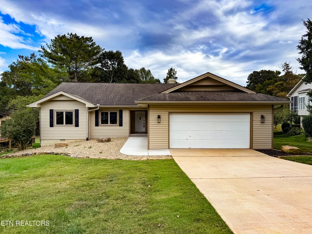 Welcome to 176 Talah Way, a recently updated one-level golf-front home overlooking the scenic #11 fairway of the Toqua Golf Course in Tellico Village, one of East Tennessee's premier active adult lake and golf communities. Come tour this refreshed 3-bedroom, 2-bath home that offers an open-concept layout with expansive cathedral ceilings, skylights, and a cozy gas fireplace, creating the perfect atmosphere for both relaxing and entertaining. The kitchen has been fully transformed with quartz countertops, premium LG and Bosch stainless appliances, a True Convection oven with Air Fry, and stylish new fixtures. The primary suite is a true retreat, featuring new paint, carpet, lighting, and a rebuilt exterior wall with new windows and trim. The spa-inspired bathroom includes a luxurious soaking tub, walk-in tiled shower, quartz counters, and upgraded fixtures. The large walk-in, custom designed, closet system adds both beauty and function to large primary closet. The guest bath, laundry room, and great room have all been tastefully renovated, with thoughtful updates such as new flooring, trim, lighting, and paint throughout. Every detail has been attended to from new weather seals and skylights to fresh exterior lighting and upgraded electrical outlets. Outdoors, enjoy panoramic golf course views from the screened porch or the brand-new TREX deck—perfect for morning coffee or evening sunsets. The spacious 23' x 29.5' garage easily accommodates a golf cart or small boat, and includes a new full-chip floor coating and utility sink. A new water heater (July 2024), dehumidifier, and sealed crawl space provide peace of mind and efficiency. Located in the heart of Tellico Village, this home offers access to three championship golf courses, boating on Tellico Lake, fitness centers, swimming pools, and an array of clubs and activities designed for active adults!