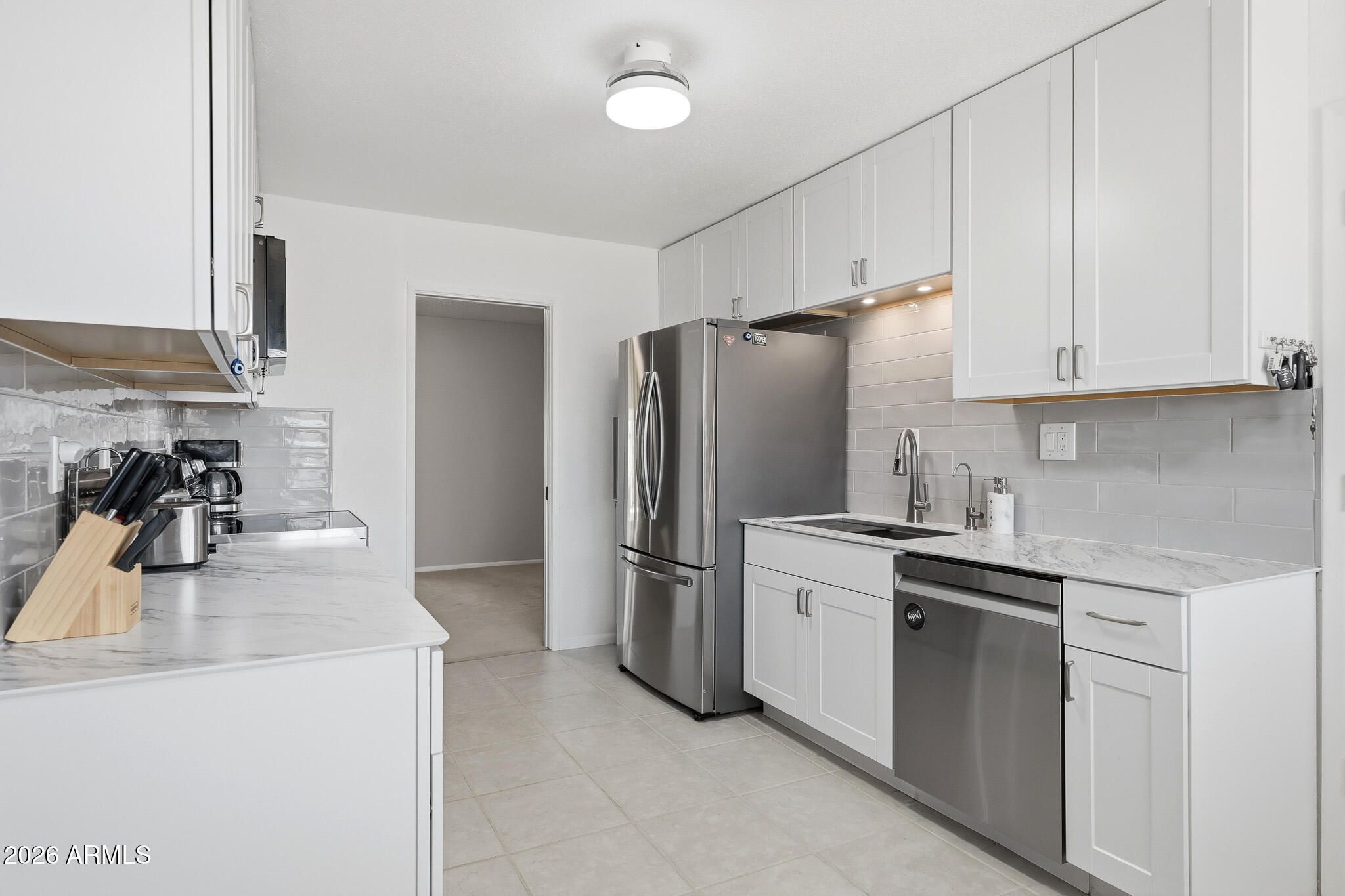 Welcome To This Remodeled Home In Sun City, Arizona. This Home Features An Added Dining Area And A Spacious Living Room With Updated Tile Flooring And A Solar Tube For Natural Light. Just Off The Living Room Is An Added Flex Room With A Closet And Its Own Mini-Split HVAC System, Ideal For A Guest Bedroom, Office, Or Hobby Room. The Kitchen Includes Updated Cabinets, Granite Countertops, A Pantry, Built-In Microwave, And A Deep Sink. Both Bathrooms Have Updated Vanities, Floor-Mounted Toilets, And Walk-In Tile Showers. The Primary Bedroom Features Two Walk-In Closets. Additional Updates Include Hardwired Smoke Detectors Throughout, A Main HVAC System Installed In 2018, A Replaced Sewer Line, And A Built-In Water Softener. This Home Offers Added Living Space And Functional Updates In A Well- Located Sun City Property. Please Stop By And See It Soon!