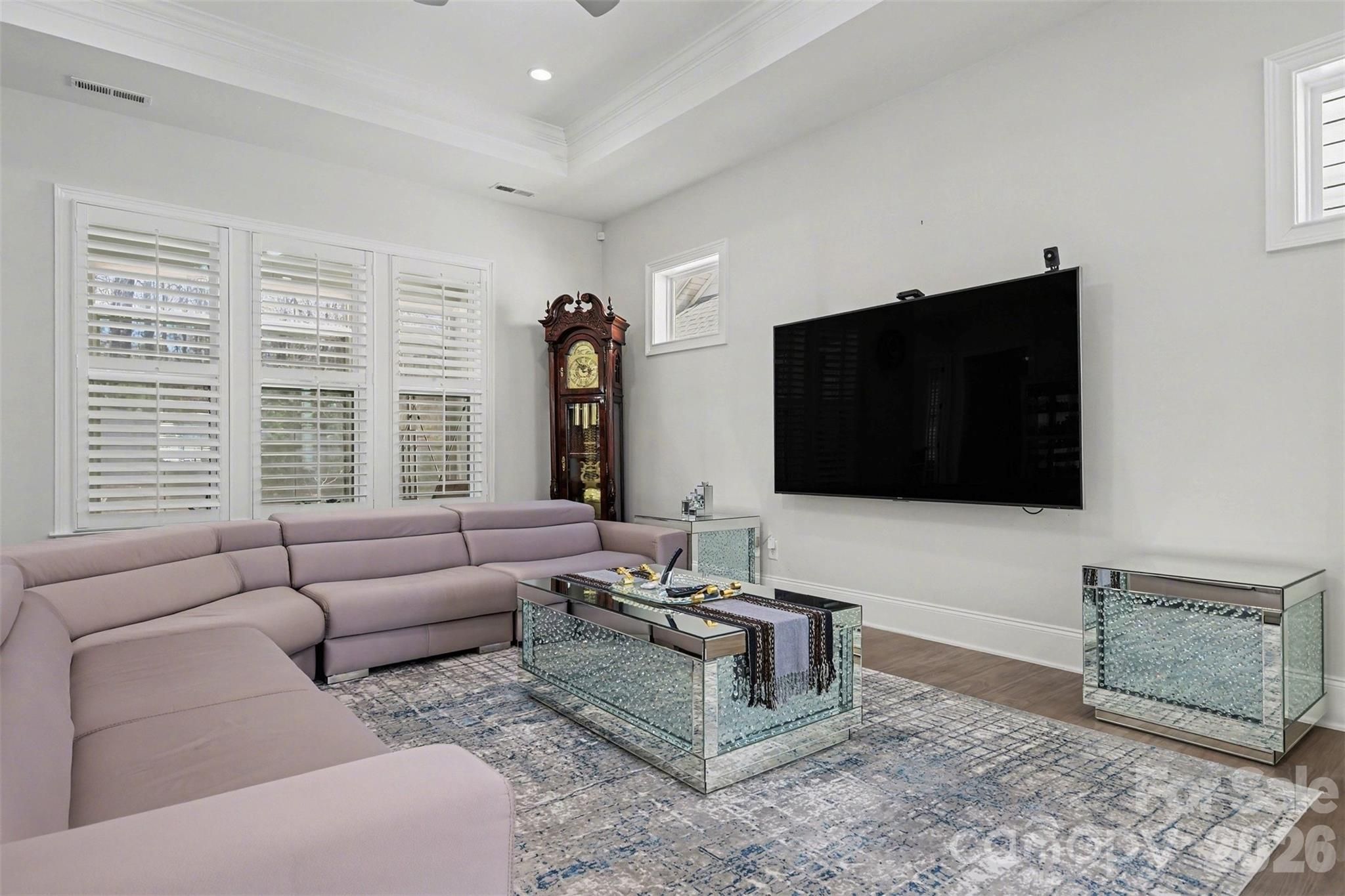 This beautifully designed 3-bedroom, 2.5-bath ranch home offers high-end finishes and a bright, open layout ideal for both everyday living and entertaining. The home features a formal dining room and a spacious great room that flows seamlessly into the kitchen and breakfast area. The chef’s kitchen is equipped with a large island, stainless steel appliances, a gas cooktop, and quartz countertops. The luxurious primary suite serves as a private retreat, complete with a spa-like bath featuring dual vanities, a separate shower, and a generous walk-in closet. Secondary bedrooms provide comfort and privacy for family or guests. Enjoy outdoor living on the covered front porch, covered and screened back porch and rear patio overlooking a beautifully landscaped, private backyard—perfect for relaxing or entertaining. HOA includes lawn maintenance and irrigation, ensuring a truly low-maintenance lifestyle. Residents of Regency at Palisades enjoy resort-style amenities, including a 12,000 sq ft clubhouse, indoor and outdoor pools, fitness center, tennis, pickleball, bocce courts, walking trails, social activities, and access to Lake Wylie. Conveniently located just minutes from shopping, dining, and Uptown Charlotte, this home offers the perfect blend of luxury, comfort, and community living.