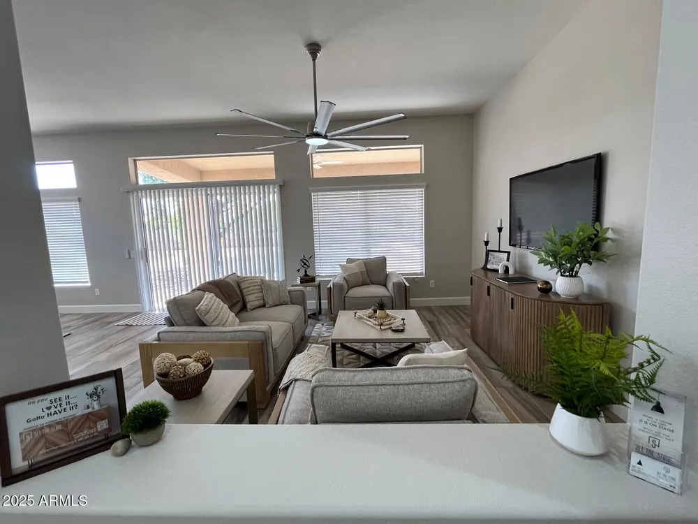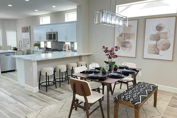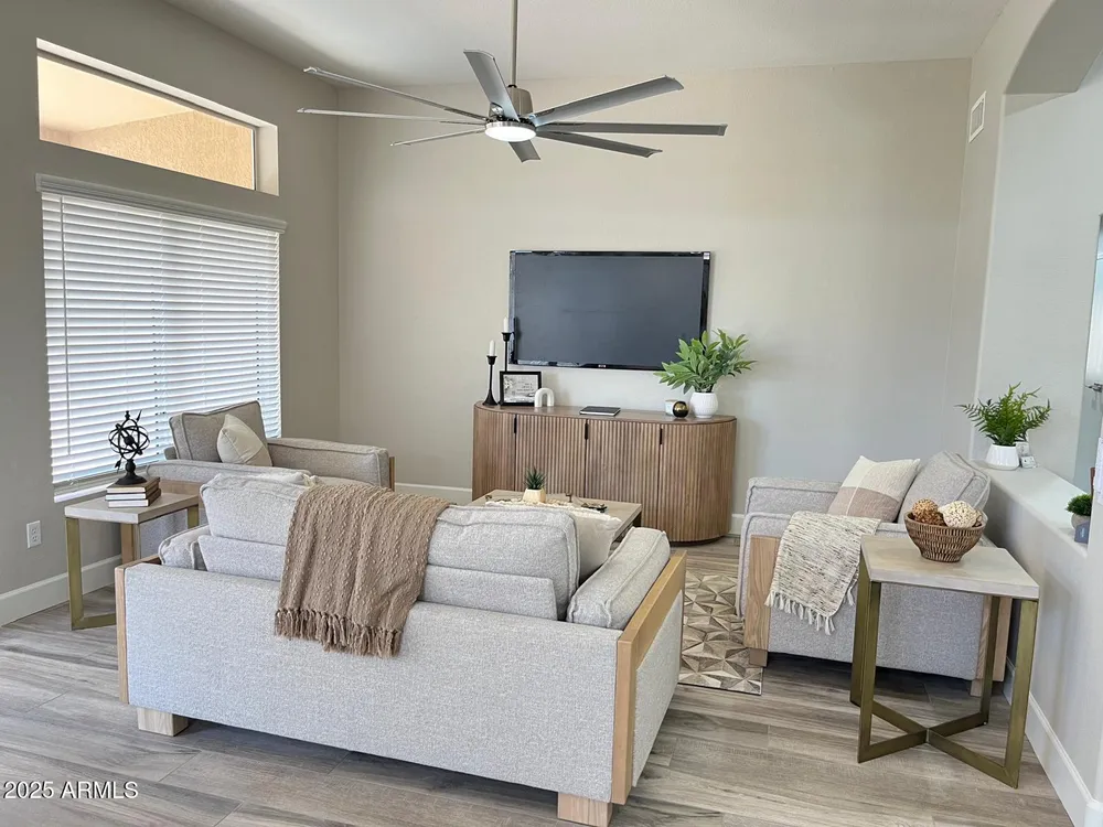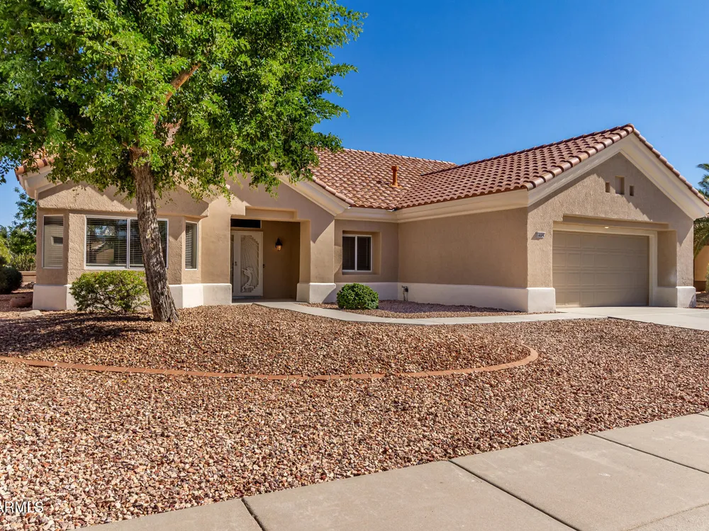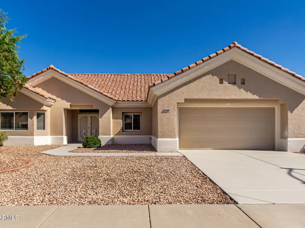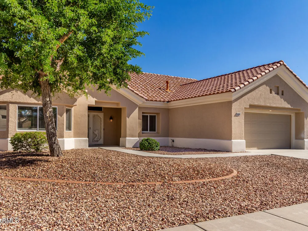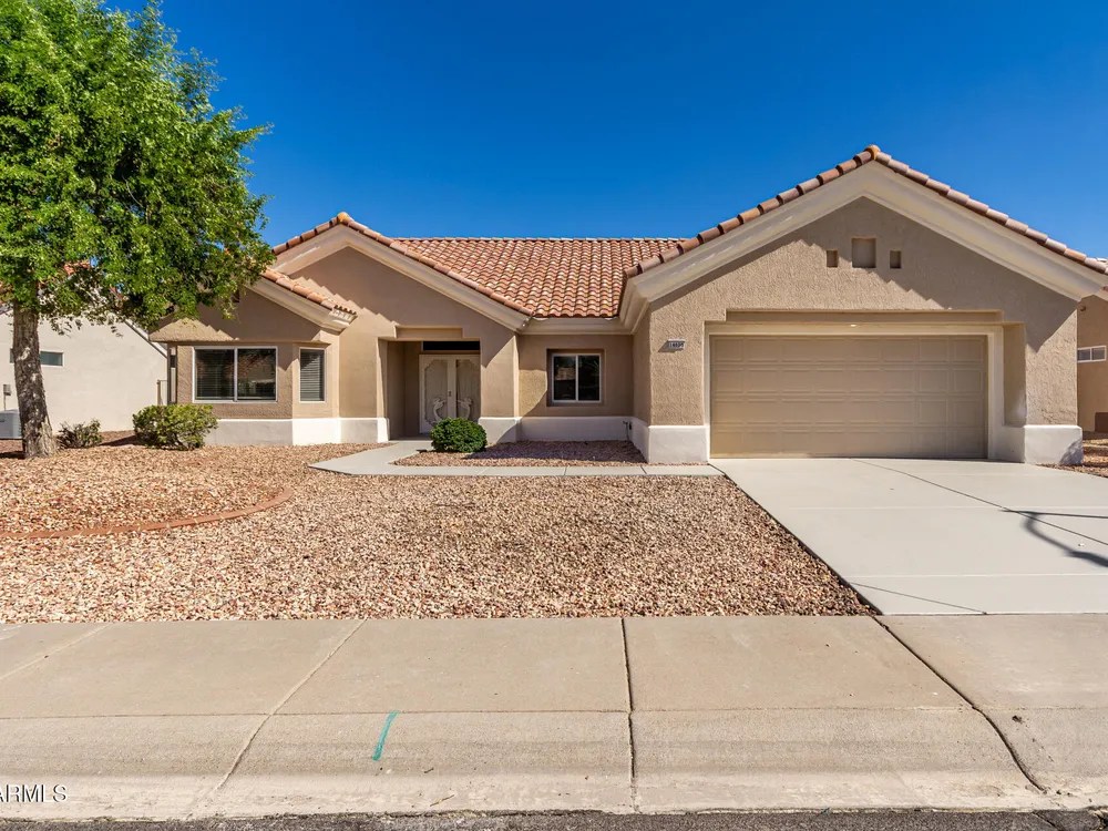 SENSATIONAL 5-STAR UPDATED ''CHANDLER'' MODEL!!! Displaying a 2-car garage & a low-maintenance landscape. Inside, you'll find a spacious living/dining room paired with a tall ceiling & sliding glass door that opens to the backyard. Natural light filled the inviting interior, complemented by new wood-look tile flooring throughout, fresh neutral paint, and new ceiling fans & light fixtures. The tastefully upgraded kitchen boasts new features including sleek SS appliances, quartz counters, pantry, and white shaker cabinetry w/crown molding. Completing the picture, you have a peninsula w/breakfast bar and a cozy nook w/bay window. The versatile den is ideal for a home office. Enter the primary bedroom to find another bay window & a walk-in closet Both primary & secondary bathrooms have been tastefully updated with new fixtures. The backyard offers a covered patio, perfect for unwinding with your favorite beverage. Take advantage of the resort-style Community amenities such as four recreation centers, multiple pools, golf courses, fitness facilities, tennis & pickleball courts, hobby studios, and a variety of clubs & social activities, excellent for an active adult lifestyle. Don't miss out!