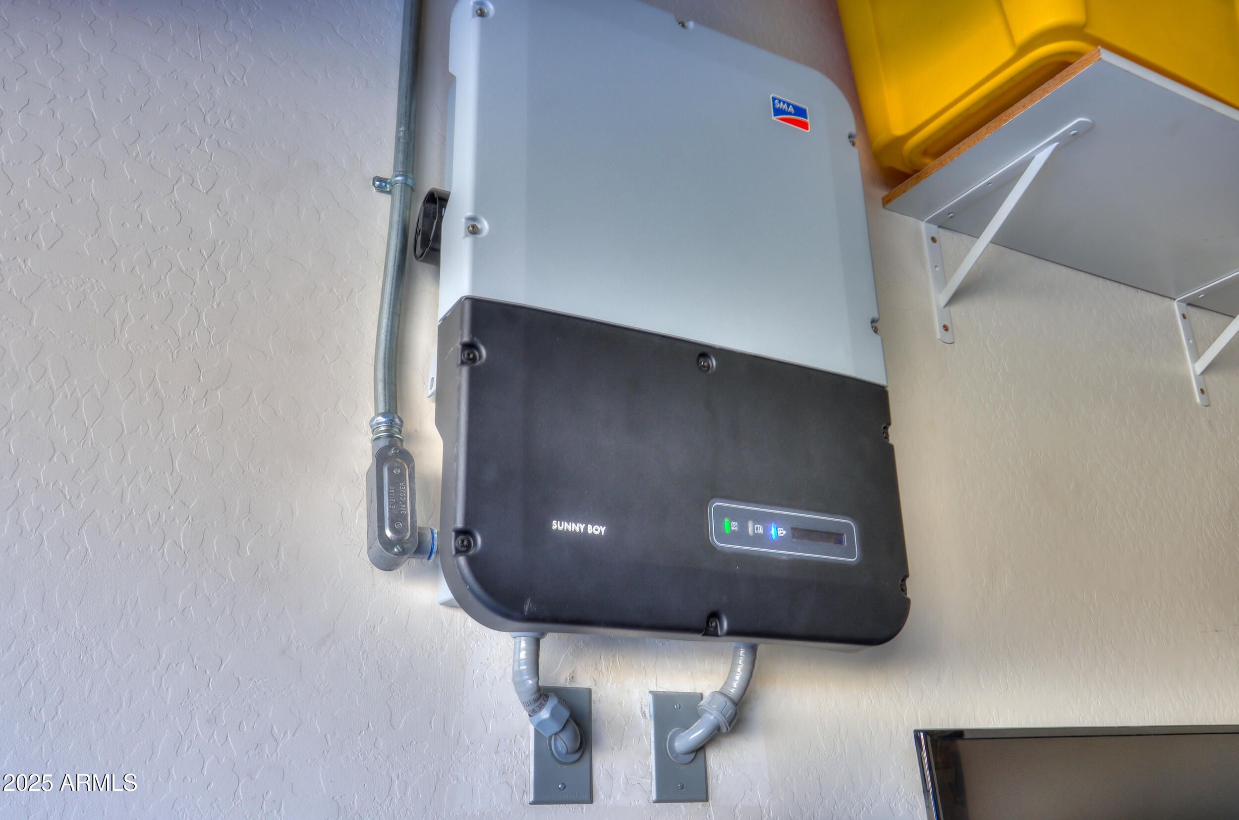 Beautifully furnished & turnkey-ready 2 bed, 2 bath plus den home in the desirable 55+ Ironwood Village Community is located in the heart of Casa Grande! This nicely updated, popular 4 model residence features fully owned solar with newly added, additional panels, which has covered all electric bills for the current owner! You will love the inviting eat-in kitchen boasting granite counters, stylish backsplash, stainless steel appliances, reverse osmosis system, recessed & pendant lighting & a bright dining area with charming bay window. Enjoy tile flooring throughout the main areas, with gorgeous vinyl plank flooring in the primary suite & den. The spacious primary suite offers a bay window, king-size bed, huge walk-in closet & an en-suite bath with dual-sink vanity & walk-in shower. The guest suite includes plush carpeting, another bay window & large wall-length closet. Additional upgrades include ceiling fans throughout, utility screens, recently upgraded gas water heater & new Samsung washer & dryer with utility sink in the garage. The fully enclosed back patio provides a perfect spot for relaxing or entertaining. Ironwood Village offers resort-style amenities including a stunning clubhouse, community pool, outdoor fireplace, billiards room, library, game room, horseshoes & so much more. Close to shopping, dining & everything Casa Grande has to offerthis meticulously maintained home is truly move-in ready!
