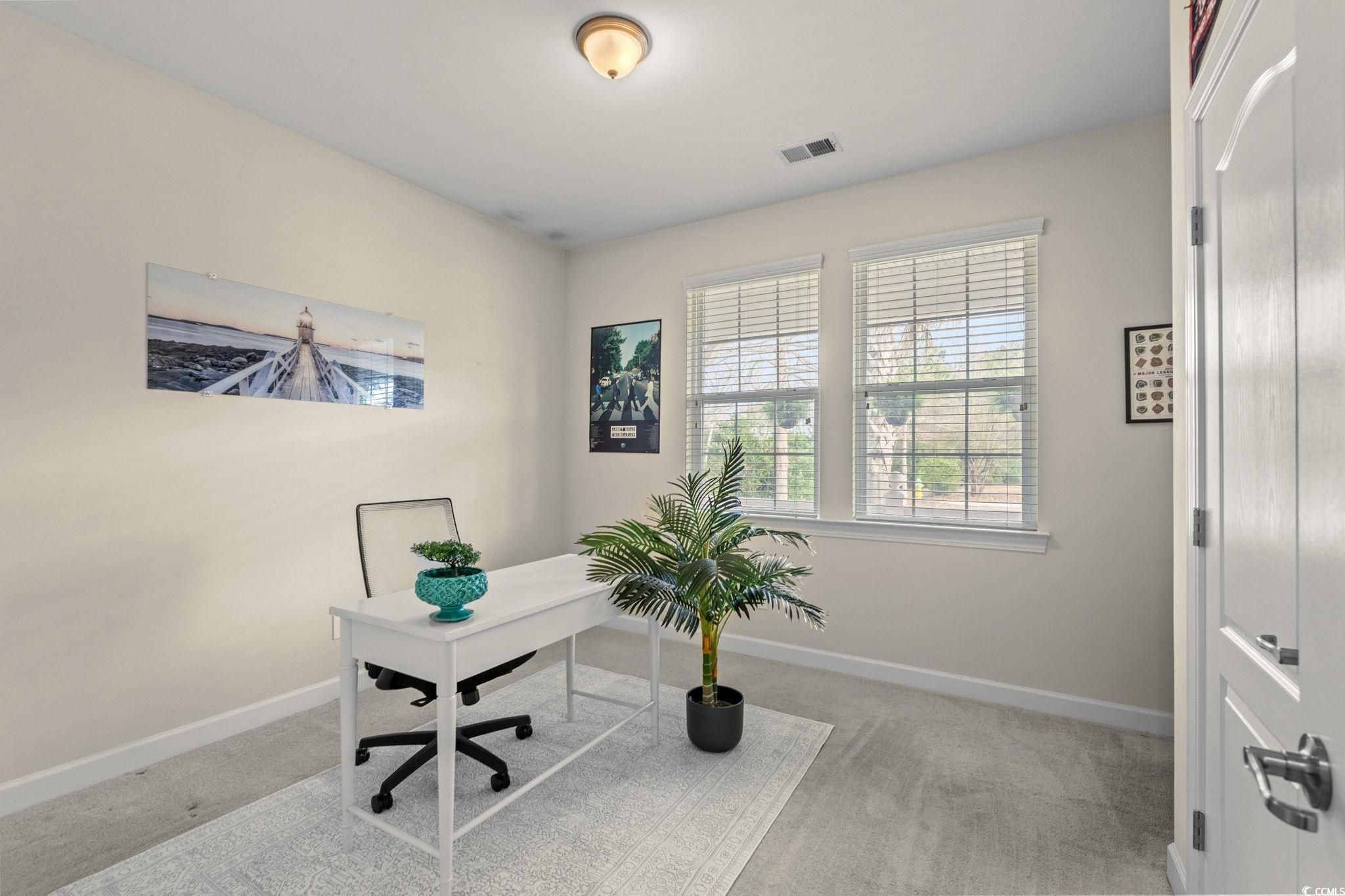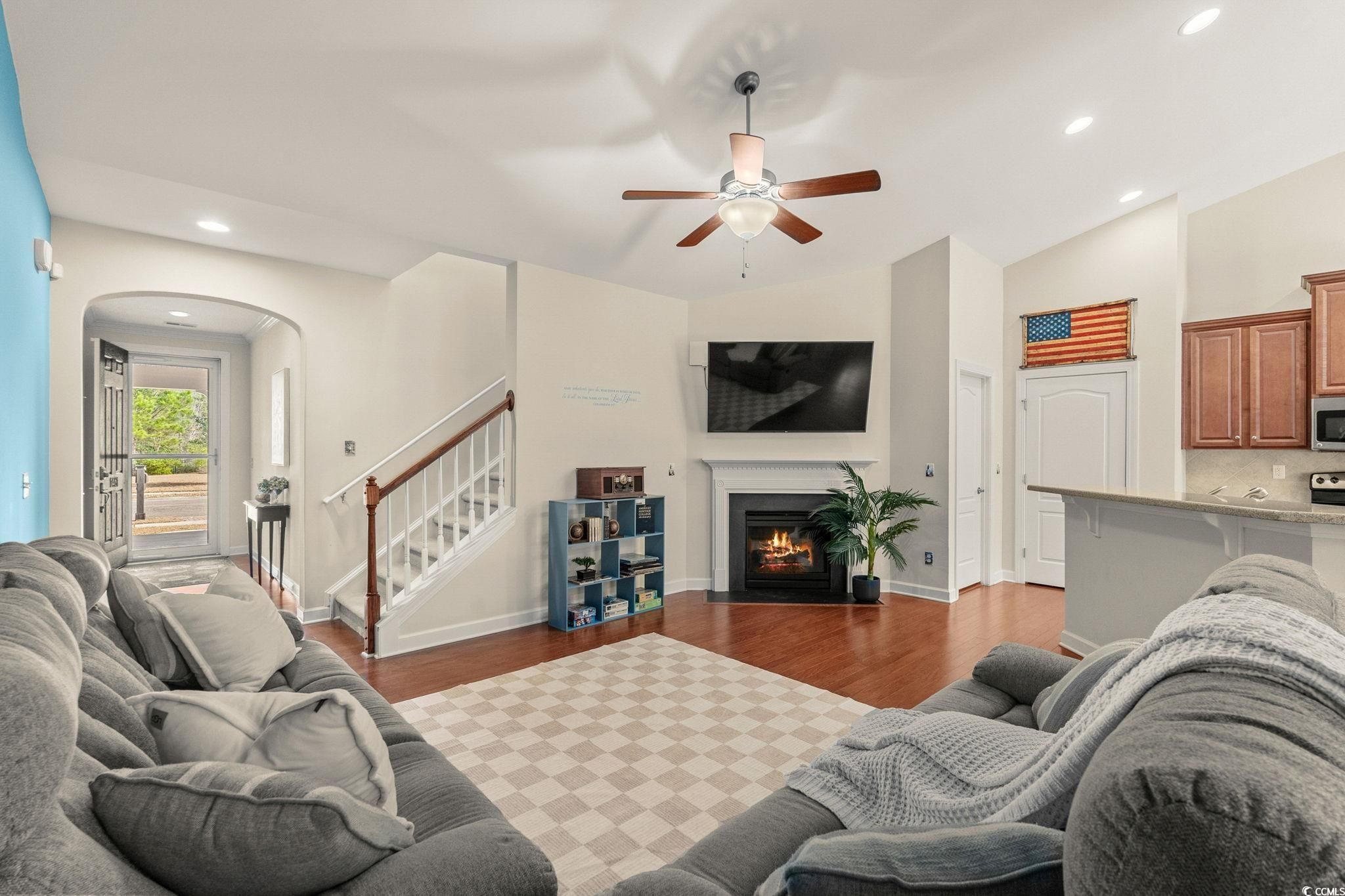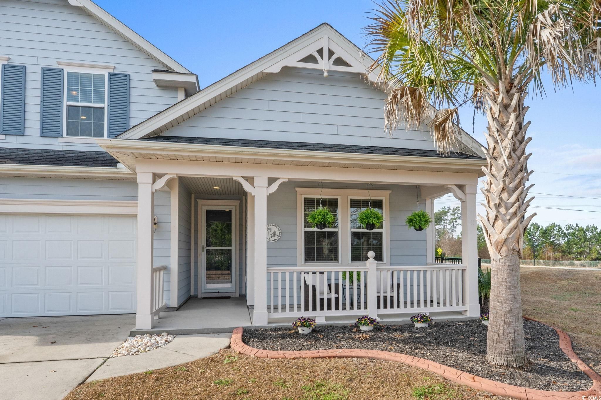 Welcome to 1461 Thames Ct., located in the highly sought-after community of Emmens Preserve within Market Common. This charming Crepe Myrtle floor plan offers 4 bedrooms, 3 baths, and a 2-car garage, all powered by natural gas—including a gas fireplace, tankless Rinnai water heater, and gas range for cooking. Enjoy outdoor living with both covered front and rear porches, plus a fully fenced backyard. The thoughtfully designed split floor plan features three bedrooms on the main level. The spacious primary suite with ensuite bath includes a linen closet, large walk-in closet, double sink vanity, garden tub, and a glass-enclosed shower. Two generous guest bedrooms are located at the front of the home and share a full bath. Upstairs, you’ll find a flexible and expansive fourth bedroom or bonus room with its own walk-in closet and full bath—perfect for guests, a home office, or media space. The kitchen has a pantry, dual-basin sink, lots of cabinets and offers ample room for an eat-in area and a built-in desk, ideal for cookbooks or a home office nook. A formal dining room showcases chair rail and timeless wainscoting enhancing this home's entertaining flow and provides additional space for gatherings. The laundry room is just off the garage and has shelving to create a "drop zone" and offers a walk-in pantry for additional storage. Sliding doors lead to the extra-long covered rear porch, complete with a designer ceiling fan and Edison string lights—an inviting space for grilling, entertaining, or relaxing. Situated at the end of the street, this home enjoys added privacy and street parking. Emmens Preserve is known for its resort-style amenities, including a clubhouse, pool, miles of walking and biking paths (including the scenic Woodland Path), playground, picnic area, outdoor pavilion with kitchen, putting green, bocce ball court, dog park, and golf-cart-friendly access to the beach and downtown Market Common. Schedule your showing today and experience the lifestyle this beautiful home has to offer