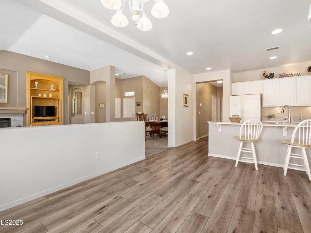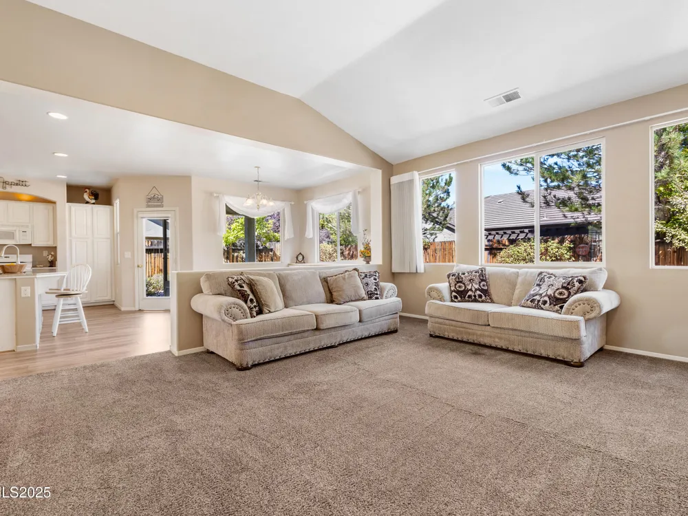 Welcome to Double Diamond Ranch, a sought after 55 plus community in South Reno. This beautifully maintained single story home offers three bedrooms, two bathrooms, and just under two thousand square feet of living space. The open floor plan features a spacious living room with a cozy fireplace, a bright and functional kitchen, and a private primary suite. The single level layout provides comfort and convenience with an attached garage and a low maintenance yard that makes everyday living easy. Residents here enjoy access to a clubhouse with gym, pool, and hot tub along with miles of paved walking and biking trails and nearby neighborhood parks. The location offers quick access to shopping and dining at The Summit as well as year round recreation at Lake Tahoe and Mount Rose. This home combines comfort, community, and lifestyle in one of South Renos most desirable areas.