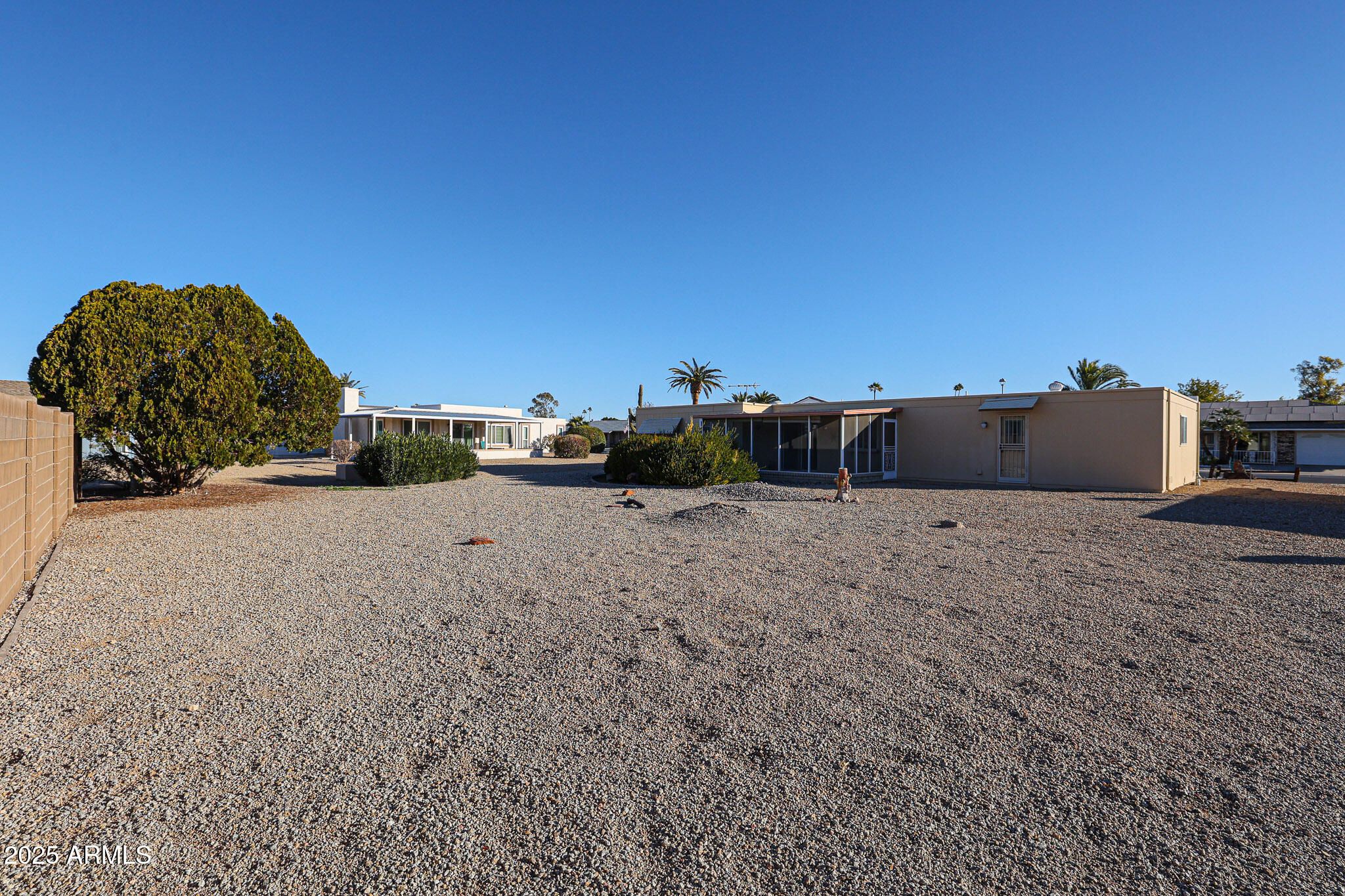 Nestled in a prime location, this beautiful Spanish style home offers a serene desert landscape and the perfect balance of comfort and functionality. Spacious backyard is a blank canvas for your creativity to be unleashed. Some of the great features include an open floor plan, spacious bedrooms, plenty of kitchen cabinet space. Ceramic tile throughout the entire home. The kitchen opens to a large covered screened in patio. The garage includes plenty of built-in cabinets, and the spacious laundry room offers a utility sink and built-in lower cabinets. This charming home is close to exceptional amenities, including Recreation Centers, golf courses, pickleball, fitness centers, swimming pools, and social clubs, designed to offer an active and fulfilling lifestyle!