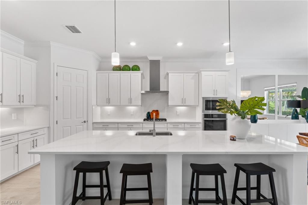 Some lots in WildBlue sell a view. This one offers something harder to find — genuine seclusion with water behind it. Among the handful of homesites in the community not positioned on Vista Lake, this is one of the rare few that still captures water and natural wetland preserve, creating a backdrop that is private, serene, and completely your own. The Summerville 2 floor plan — three bedrooms, three full bathrooms, a den, and a three-car garage — provides the versatile canvas, but it's the setting that sets this home apart. Inside, tile floors run throughout and crown molding carries seamlessly from room to room. As a natural gas community, this home takes full advantage — a gas cooktop, tankless water heater, and whole-home Briggs & Stratton generator combine to deliver both everyday efficiency and long-term reliability. The garage has been thoughtfully upgraded beyond builder standard with a mini-split for year-round climate control, insulated doors, and insulation added above. Hurricane impact glass windows and sliders and an electric roll-down lanai shade round out a home that is as prepared as it is polished. This home has been meticulously maintained and recently serviced throughout — the kind of ownership pride that shows the moment you walk through the door. Outside, travertine decking surrounds a heated saltwater pool and spa, all framed by a panoramic picture window screen cage and a tongue and groove ceiling overhead that adds warmth to every hour spent outdoors. Beyond your doorstep, WildBlue delivers a lifestyle to match. The community offers a resort-style pool, clubhouse with indoor and outdoor dining, fitness center, tennis, pickleball, and bocce courts — plus kayaking, boating, paddleboarding, and more on the lake. For those who love the water, it doesn't get better than this. Opportunities like this — a rare lot, meaningful upgrades, and a floor plan this versatile — don't come around often.