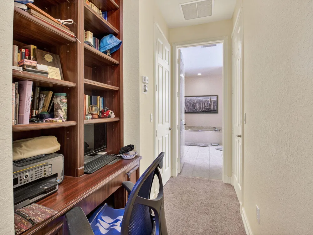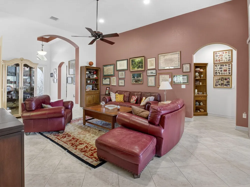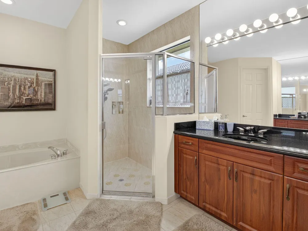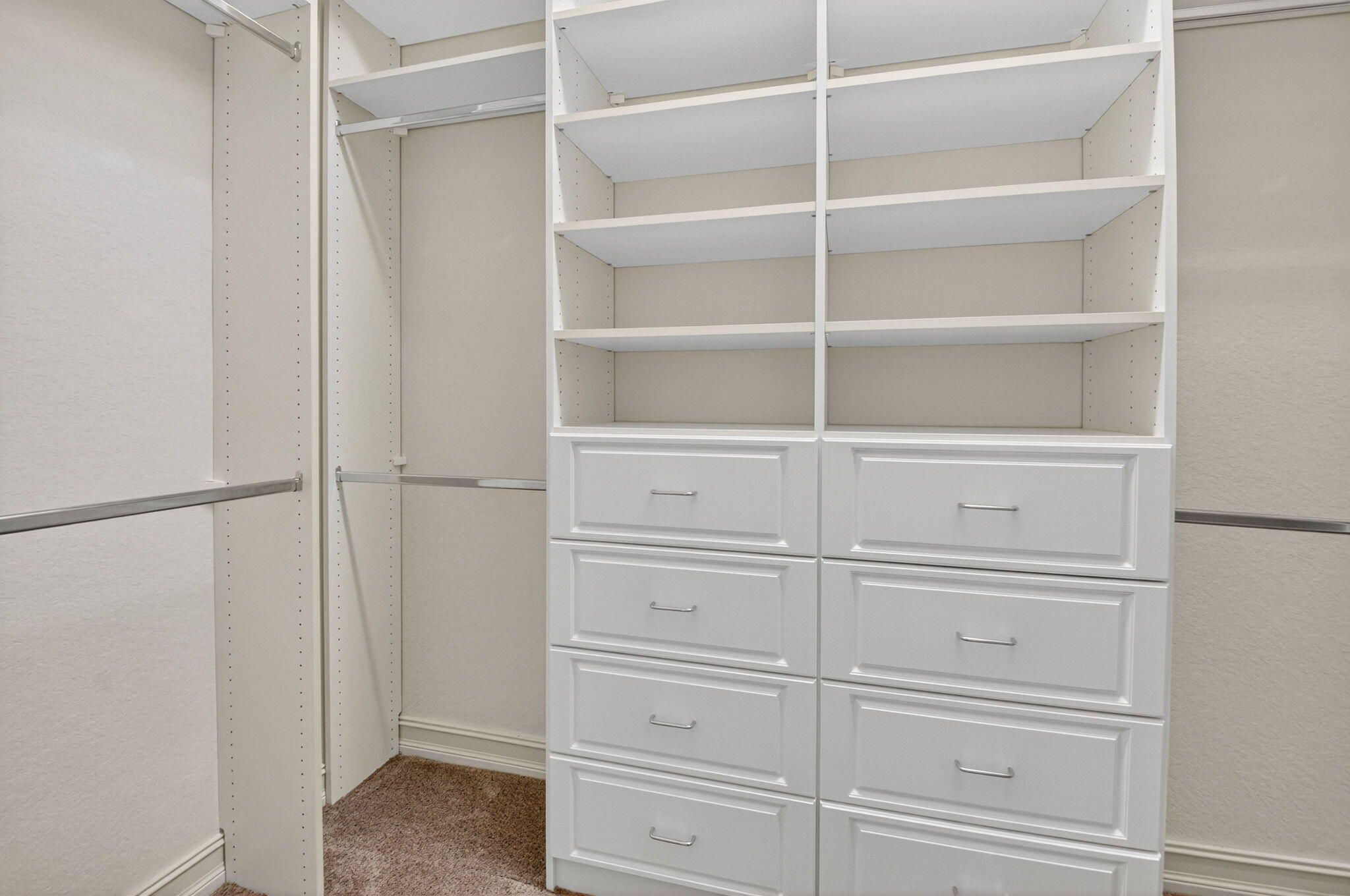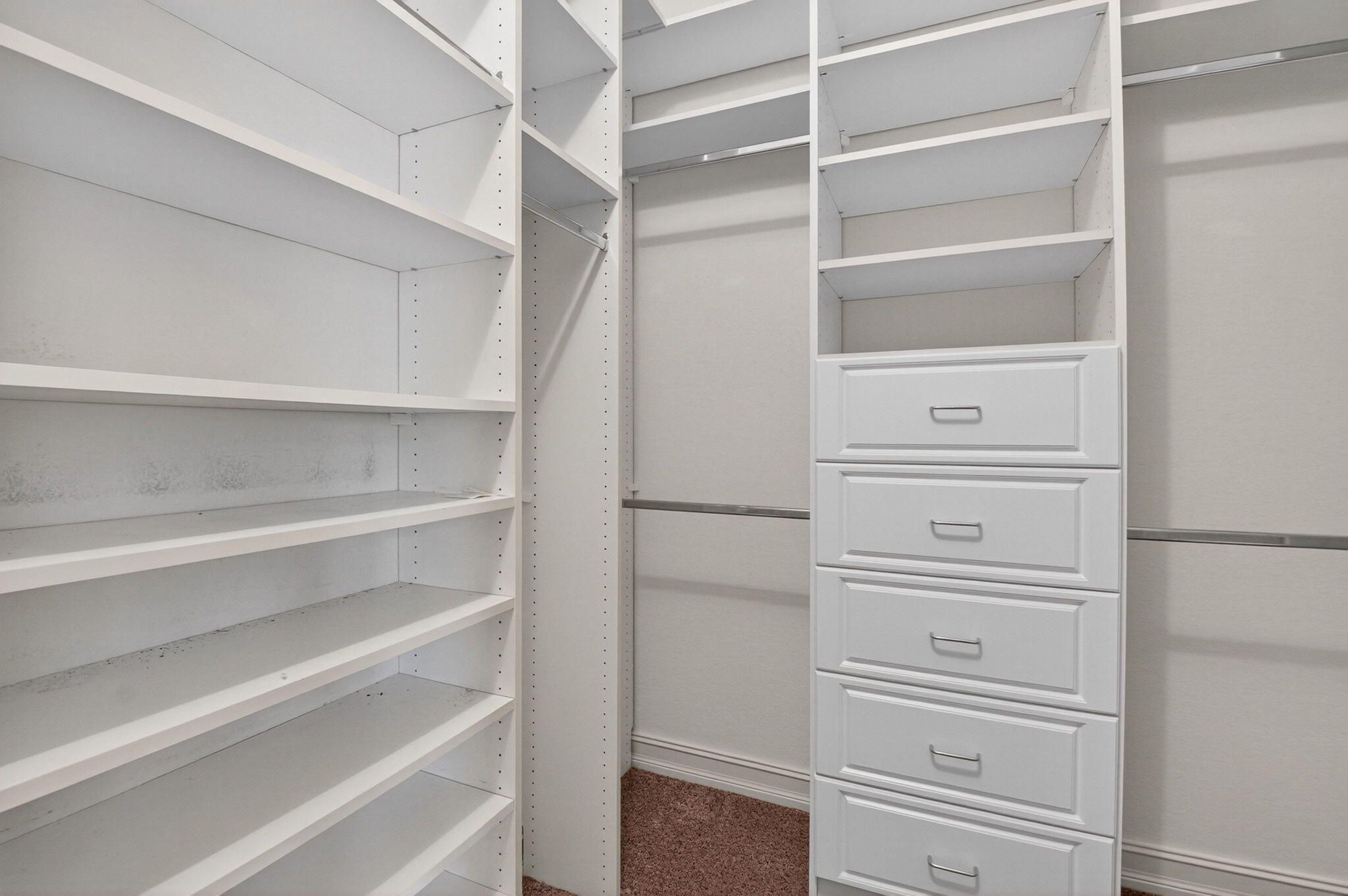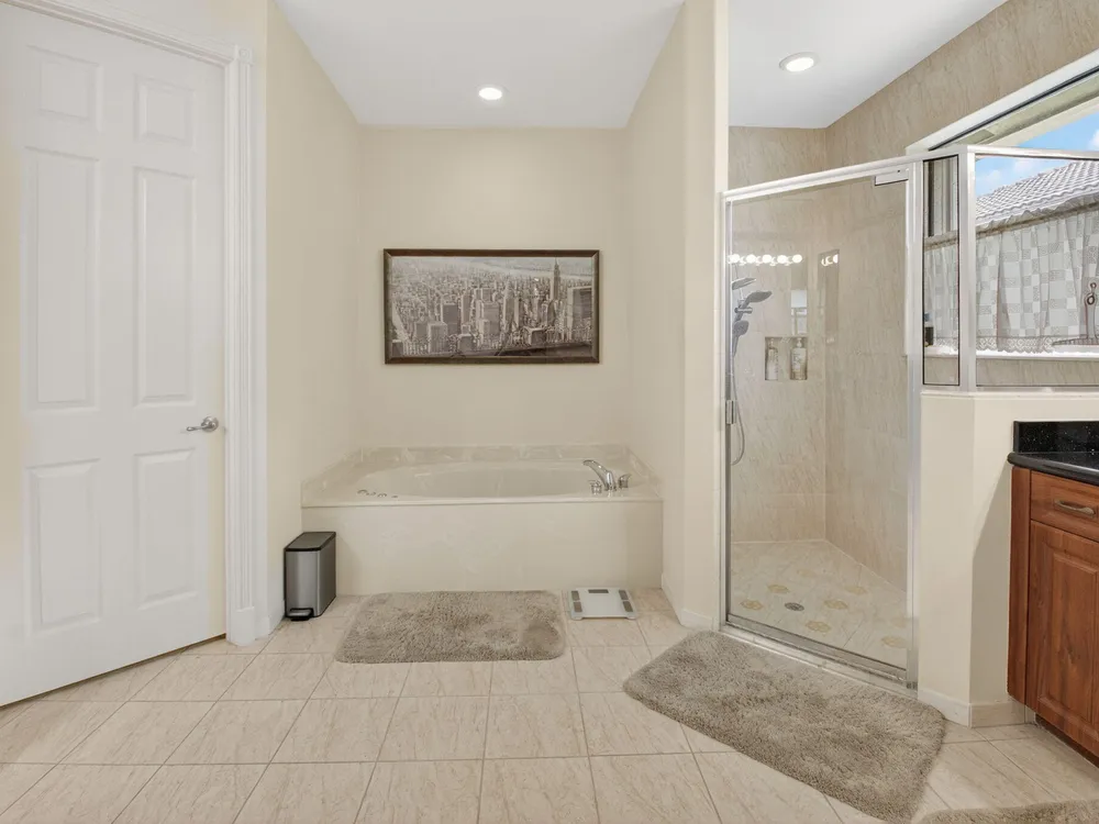 - Entry Level Living Area, Entrance Foyer, Pantry, Split Bedrooms, High Ceilings, Walk-In Closet(s), Home Office, Family Room, Breakfast Area, Separate/Formal Dining Room, Blinds, Dual Sinks, Primary Downstairs, Separate Shower, Bathtub, Whirlpool, Storm Shutters