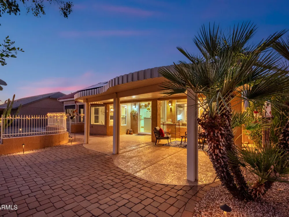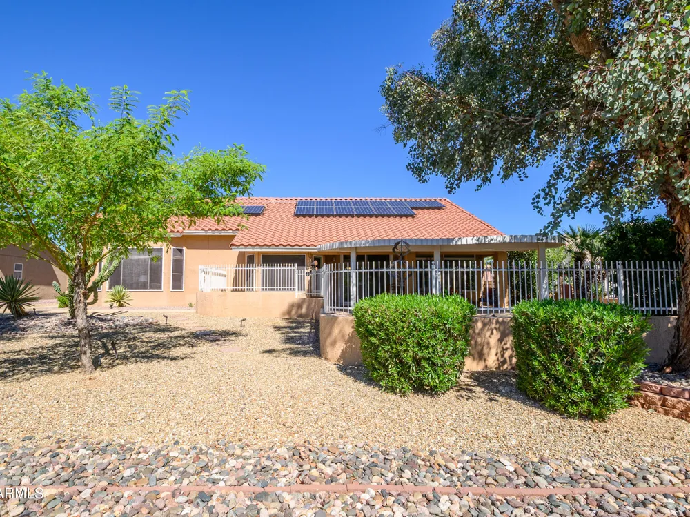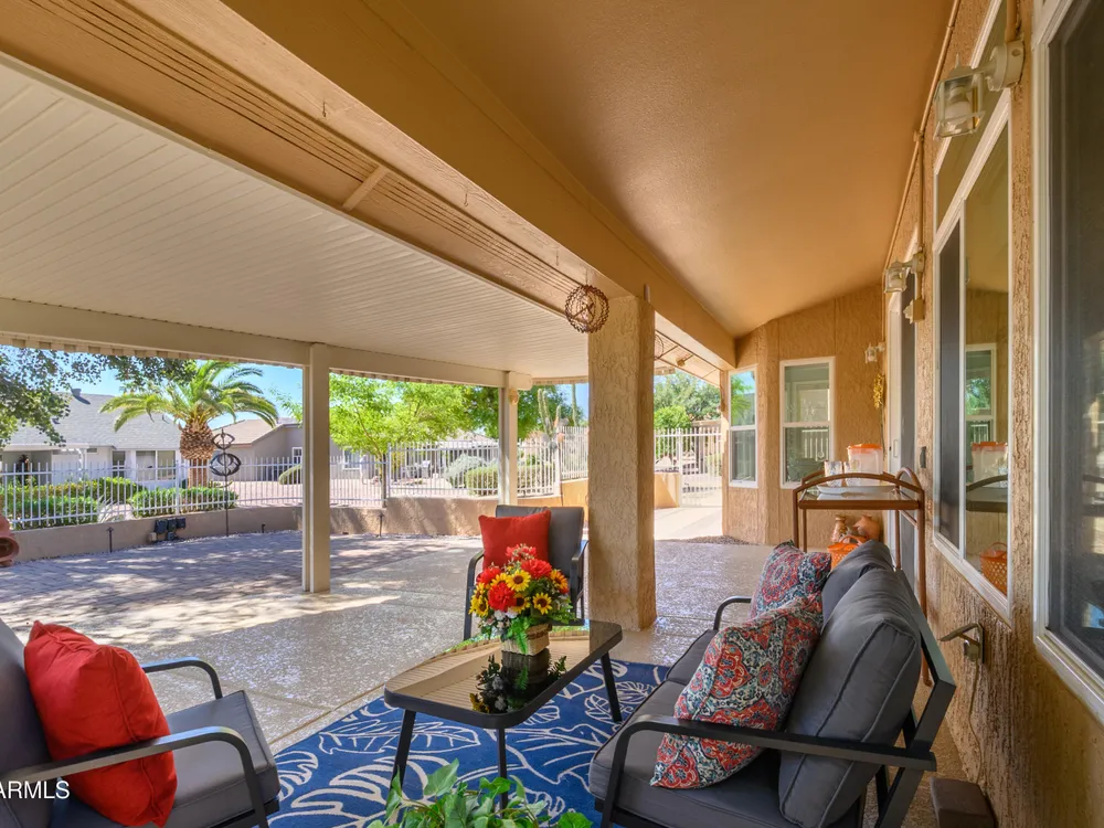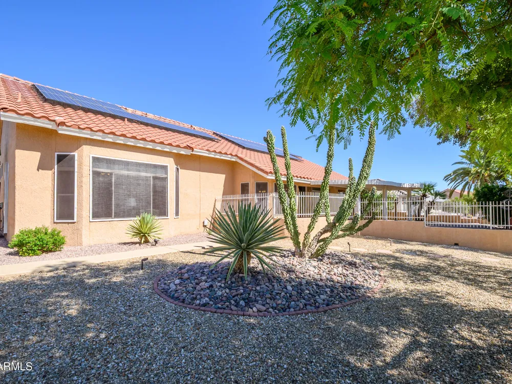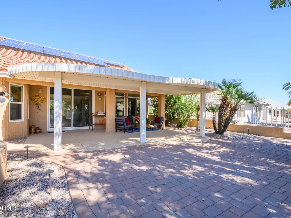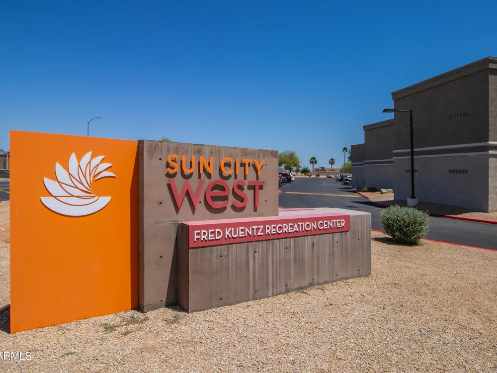 If you're looking for a meticulously maintained Sandoval model, located in the Kuentz Center area of Sun City West, AZ, this might be just the home for you. Home is 2150 sq. ft., with 2 Bdrms & 2 bathrooms. Kitchen features a Bkfst nook, pull outs, Corian counters & canned lighting. Primary suite has bay window, walk-in closet, dual sinks, remodeled shower & a remote controlled Mini Split AC/heat wall unit for exclusive room comfort. The leased solar system, plus Simonton vinyl dual pane energy efficient windows throughout the home & the custom sunscreens on all windows provide energy efficiency & privacy. Whether it be coffee in the AM or PM beverages the expanded & fenced south facing back patio is the perfect place to entertain family & friends. This is a must-see home!