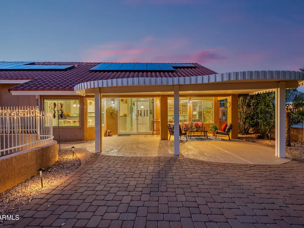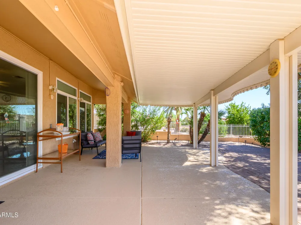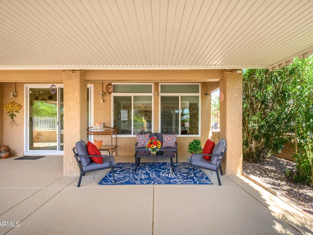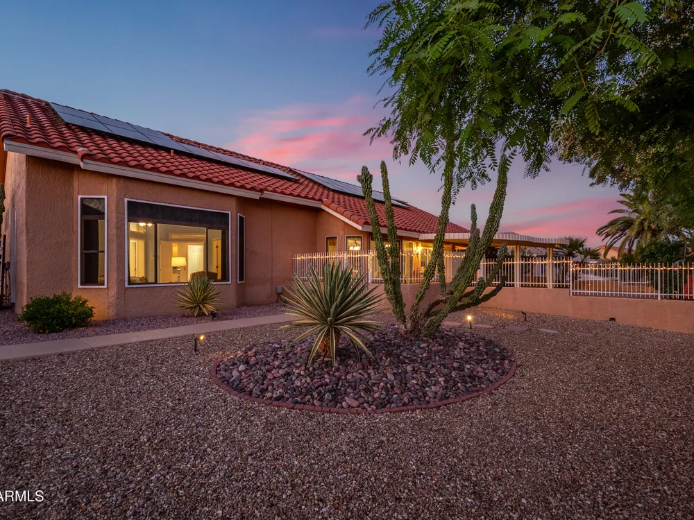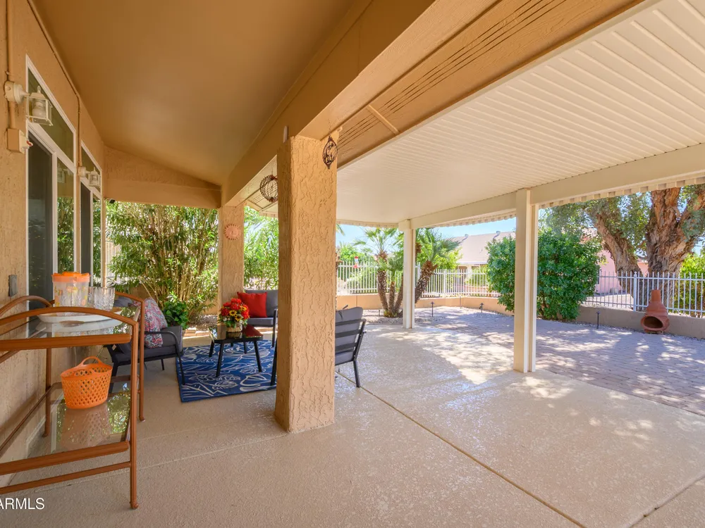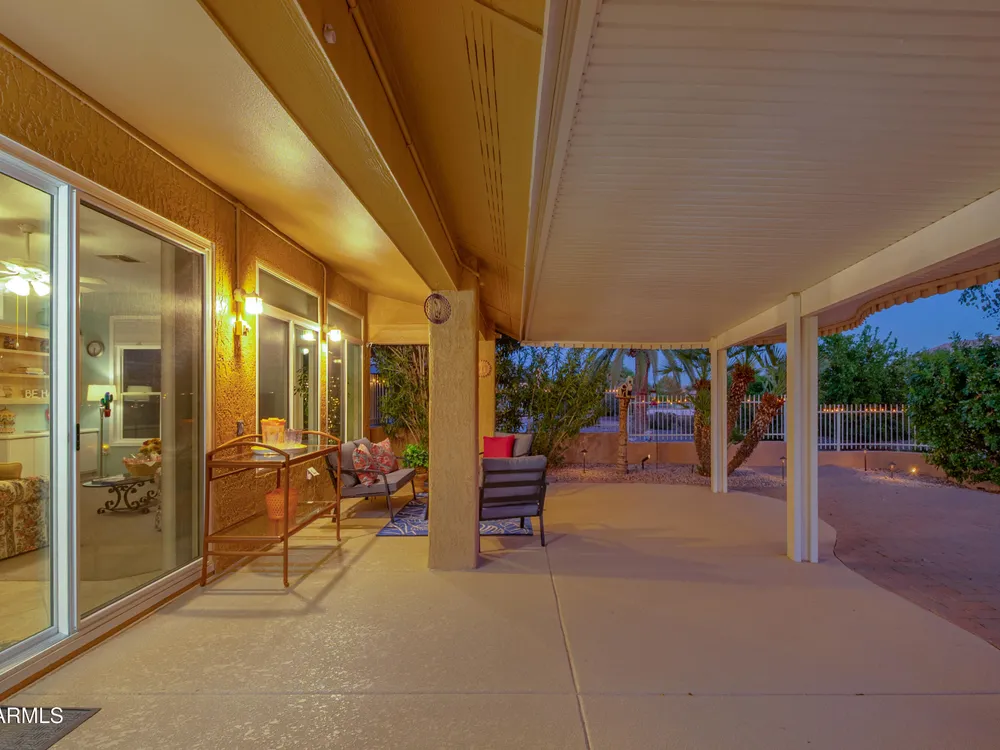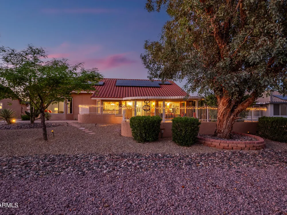 If you're looking for a meticulously maintained Sandoval model, located in the Kuentz Center area of Sun City West, AZ, this might be just the home for you. Home is 2150 sq. ft., with 2 Bdrms & 2 bathrooms. Kitchen features a Bkfst nook, pull outs, Corian counters & canned lighting. Primary suite has bay window, walk-in closet, dual sinks, remodeled shower & a remote controlled Mini Split AC/heat wall unit for exclusive room comfort. The leased solar system, plus Simonton vinyl dual pane energy efficient windows throughout the home & the custom sunscreens on all windows provide energy efficiency & privacy. Whether it be coffee in the AM or PM beverages the expanded & fenced south facing back patio is the perfect place to entertain family & friends. This is a must-see home!