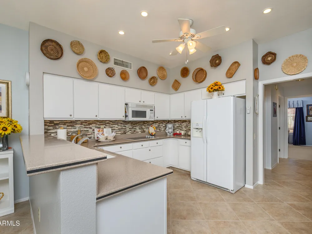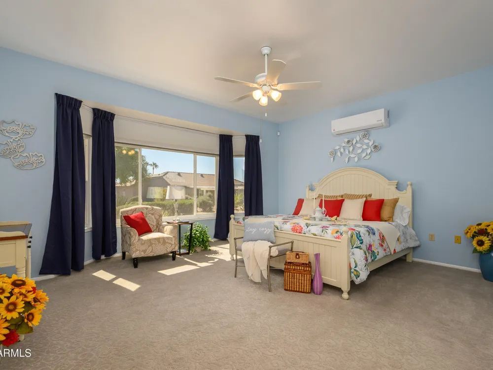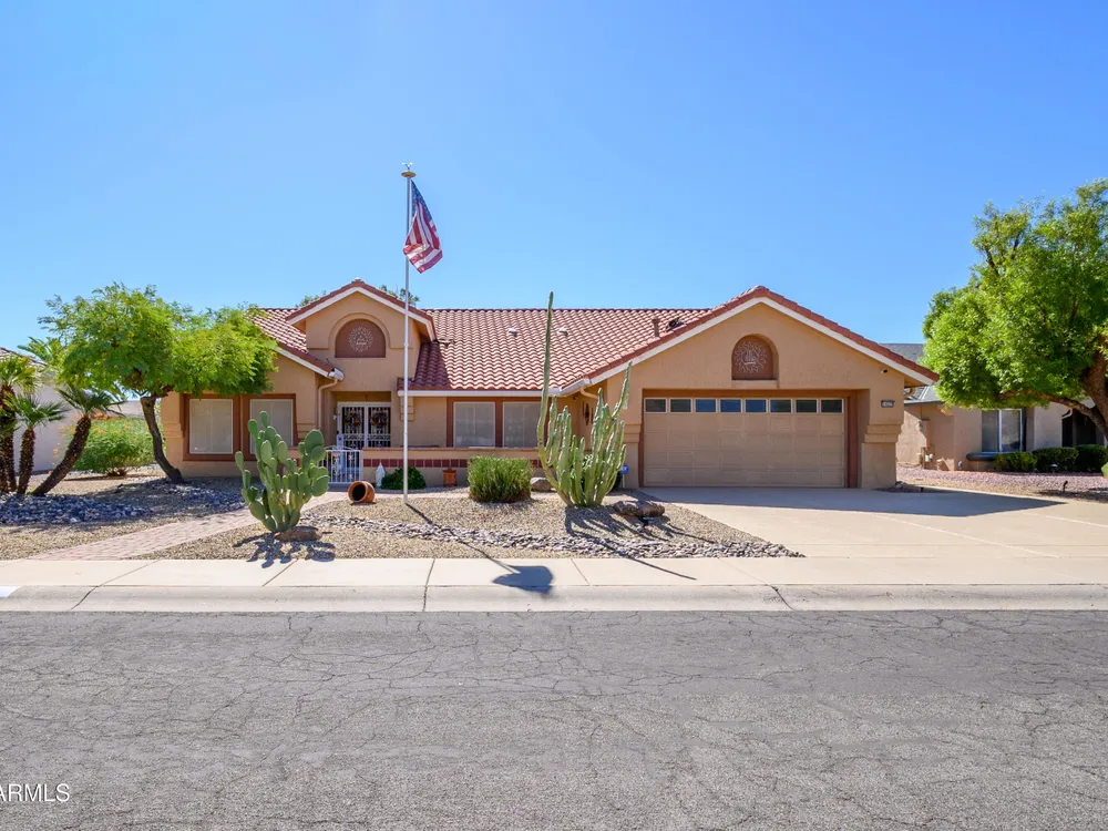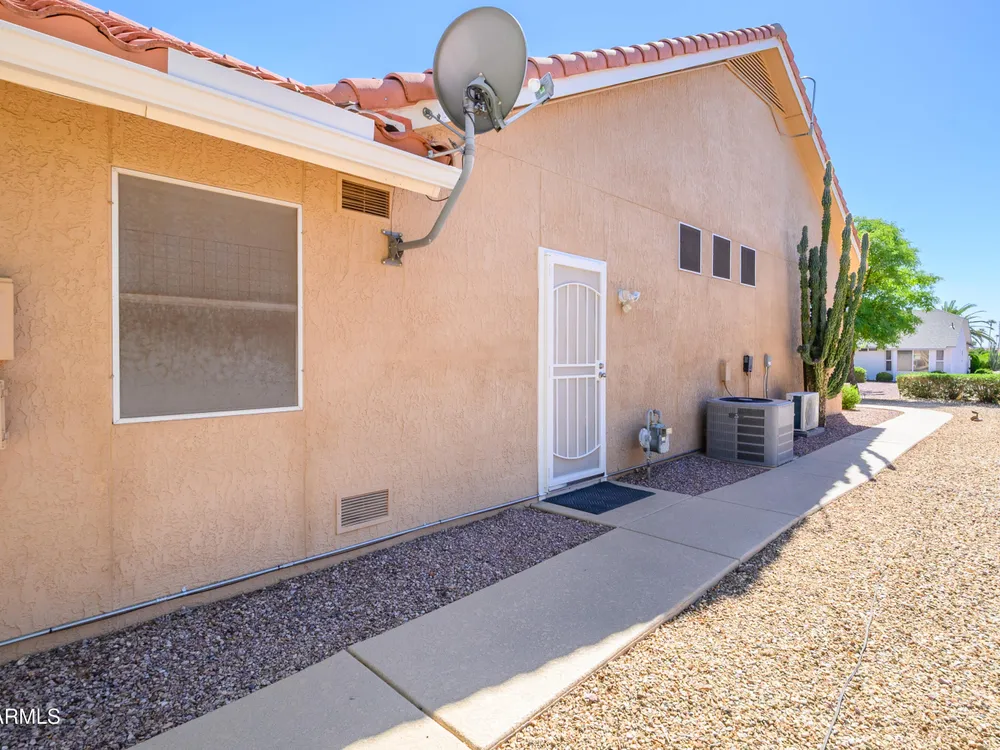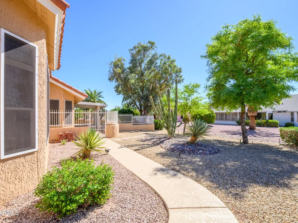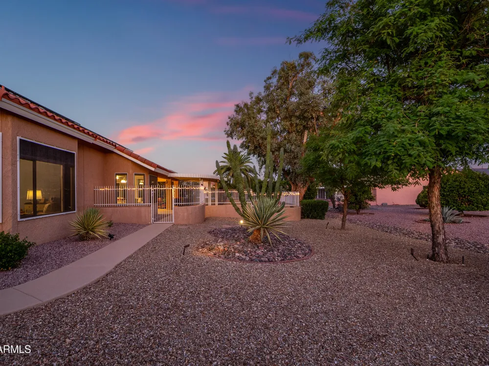 If you're looking for a meticulously maintained Sandoval model, located in the Kuentz Center area of Sun City West, AZ, this might be just the home for you. Home is 2150 sq. ft., with 2 Bdrms & 2 bathrooms. Kitchen features a Bkfst nook, pull outs, Corian counters & canned lighting. Primary suite has bay window, walk-in closet, dual sinks, remodeled shower & a remote controlled Mini Split AC/heat wall unit for exclusive room comfort. The leased solar system, plus Simonton vinyl dual pane energy efficient windows throughout the home & the custom sunscreens on all windows provide energy efficiency & privacy. Whether it be coffee in the AM or PM beverages the expanded & fenced south facing back patio is the perfect place to entertain family & friends. This is a must-see home!
