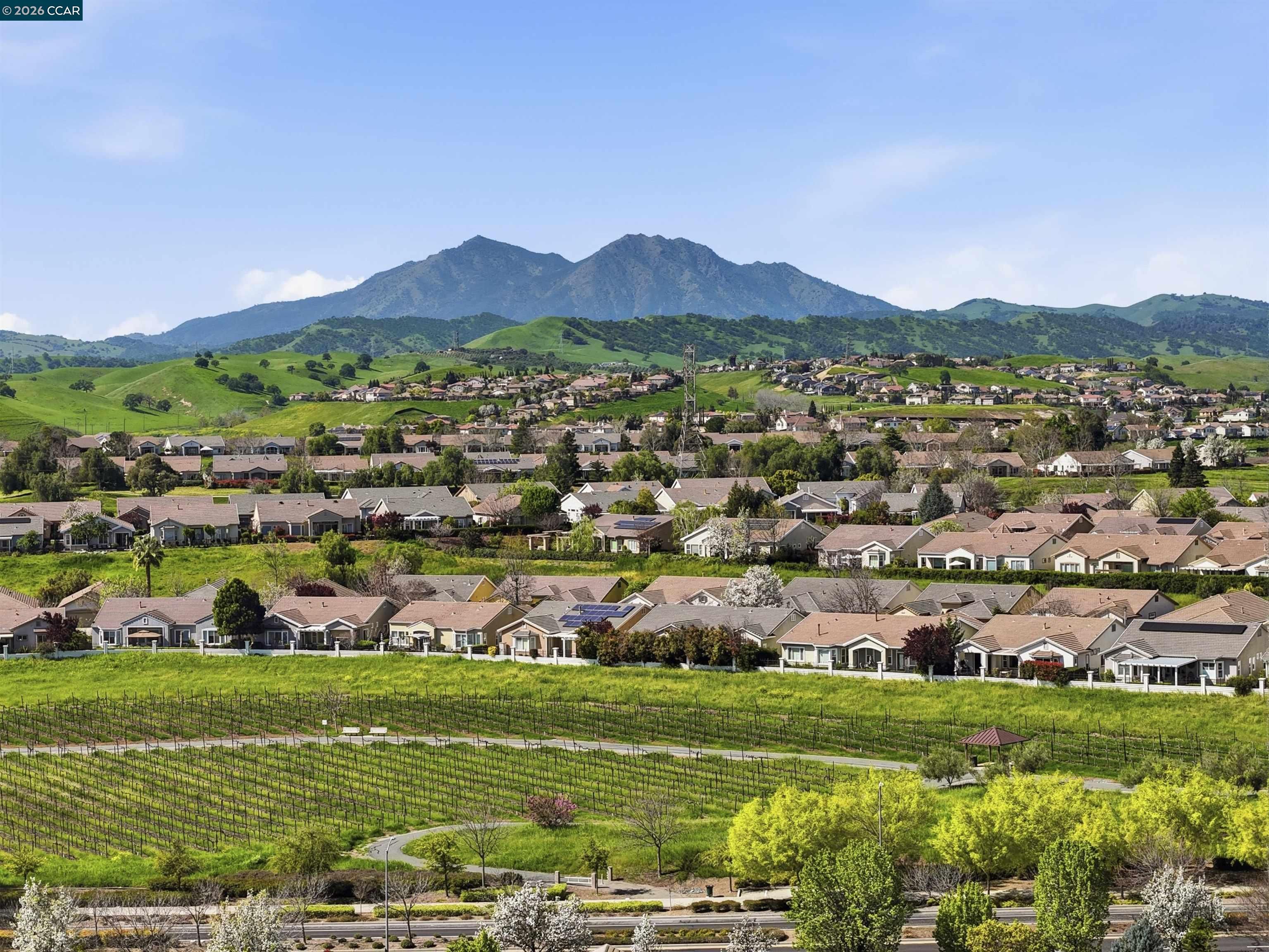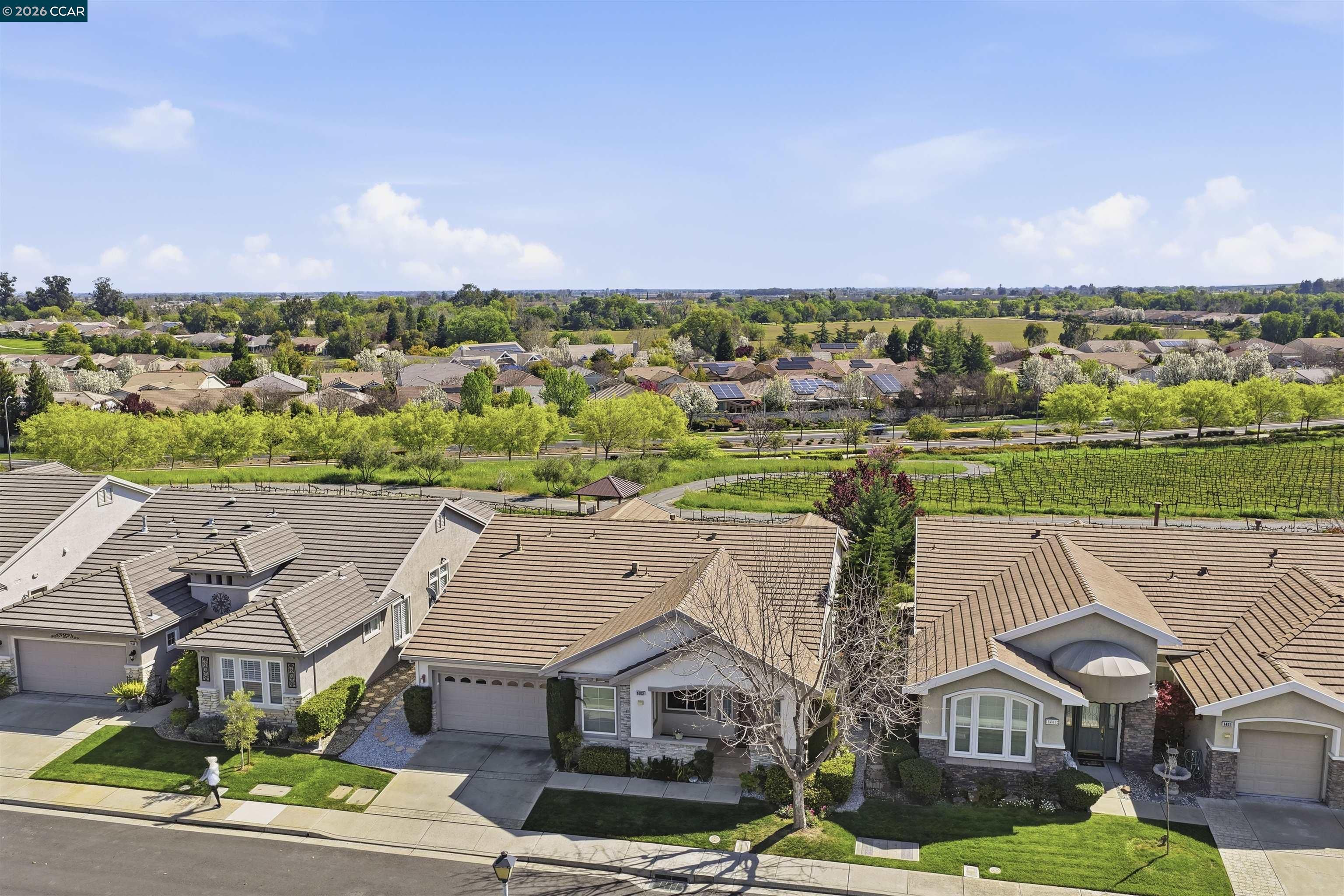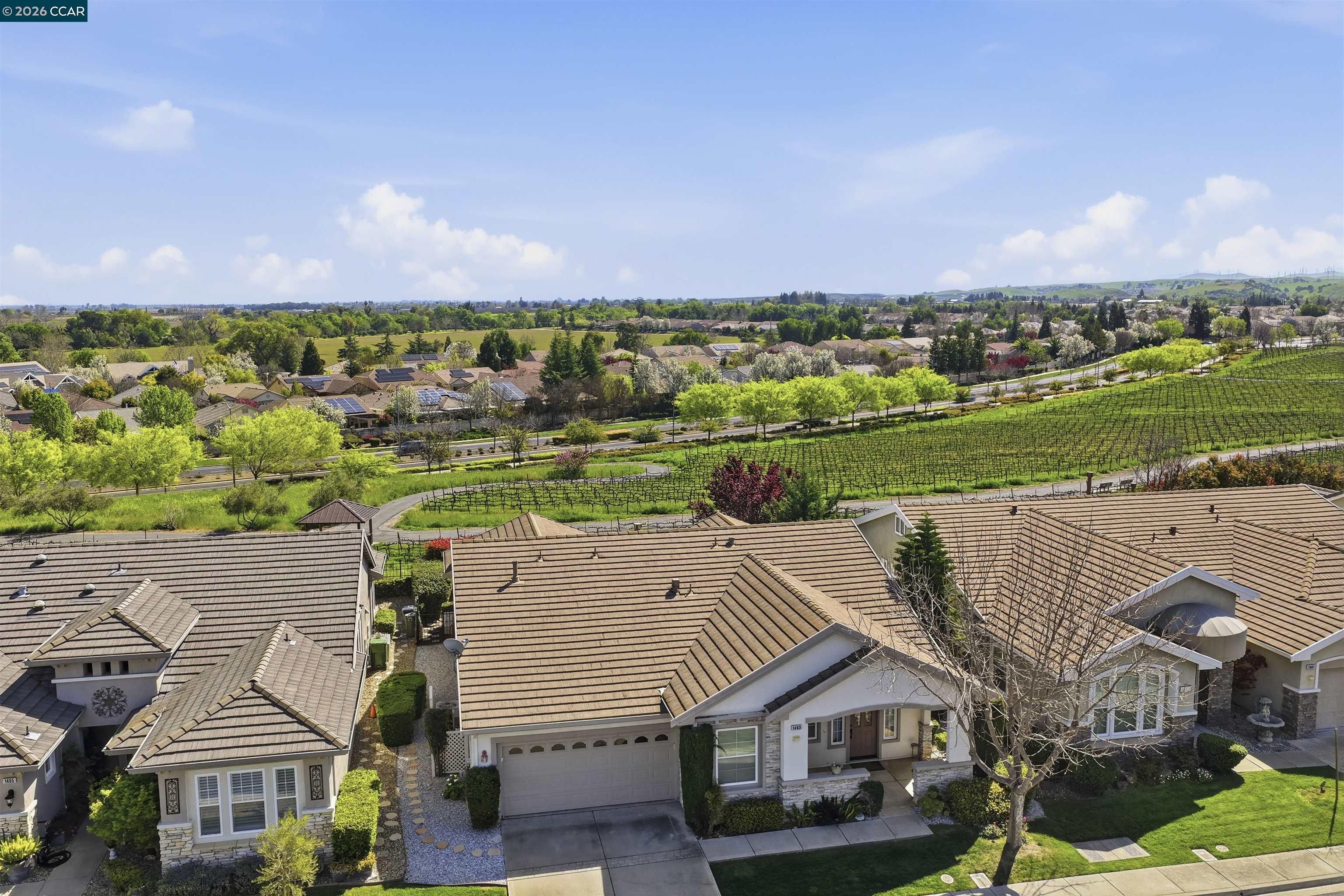 Beautifully updated single story home with stunning vineyard views and no rear neighbors. This popular model features a bright open floor plan with soaring ceilings and lots of natural light. Remodeled chef's kitchen features custom cabinets, granite slab counters, stainless steel appliances, bar seating and a cozy breakfast nook with gorgeous views. Huge primary suite features soaring ceilings and amazing vineyard views. Spa-like primary bathroom features an oversized walk-in shower, large tub, double sinks and a huge walk-in closet. Features three bedrooms: two bedrooms are suites plus a private office (3rd bedroom, just lacks a closet). Large laundry room. Newer luxury vinyl plank flooring throughout. Crown molding, custom built-ins and so much more. Peaceful, private covered patio with views galore. Oversized garage with room for storage or workshop. Summerset 3 is a gated, 55+ active adult community with tons of amenities, including pool, spa, clubhouse, gym, tennis and bocce ball. Conveniently located near shopping, restaurants, golf courses, parks, highway 4.
