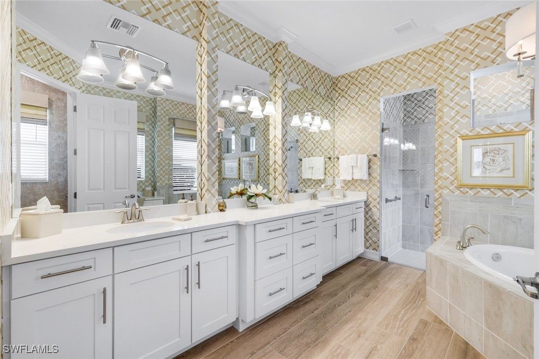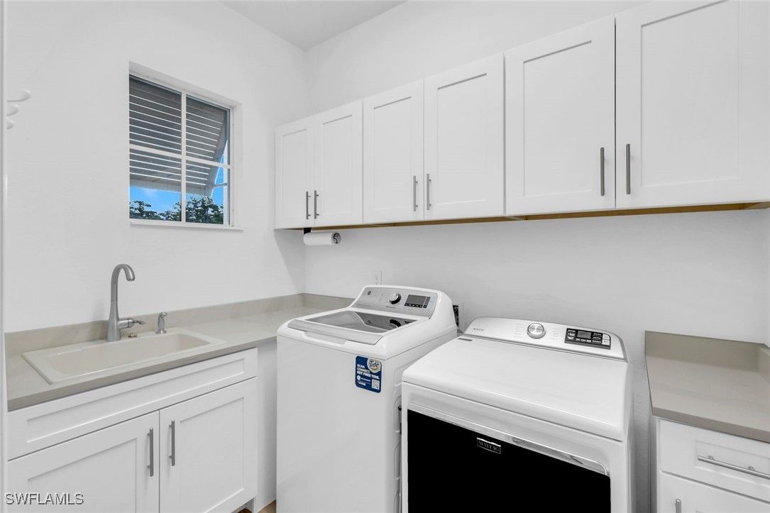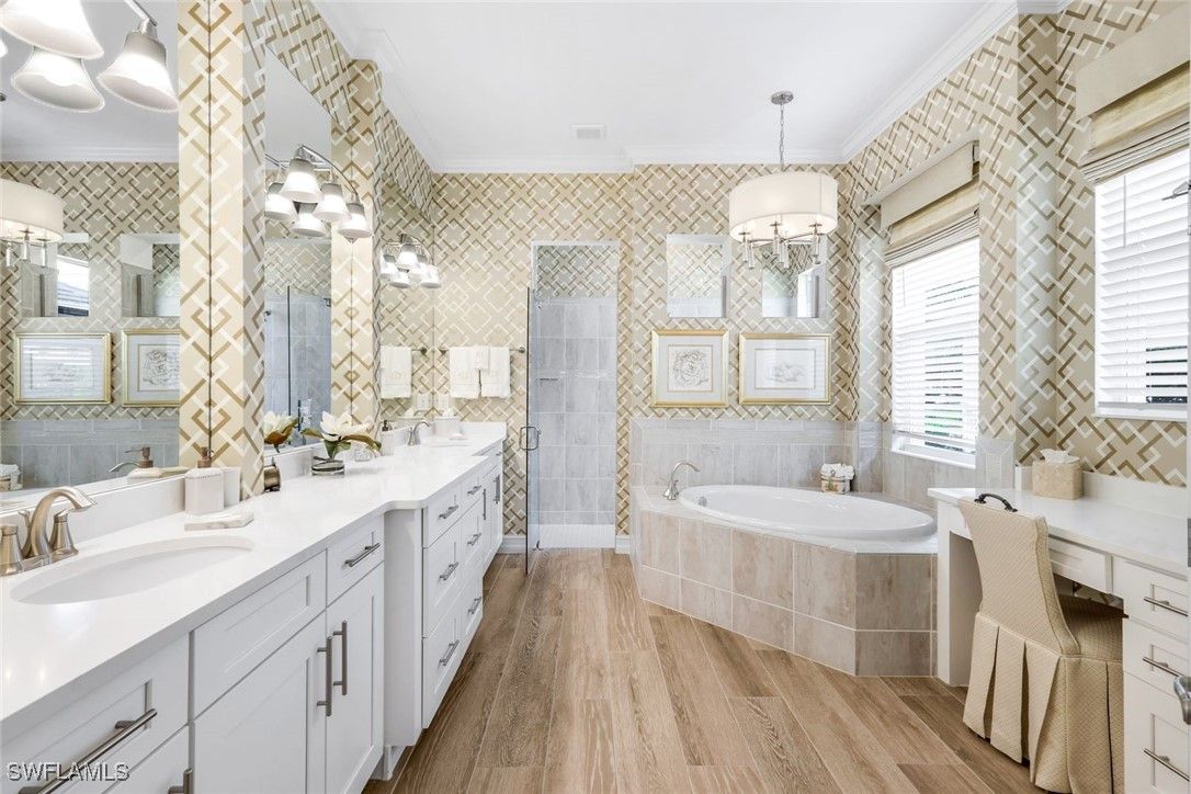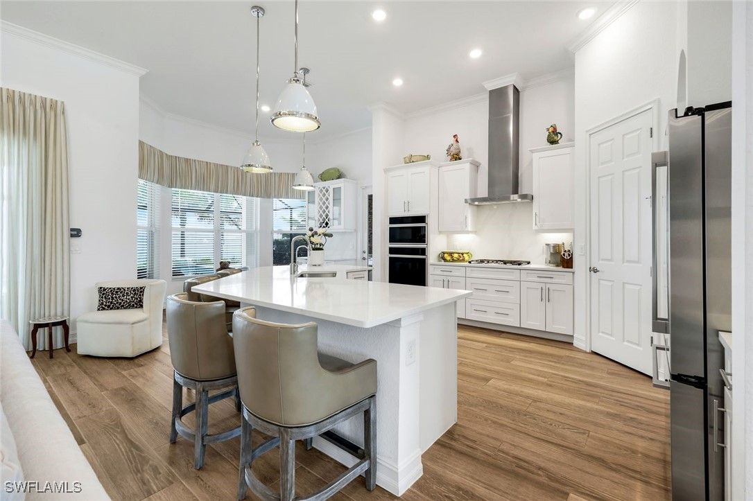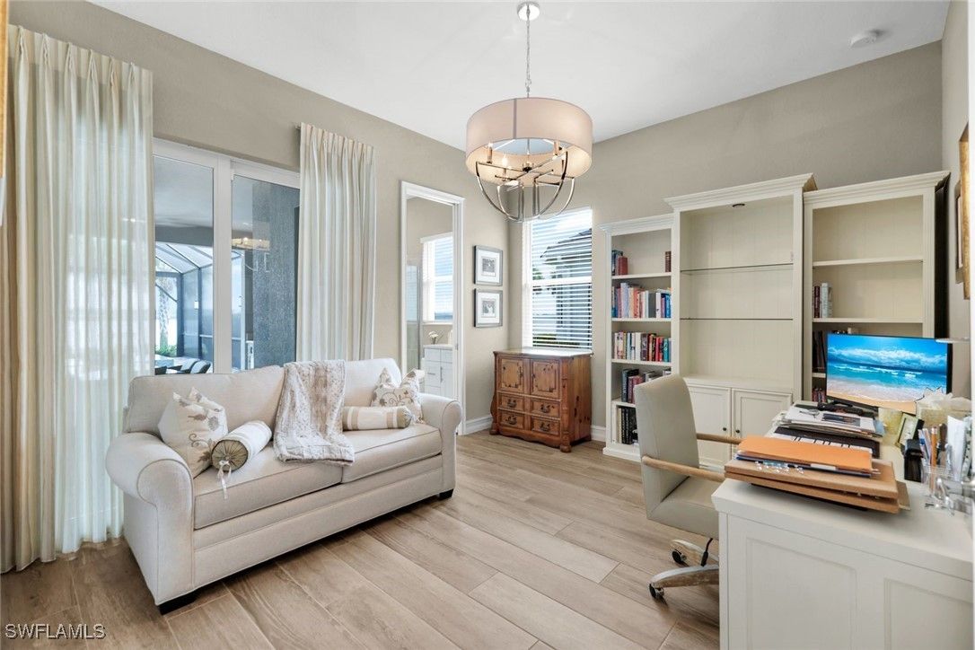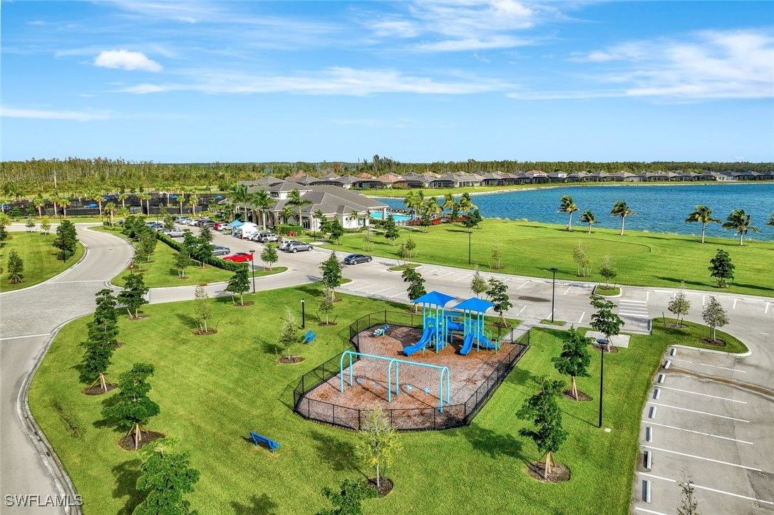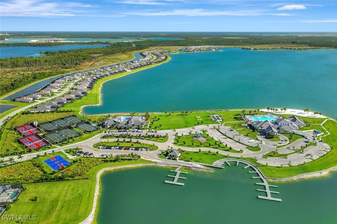 "Elegant Simplicity" are words used by the seller to describe this 3 bedroom plus a den, 3 bathroom, 3 car garage waterfront home. The magnificent "Bougainvillea Model" is a true masterpiece. The floorplan flows smoothly through the exquisite upgrades. From the tankless water heater to the RO system in the kitchen which also connects to the refrigerator, just a part of the GE Monogram appliance package. The entire home has wood-like tile flooring. Great room has built in cabinets that house the TV that ascends and descends with the push of a button. Upgraded light fixtures throughout from Hubbardton and Forge or the Lamp Shop of Naples. Main suite has view of the lake and pool, two walk in closets, double sink vanity and shower with large seat, 1 of 2 toto double flush smart toilets. The 9 blade paddle fans on the lanai also run on remote control and keep it cool by the outdoor kitchen. You often hear, this one is a must see, but this time its true. Looks better than the pictures. The views are incredible! Room for a dock if so desired. Has an ADT Security System, high ceilings and world class amenities and whole home generator by Generac. We'll see you soon!