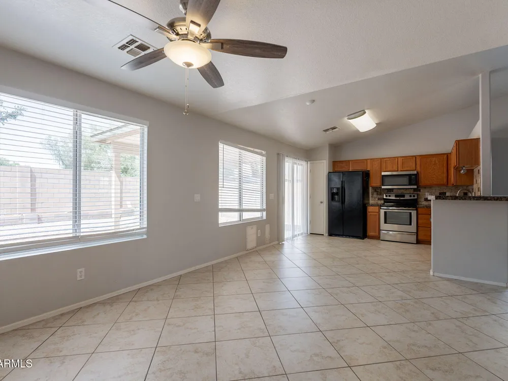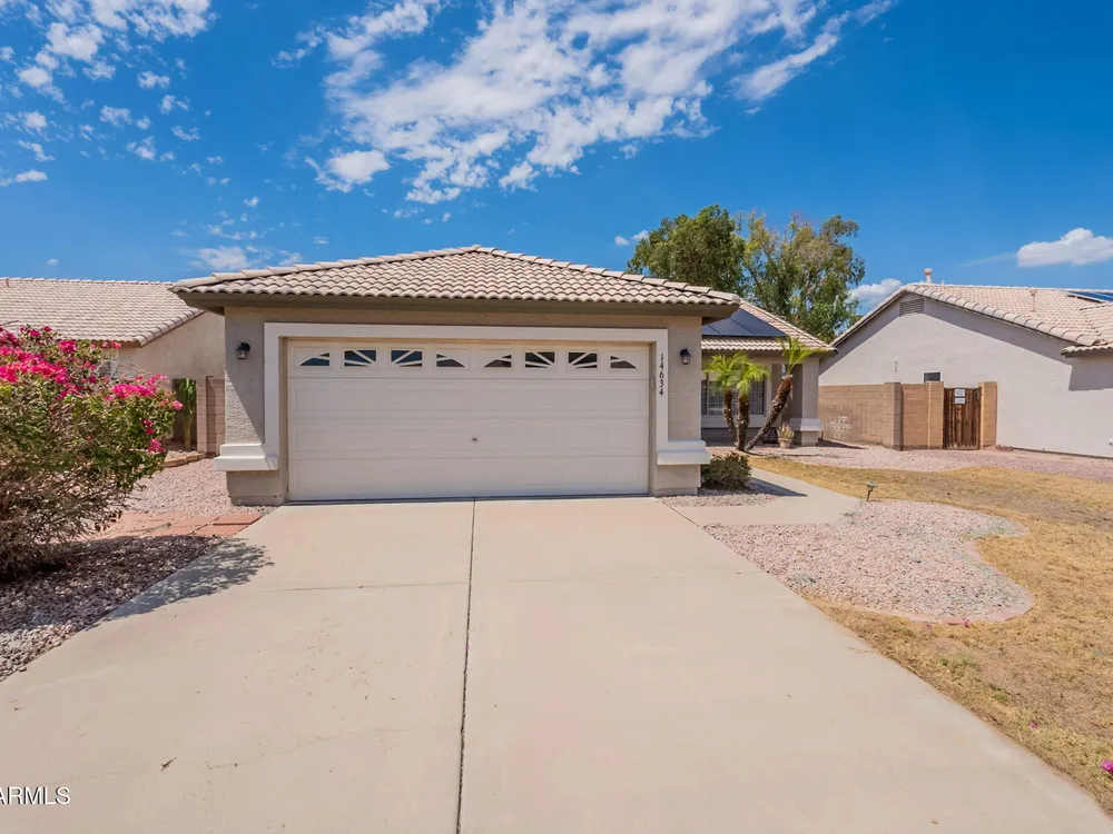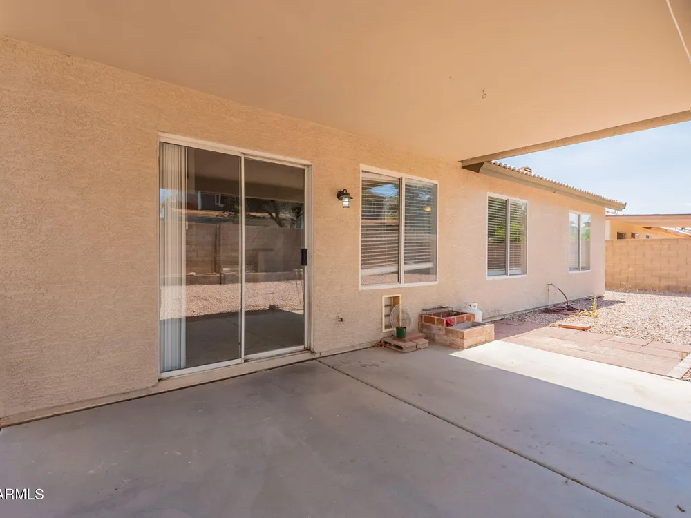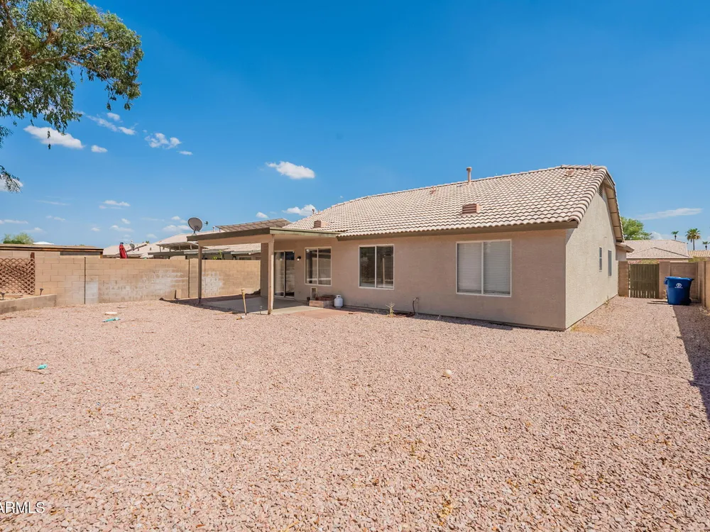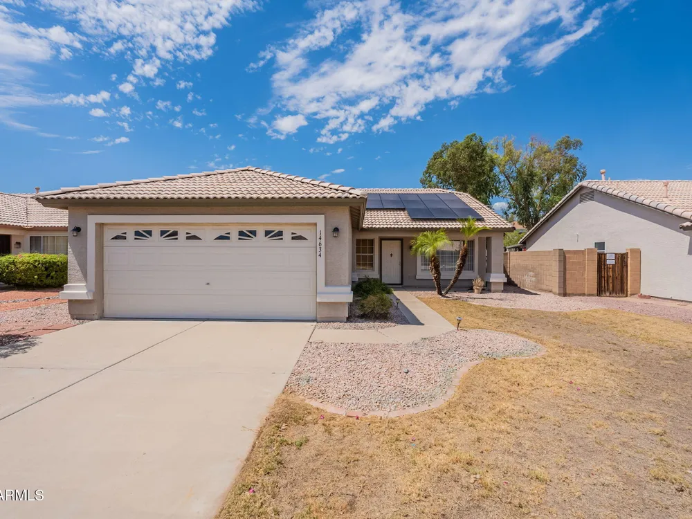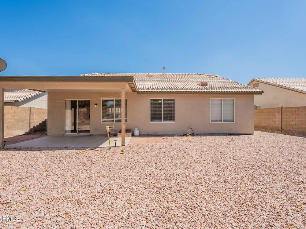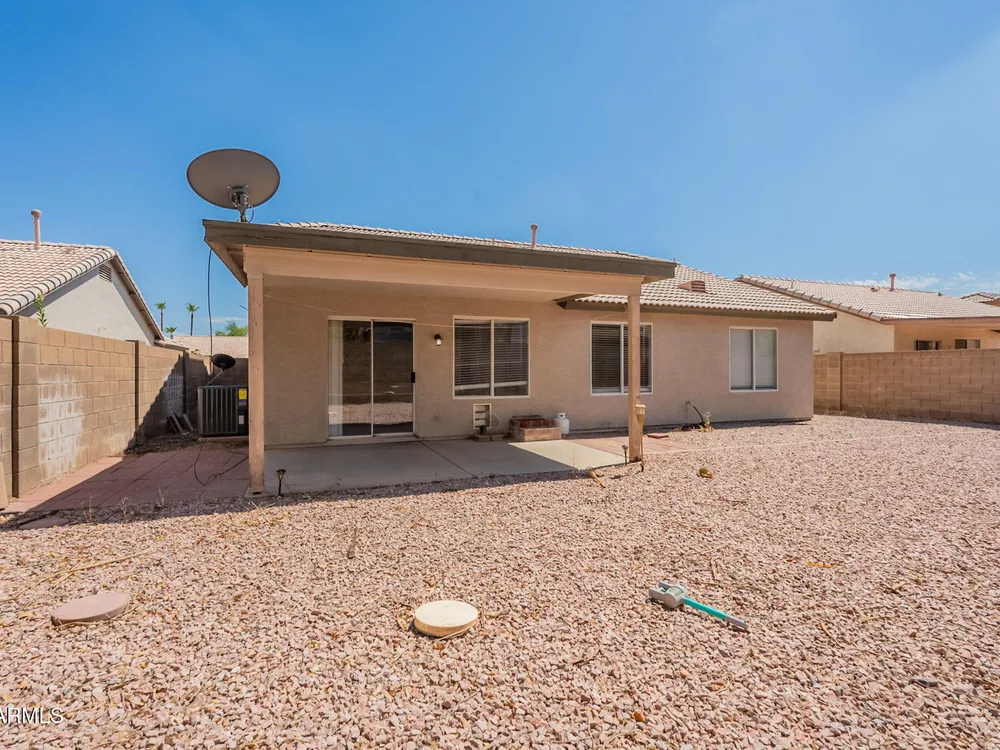 Welcome to the City of Surprise, MOVE-IN READY, 1440 sq.ft of interior living space, 3 BED + 2 BATH + 2 CAR Garage, plus OWNED SOLAR! Conveniently located by Rt 60 and within minutes of 303 freeway access, shopping, dining, and entertainment at your fingertips. 15 minutes to Costco and Prasada shopping/dining area, 20 minutes to White Tank Mountain Regional Park, 35 min from beautiful Lake Pleasant Regional Park. And 40 minutes to Sky Harbor International Airport. Open concept main living area with vaulted ceilings and a neutral color palette, light and bright with wood vinyl plank flooring, and white trim and doors throughout. Kitchen features granite countertops, breakfast bar, marble tile backsplash, ceramic tile floors, a convenient breakfast nook or dining area, and a pantry for all your storage needs. Master bedroom features vinyl plank flooring, a ceiling fan, a full bath, and a spacious walk-in closet. 2 additional bedrooms with ceiling fans and a full bathroom plus a laundry room with a washer and dryer. Bring your decorating ideas to your backyard space, or enjoy the low maintenance and relax under the covered patio. Spacious yard, with additional storage available on the side, features a newer AC Unit and Owned Solar, clean and move-in-ready.