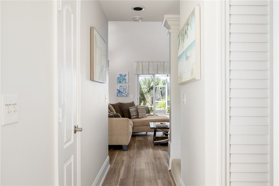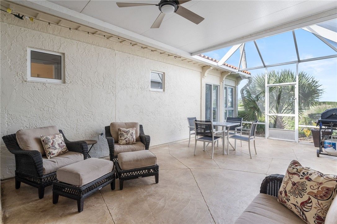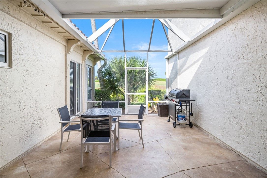 Turnkey townhome in St. David’s at Grand Harbor, set along the 17th hole and steps from the pool. This 3-bed, 2.5-bath home with a 1-car garage features soaring two-story ceilings, a stone fireplace, and seamless indoor-outdoor living with a private lanai. Updated kitchen and new first-floor flooring. First-floor primary suite offers an updated bath, walk-in closet, and lanai access. Two upstairs bedrooms share a hall bath. Surrounded by ponds, oak-lined paths, and wildlife. Optional golf and tennis membership. Minutes to the beach.