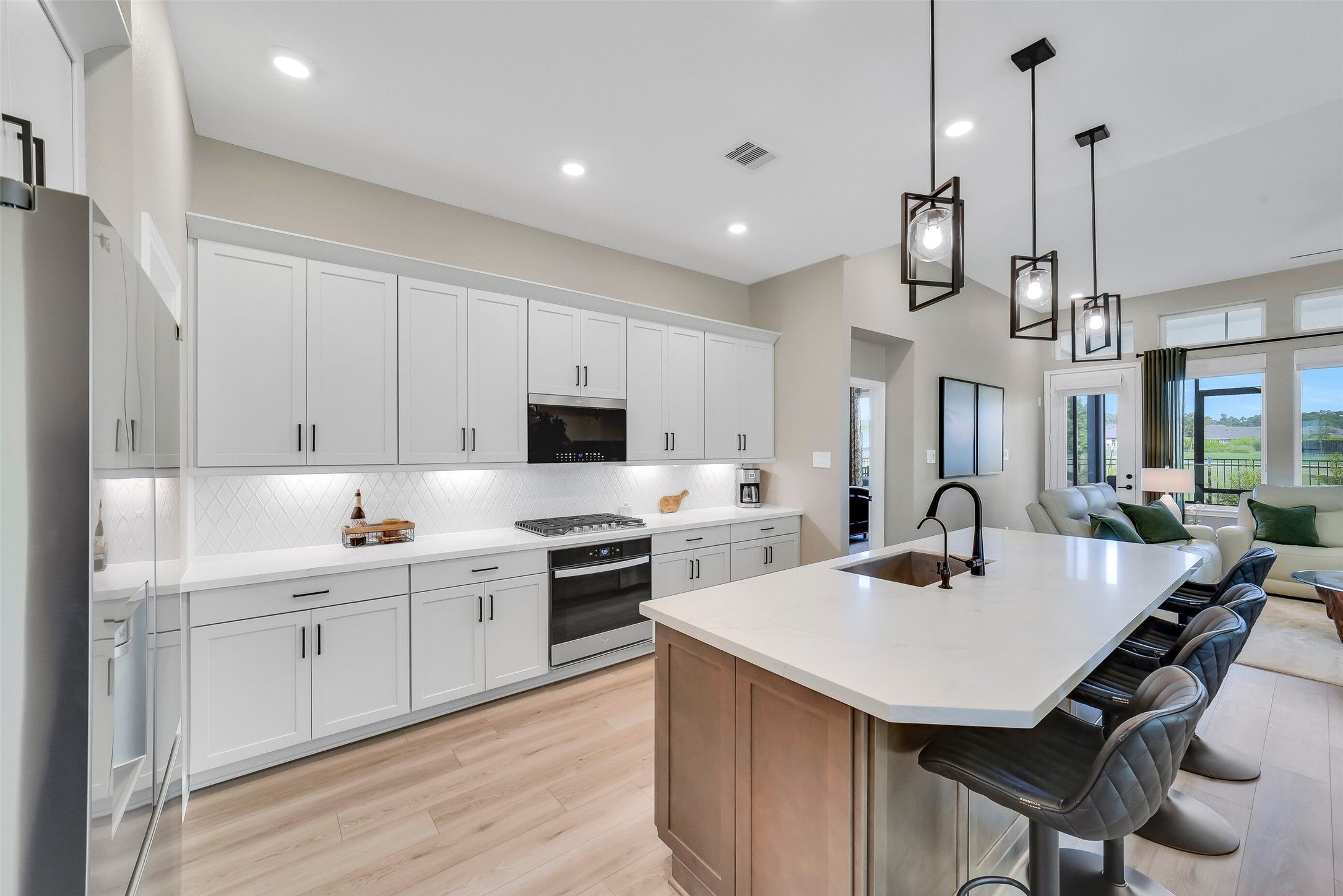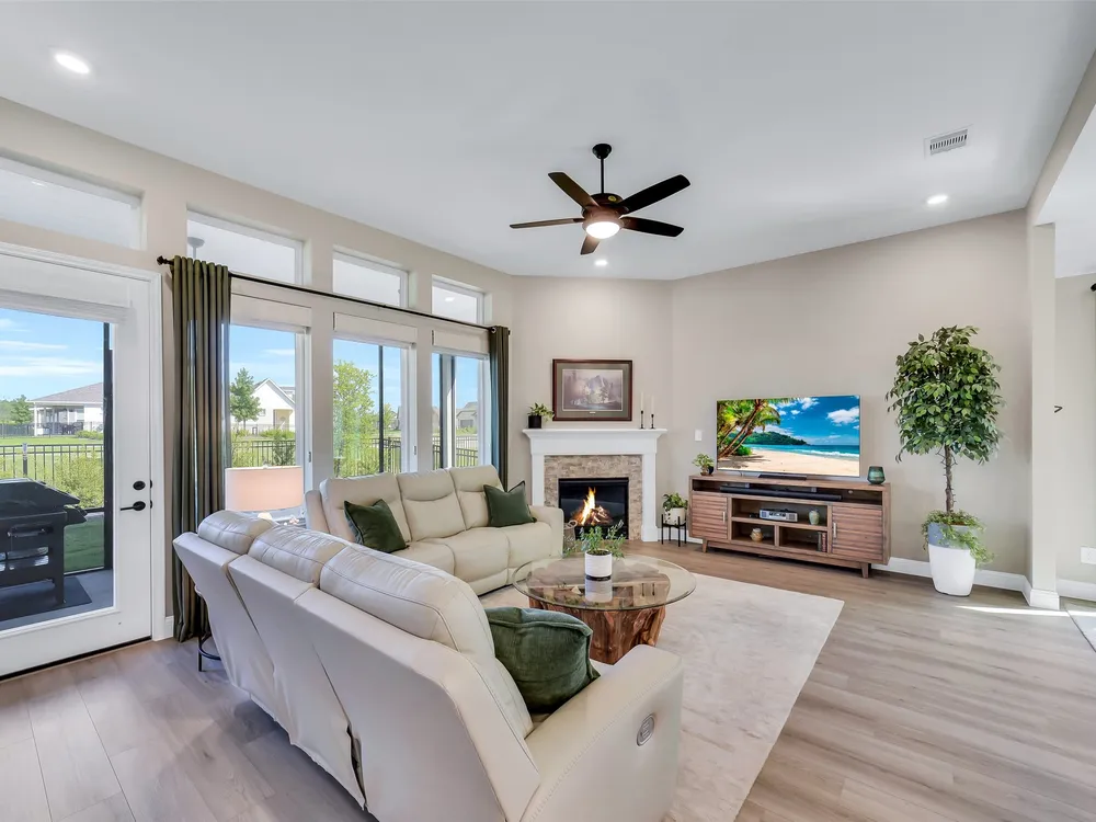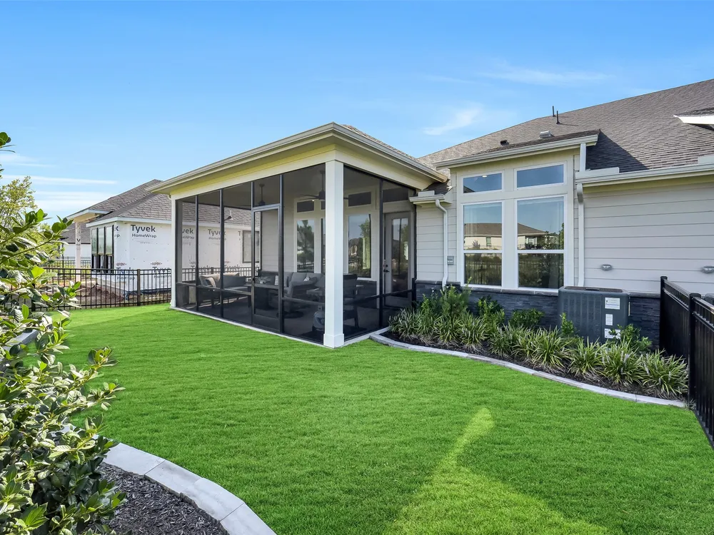 Stunning home located in the premier 55+ community of Chambers Creek. Features include open-concept living, abundant natural light, high ceilings, LVP flooring throughout, 2 bedrooms, a home office/optional 3rd bedroom, 2 car attached garage, & a screened-in porch that overlooks the backyard w/no back neighbors. The kitchen boasts beautiful finishes, a large island w/breakfast bar seating, shaker-style cabinetry, under-cabinet lighting, pendant lighting, & a walk-in pantry. Luxurious primary suite w/a deluxe walk-in shower & spacious walk-in closet. Residents of this guard-gated community enjoy numerous amenities that include front & backyard maintenance, a golf course, 18-hole putting course, resort-style pool, vineyard, stocked lakes, pickleball & tennis courts, a fitness center, cafe, 20+ miles of trails, a full-time lifestyle director, marina access to Lake Conroe w/a private boat launch & more.