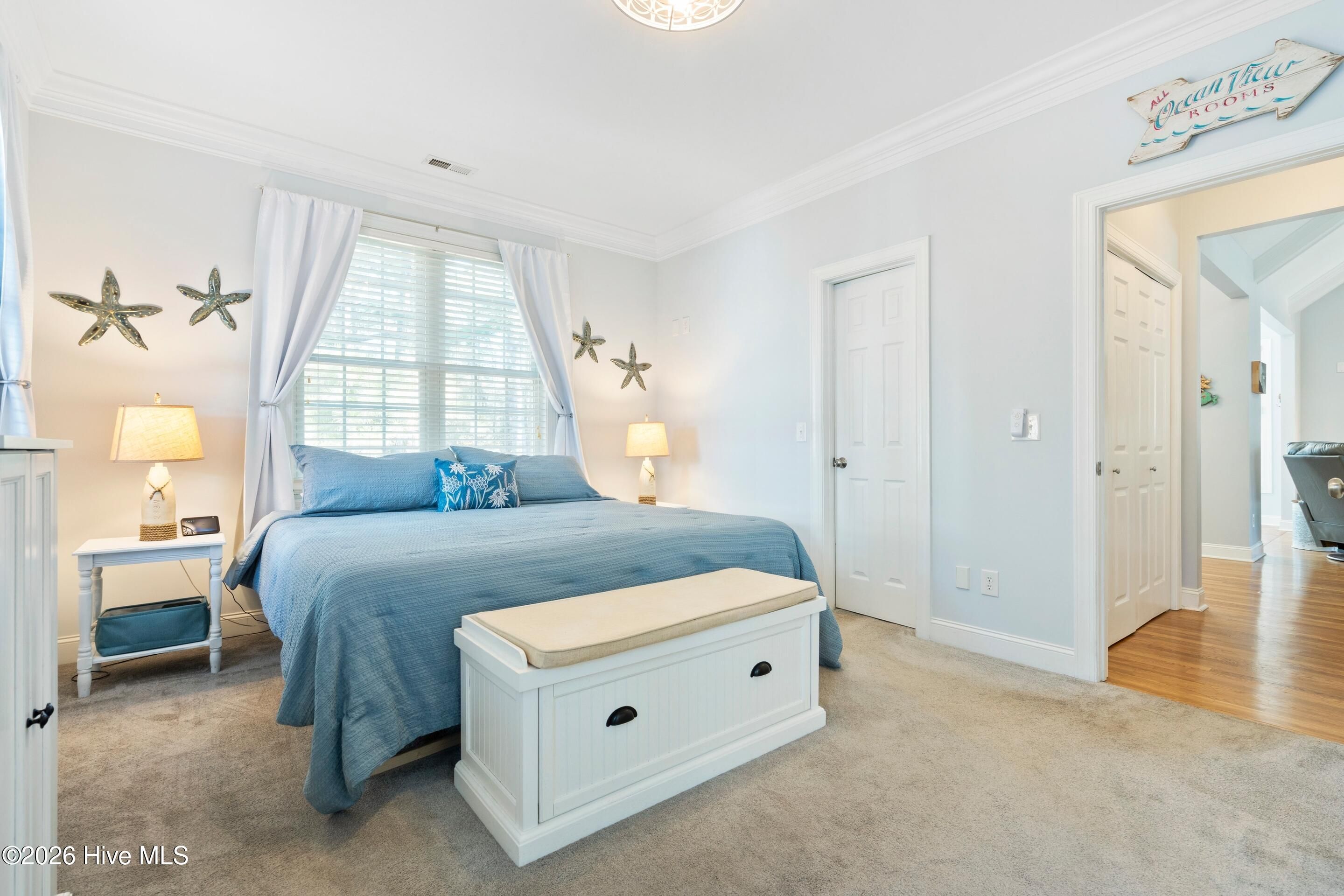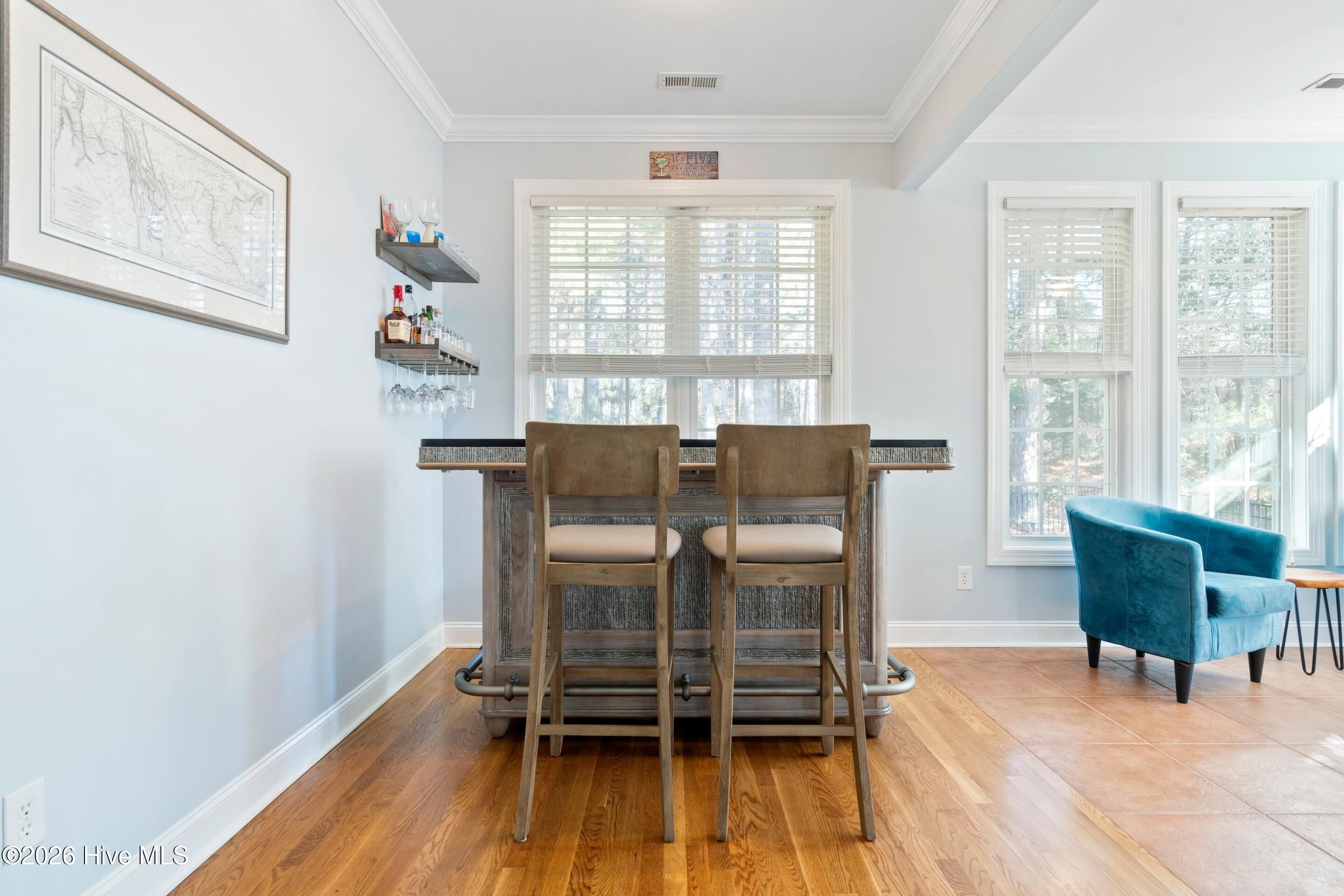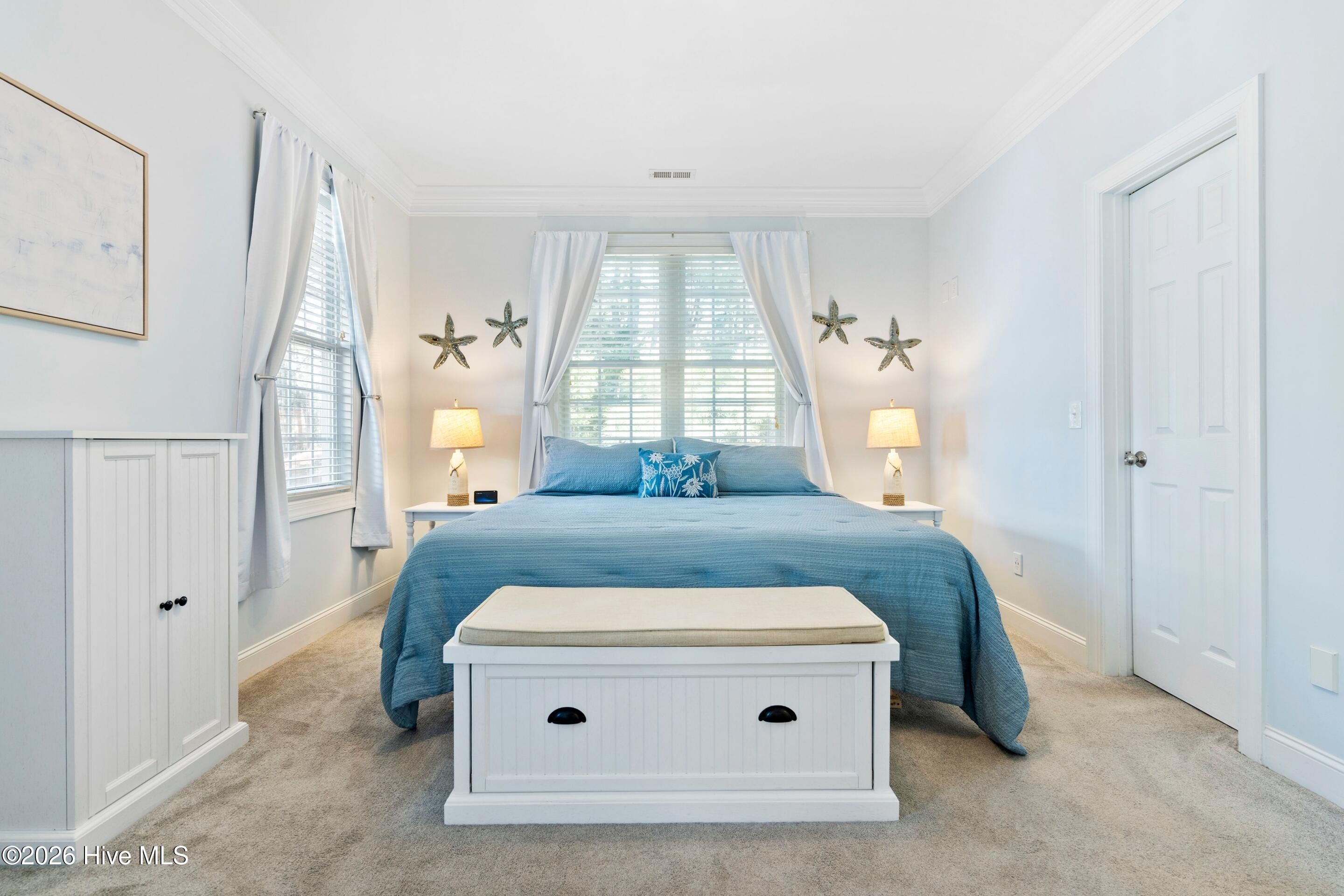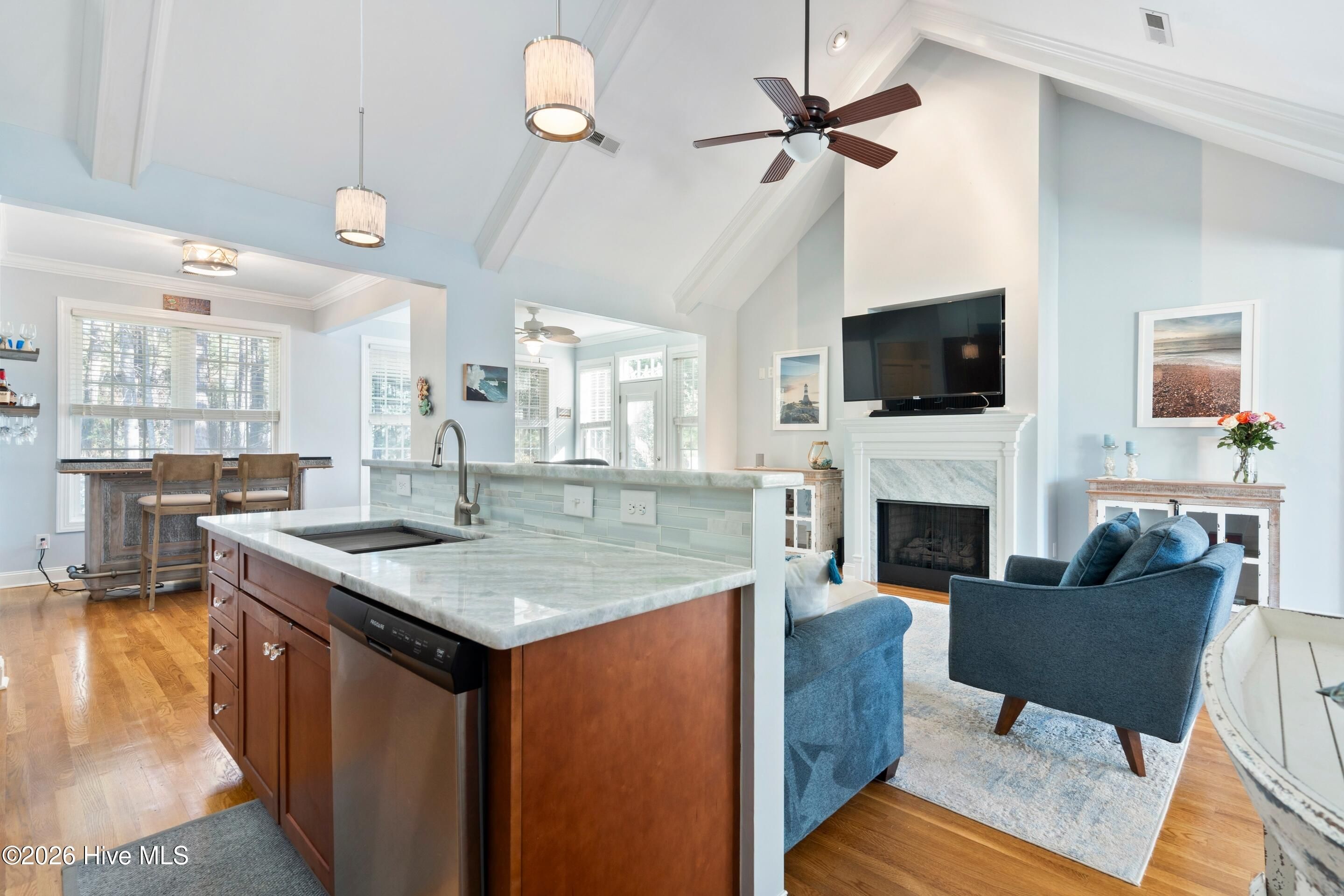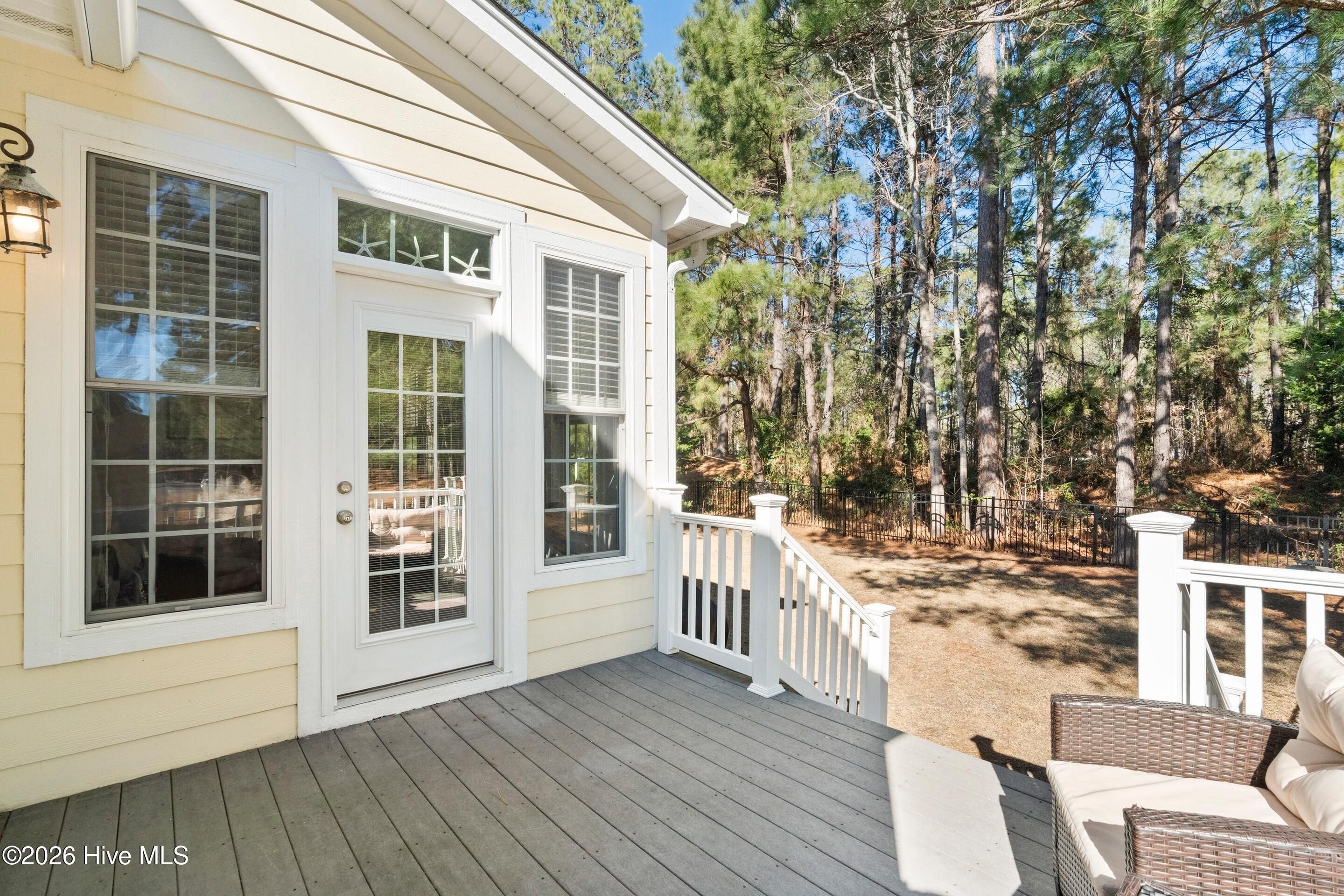 This immaculate, 3BR/2BA home is absolutely adorable. You will love the open floor plan. As you enter the foyer, a bedroom with beadboard ceiling is on the right. The dining room on the left is open to the Great room (with vaulted ceiling, beams and fireplace), kitchen and sunroom. The kitchen has marble countertops and glass tile backsplash. The Dishwasher, microwave, washer/dryer, and water heater were purchased in 2025. The refrigerator was replaced in 2024. There are hardwood floors throughout the main living area and tile in the sunroom. The split bedroom plan offers a sanctuary for the owners with a spacious master suite complete with large walk-in closet, ensuite with double sink vanity, whirlpool tub and walk-in shower. Guests have a bedroom and bath that can be made private with a barn door closing it off from the main area of the house. The workbench in the garage will convey with the home, and some of the furniture is negotiable. The crawl space is encapsulated and the dehumidifier is serviced annually. The lot backs up to a berm and the area to the right of the home is not buildable, which allows for privacy. The backyard is fenced-in which is perfect for small children or pets. Flood insurance is not required in order to get a mortgage on this home. Enjoy all the amenities that Winding River has to offer: Gated, 27-hole championship golf course community with clubhouse, pool, fitness center, tennis, pickleball, bocce ball courts, Beach Club & pool on Holden Beach, River House & Marina, miles of paths, community garden and butterfly park. Also, enjoy being just a short drive to Historic Southport's shops and restaurants, and 30 minutes from Wilmington, NC and about 45 minutes to North Myrtle Beach.