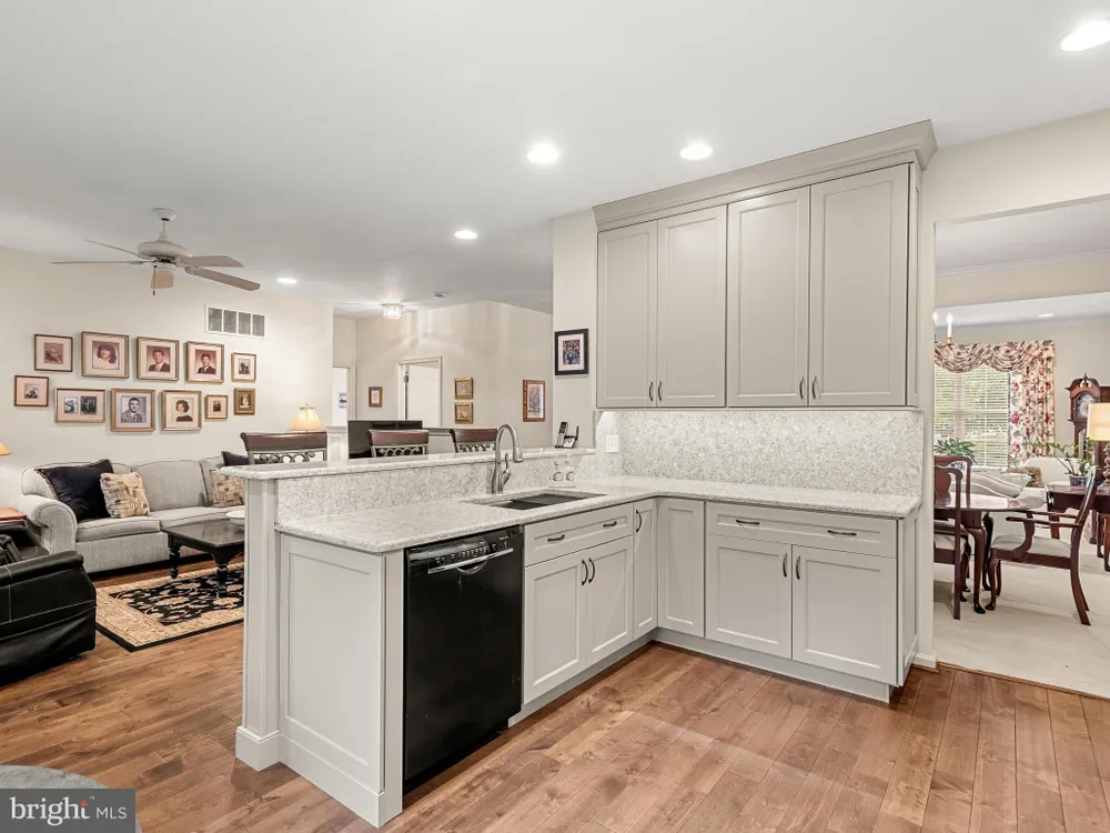 Sought after Single in Quaker Village with finished Lower Level and attached 2 car garage. This is a Cedar Model with formal Living Room and Dining Room with crown moldings right off the Foyer. Move back to the Family Room with updated wide-plank hardwood floors, triple windows and door to the Deck. The Family Room opens to the Kitchen and Breakfast area to enjoy your morning beverage next to a large double window overlooking the Deck and private rear of the house. The Kitchen was renovated in 2021 with upgraded grey cabinets and light granite counters and backsplash, under cabinet lighting, a Pantry closet, gas range, recessed lighting and wide-plank hardwood floors installed at the time of remodel. The Primary Bedroom Suite has a Walk-in Closet, wide-plank hardwood floors, En-suite Bath with updated tile tub surround and updated stall shower with built-in seat, Double Sinks, and jetted Jacuzzi Tub. The Main Level includes a 2nd Bedroom/Office/Den with large closet, updated Full Bath with a Tub-Shower and sink, and a Laundry room with access to the attached 2 car oversized garage. The Lower Level is finished with an open concept Recreation Room, an office/bonus room, and Storage areas. The oversized Deck has a remote-controlled retractable awning and just a few steps down to ground level. This lovely home has upgrades including updated wide-plank hardwood floors, Crown Moldings, HVAC replaced in 2020, and more. Furnishings are negotiable. Enjoy the wonderful lifestyle of an ACTIVE Gated Community with its many activities and mature landscaping.