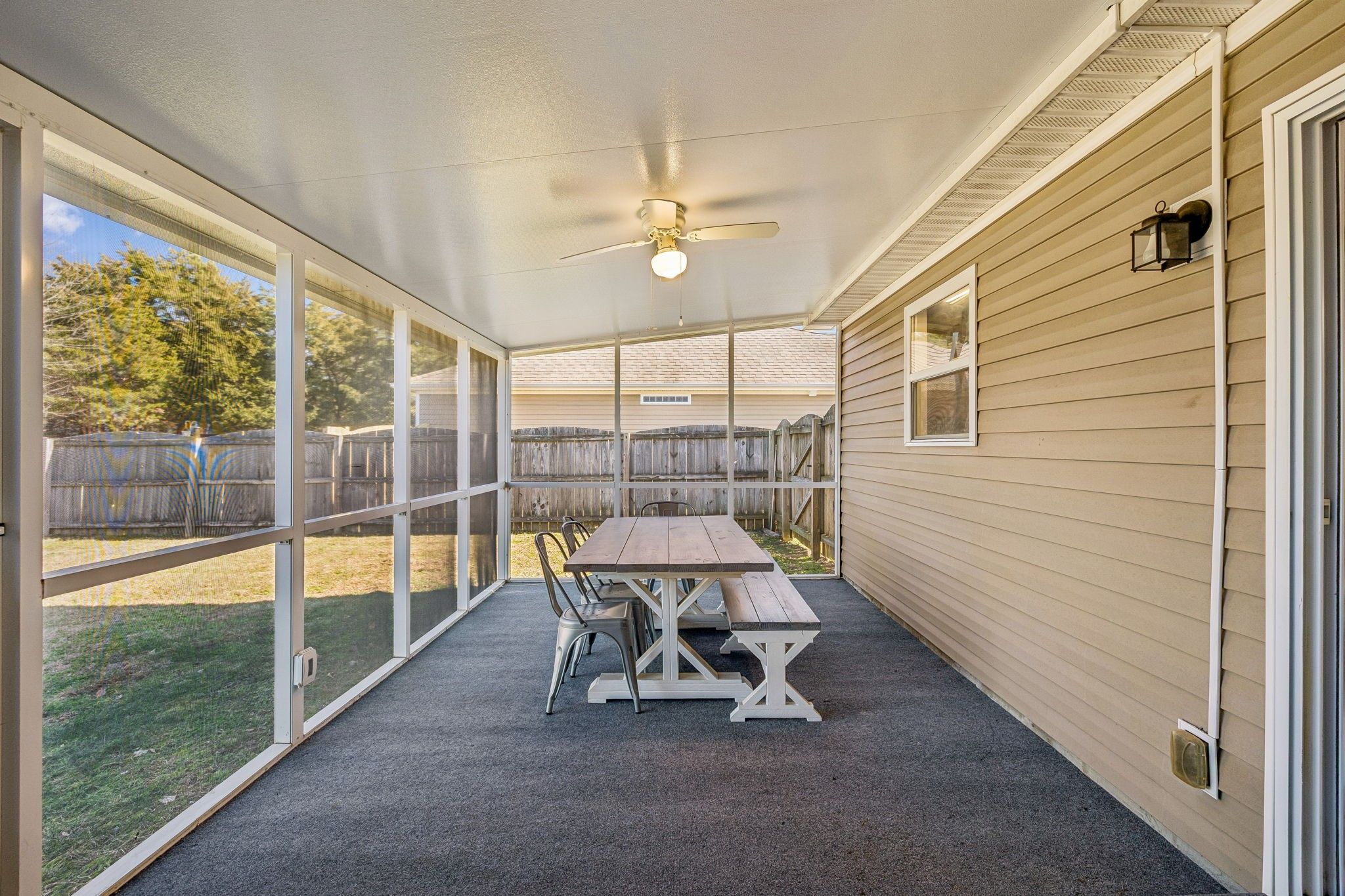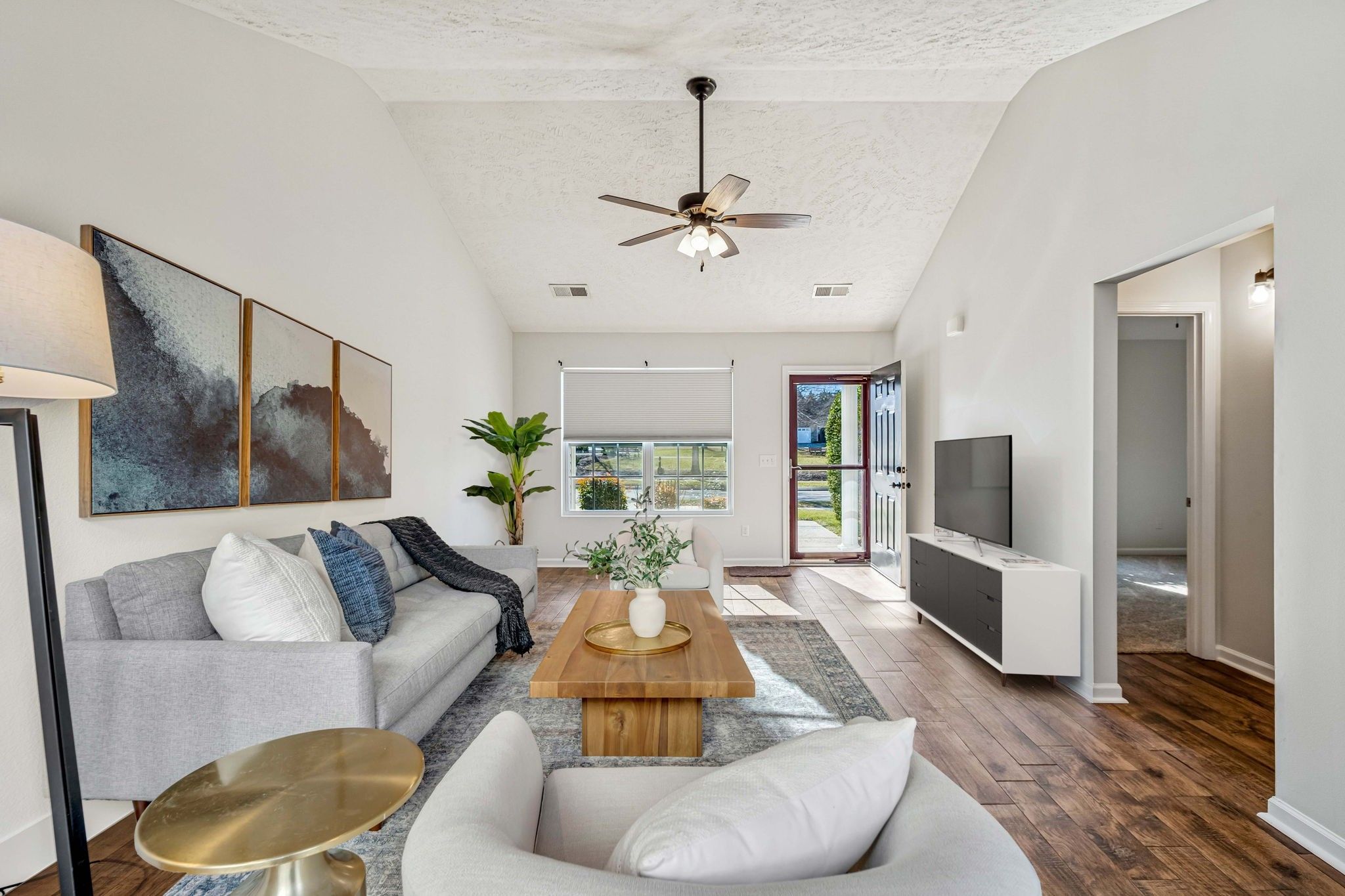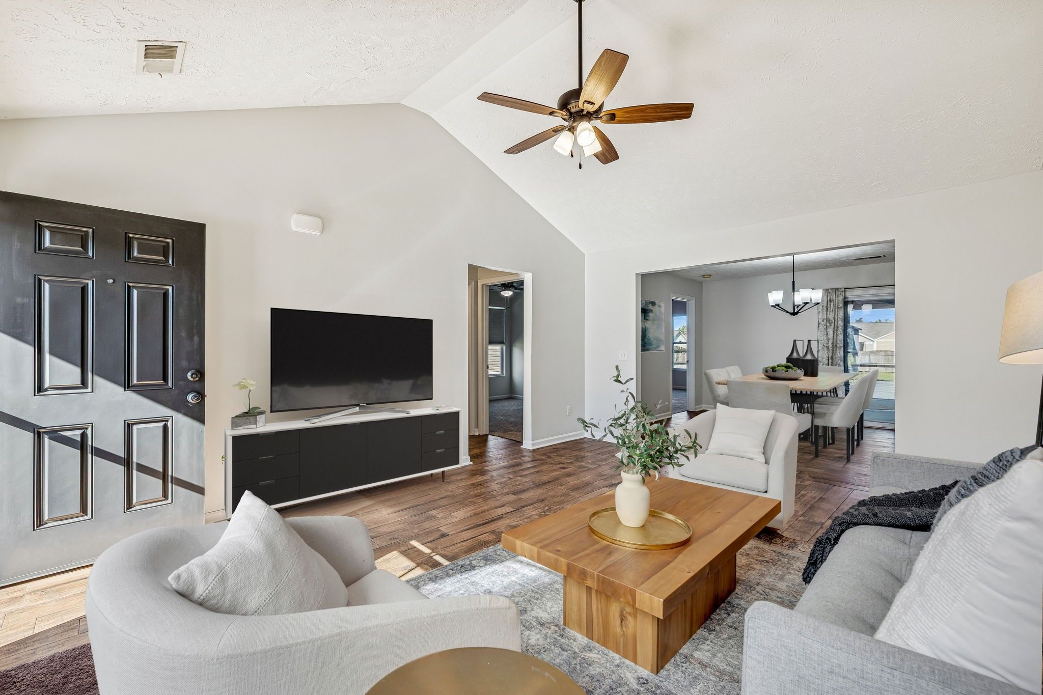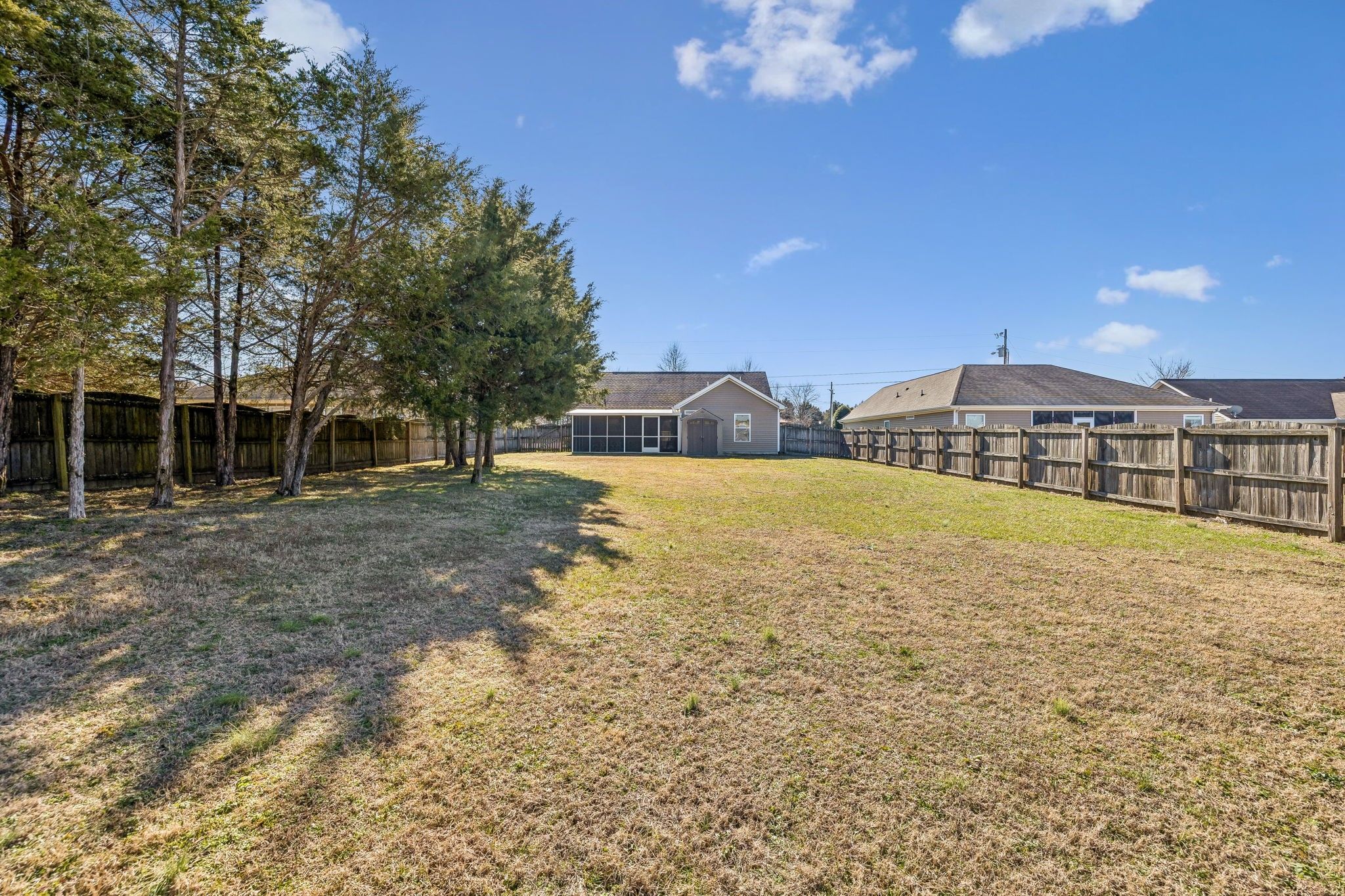 Move-in ready 1,288 sq ft cottage-style home featuring numerous recent updates, including fresh interior paint, updated light fixtures, new carpet, and porcelain Farmhouse Chestnut tile flooring. This 3-bedroom, 2-bath home includes a one-car garage and a spacious open-concept floor plan. The kitchen offers abundant cabinetry and a center island, perfect for everyday living and entertaining. The primary suite features trey ceilings, his and hers closets and a tiled walk-in shower. Enjoy outdoor living on the 20’ x 10’ screened-in porch overlooking a large, privacy-fenced backyard. Step-free entry provides easy access. Ideally located directly across from the clubhouse and pool, and just minutes from restaurants, grocery stores, and retail shopping.