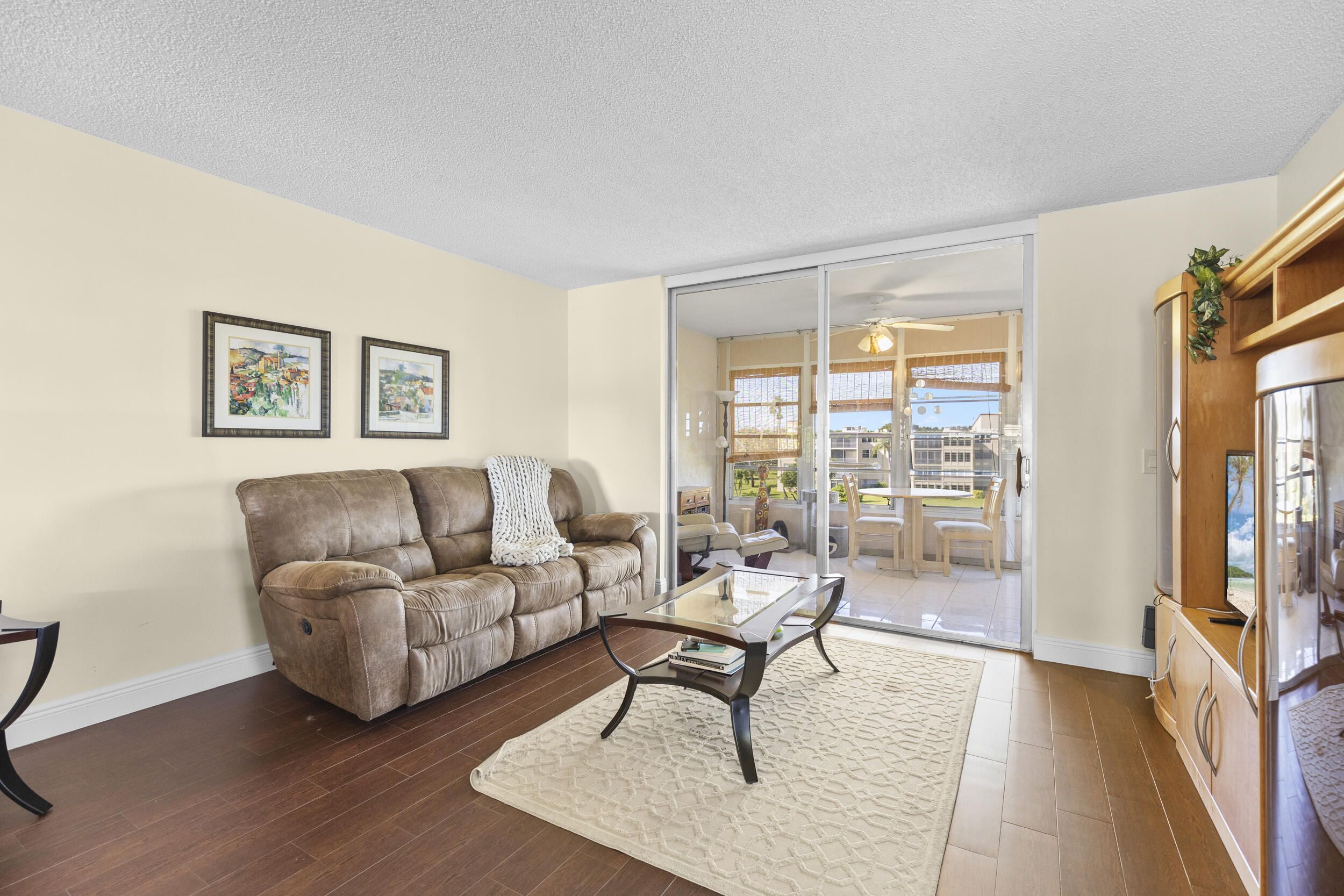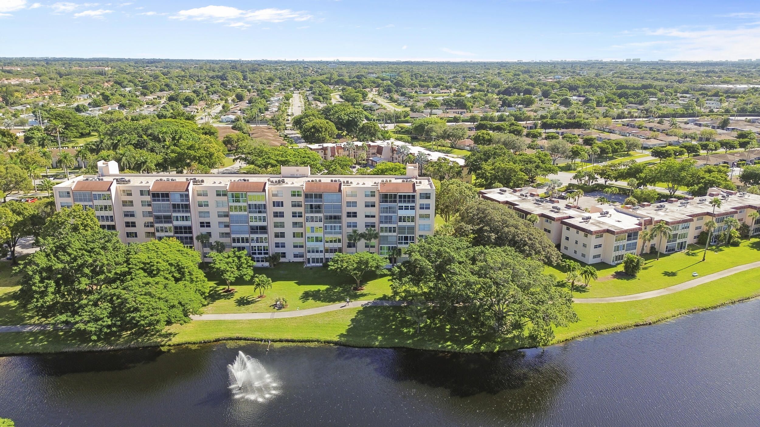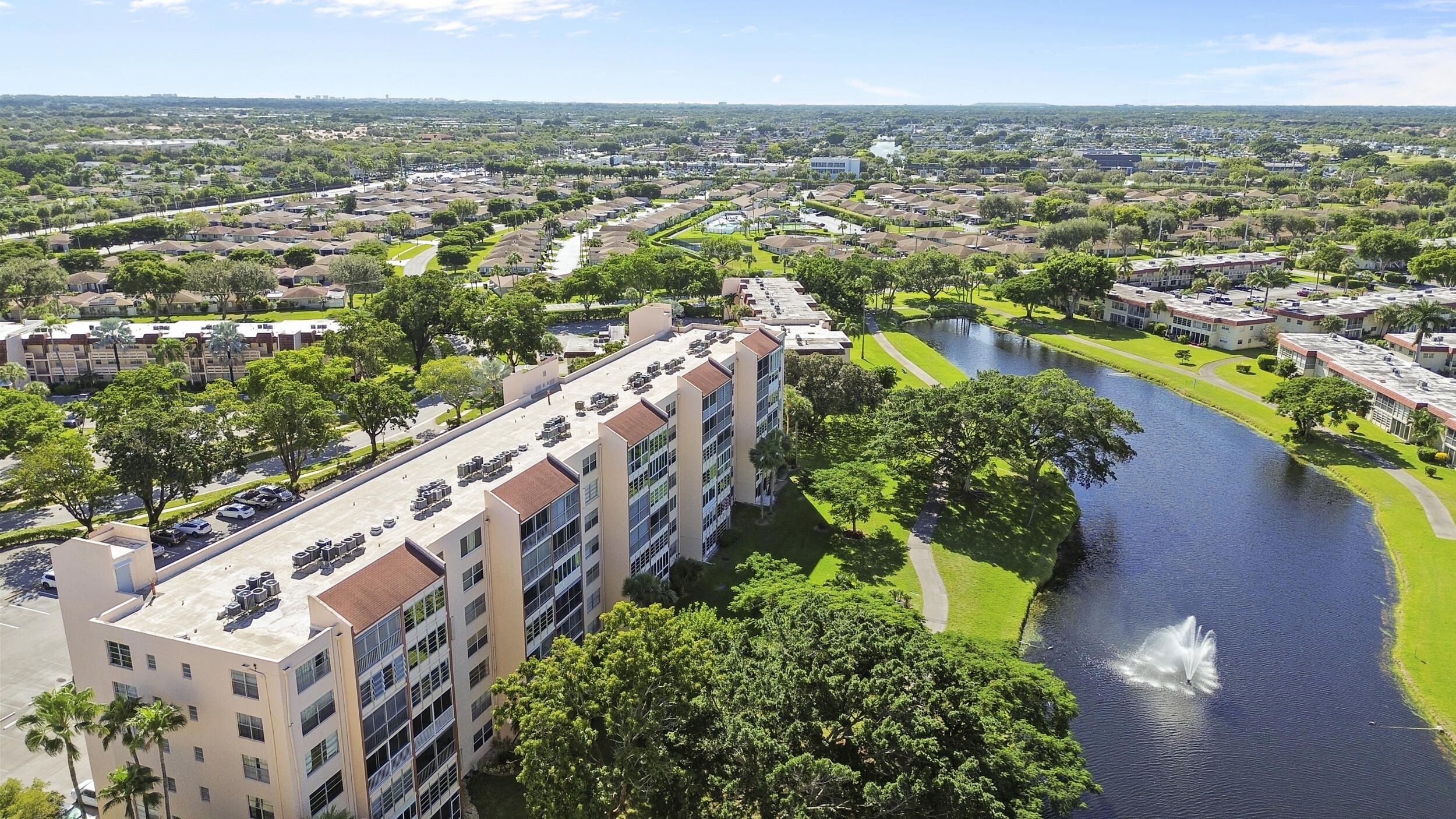 Owner Financing Available! FULLY FURNISHED move-in ready!! Beautiful LAKE VIEW from 4th Floor! Open living concept. Updated kitchen with granite, wood shaker cabinets, stainless-steel appliances and large pantry. Florida dining area, Primary suite has large walk-in closet, tiled shower. Second bath has tub/shower combo. Glassed in porch makes room for den, office or extra bedroom! Washer & Dryer conveniently located inside unit. Storage closet too. Water heater 2017. Fabulous amenities including clubhouse, library, auditorium, heated pools, fitness center, walking trails, tennis/pickleball courts, bocce, hot tub and courtesy bus service Close to turnpike, shopping & the beaches. This community is 55 or better.