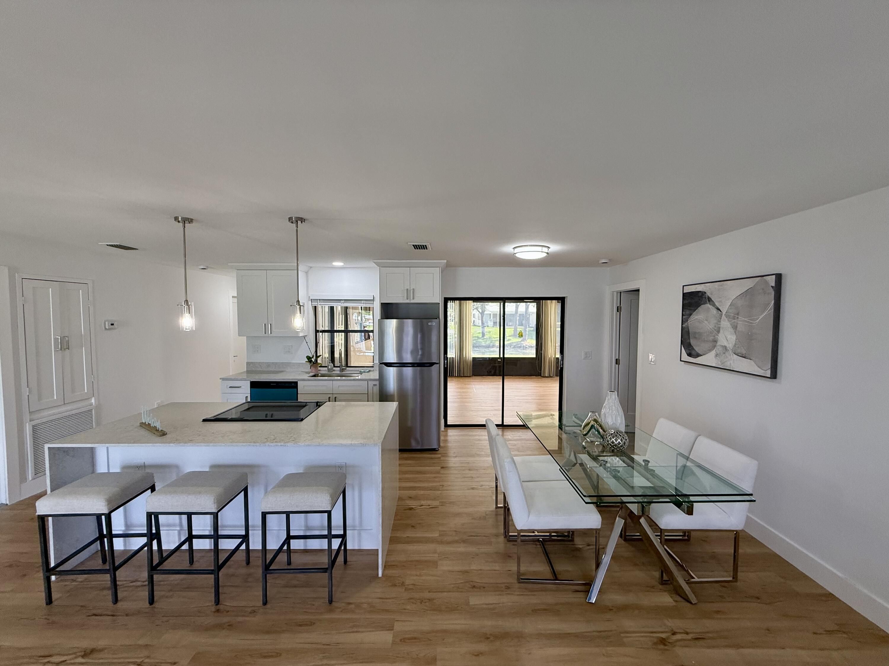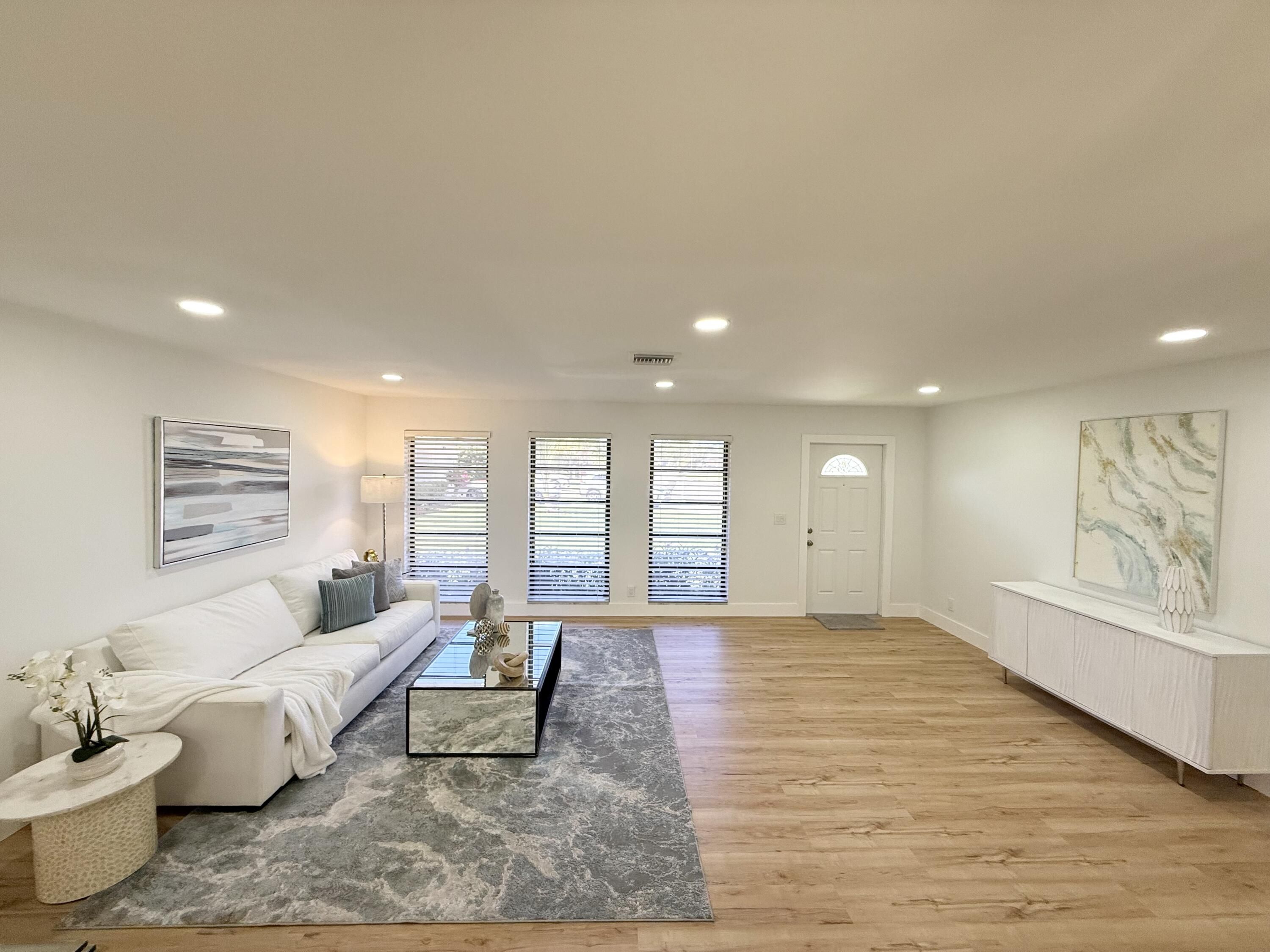 This beautiful fully renovated home sit on a huge 19,000+ square foot lot on a peaceful lake. The roof is brand new 2025, custom kitchen with soft closing cabinets, all new appliances, luxurious caesar stone quartz counter tops, new floors, new doors, new light fixtures, fully updated bathrooms, and more! It also has a large 2 car garage with an over sized enclosed Florida room. Coco Woods Lakes is a quiet 55+ community located minutes from downtown Delray and beautiful beaches. Very low HOA fee of $202 per month which includes cable, internet, community clubhouse, swimming pool, shuffleboard, pickleball and more.