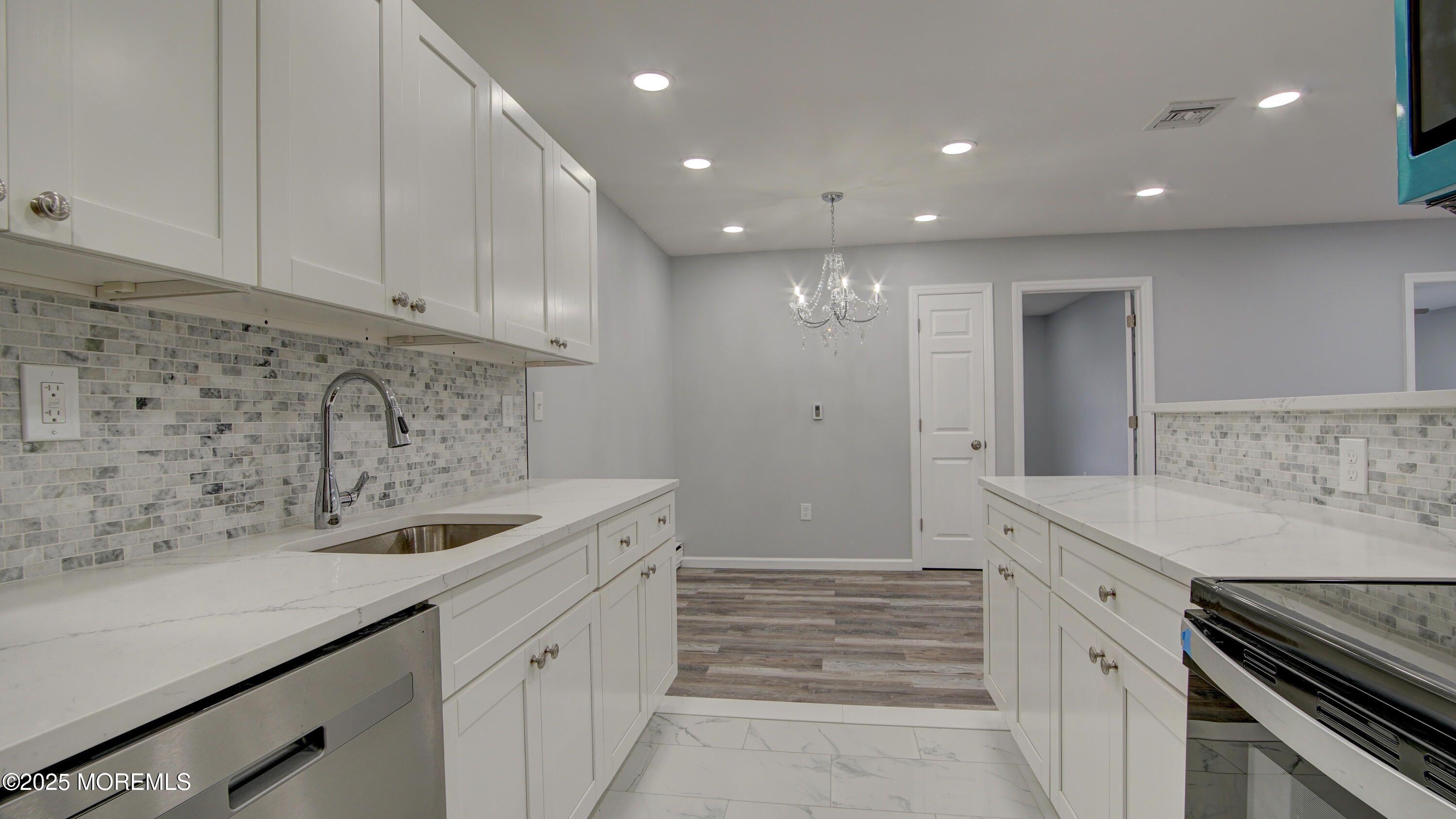 Welcome to this stunning fully renovated 2-bed 1-bath ranch in the highly desirable Rossmoor 55+ adult community. Enjoy a brand-new kitchen with opened layout featuring stainless steel appliances, granite countertops & tile backsplash. Luxury vinyl plank flooring runs throughout with recessed lighting and abundant natural light in every room. The spacious bathroom has been fully renovated with modern fixtures, marble flooring and functional skylight for natural light. 2 Large updated bedrooms and relax in the large added sunroom with views of the newly renovated stunning landscaping. Enjoy Rossmoor's top-tier amenities: clubhouse, pool, gym, tennis, and more. Gated, active 55+ community with easy access to shopping, dining, and major highways. A must-see and a can't-miss!