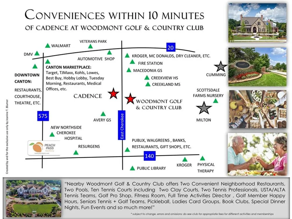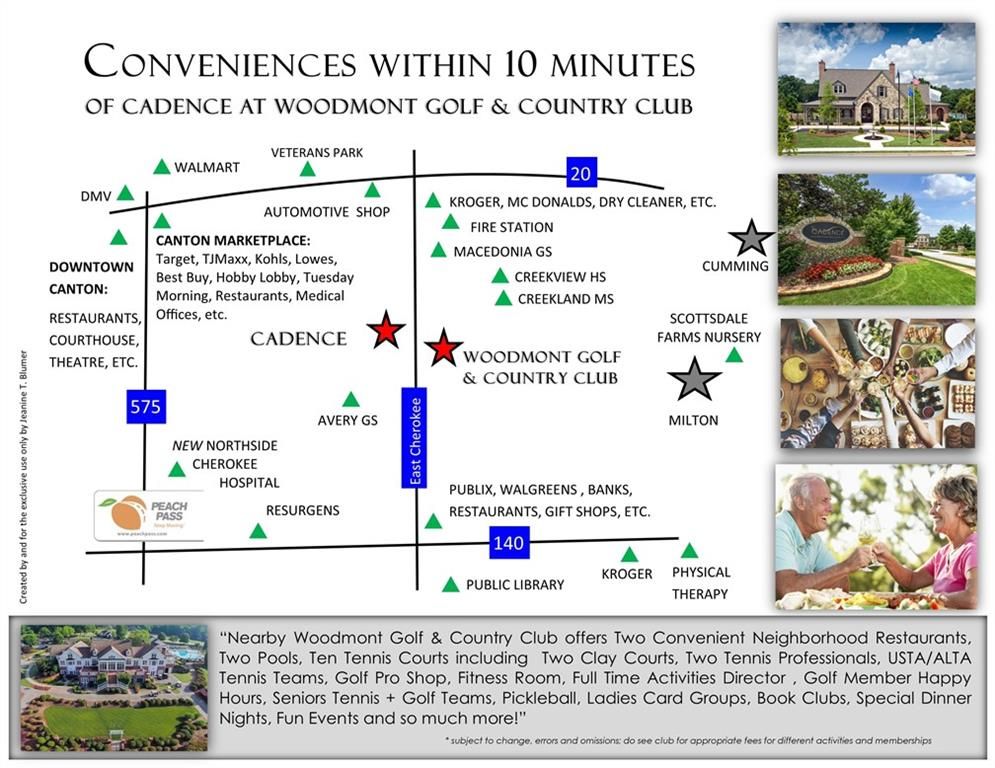 **Welcome to your Dream Home in Cadence — Cherokee County’s Premier Active Adult Community!** Truly the "jewel of Cherokee County, you'll fall in love with the European Village-Style architecture designed by John Wieland Homes. This stunning 3-bedroom, 2.5-bath home has been impeccably maintained and thoughtfully upgraded throughout. Details like generous crown molding, real hardwood flooring, and detailed cabinetry are just some of the sought-after textures you'll experience in this lovely home. Enjoy a bright and open layout with 10-foot ceilings, plantation shutters, and two spacious patios—perfect for relaxing or entertaining. The gourmet kitchen features an oversized island overlooking the family room and private courtyard, offering the ideal gathering space. Ample storage adds to the home's functionality. The luxurious owner’s suite boasts a spa-inspired bath with dual vanities, a dedicated makeup vanity, oversized shower, his-and-hers walk-in closets, and beautiful skylights that flood the space with natural light. Two Spacious Secondary Bedrooms feature a Jack and Jill Bath with two separate vanities. The Separate Powder Room is perfect for dinner guests. NEW CARPETING. HARDWOOD FLOORS GALORE. You'll appreciate the upscale real staircase to the attic storage space (not pull-down stairs). Exquisite Outdoor Living: Lovely, private backyard features a rear paver patio overlooking a landscaped, fenced yard, plus a side paver patio connected to a covered and screened courtyard patio! Terrific location that allows you to walk to the Clubhouse. Cadence at Woodmont is a gated, low-maintenance community featuring first-class amenities, including a clubhouse, pool, fitness center, walking trails, an event room with a kitchen, outdoor fireplace patio, and more. Lawn care, annual mulch/pine straw, and exterior painting every 5 years are also included. Just minutes from Woodmont Golf & Country Club, home to a Robert Trent Jones Jr. course, two restaurants, tennis and pickleball courts, multiple pools, and more - see club for membership details. This exceptional home won’t last—schedule your showing today!