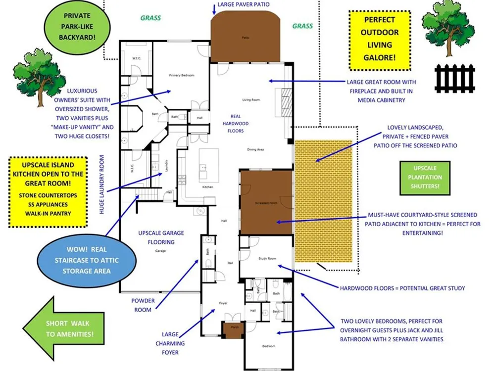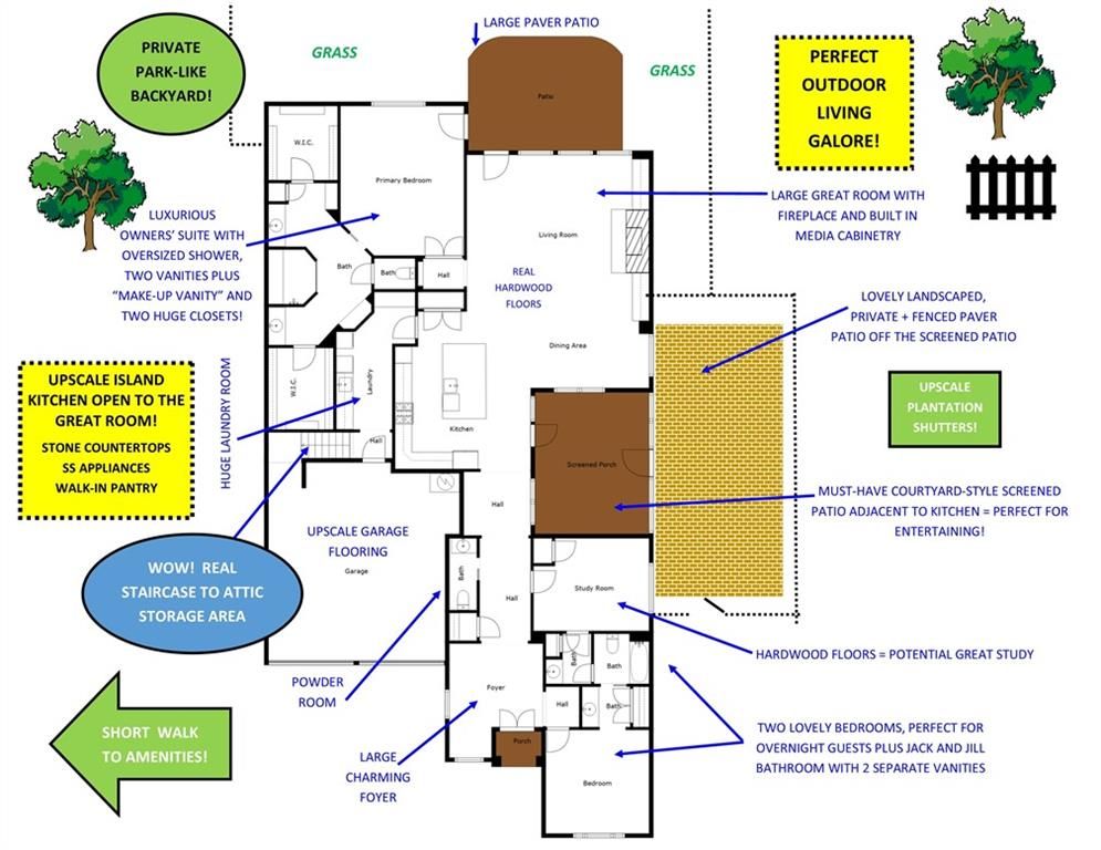 - Bookcases, Crown Molding, Double Vanity, Entrance Foyer, High Ceilings, High Speed Internet, His and Hers Closets, Permanent Attic Stairs, Tray Ceiling(s), Walk-In Closet(s), Plantation Shutters, Family Room