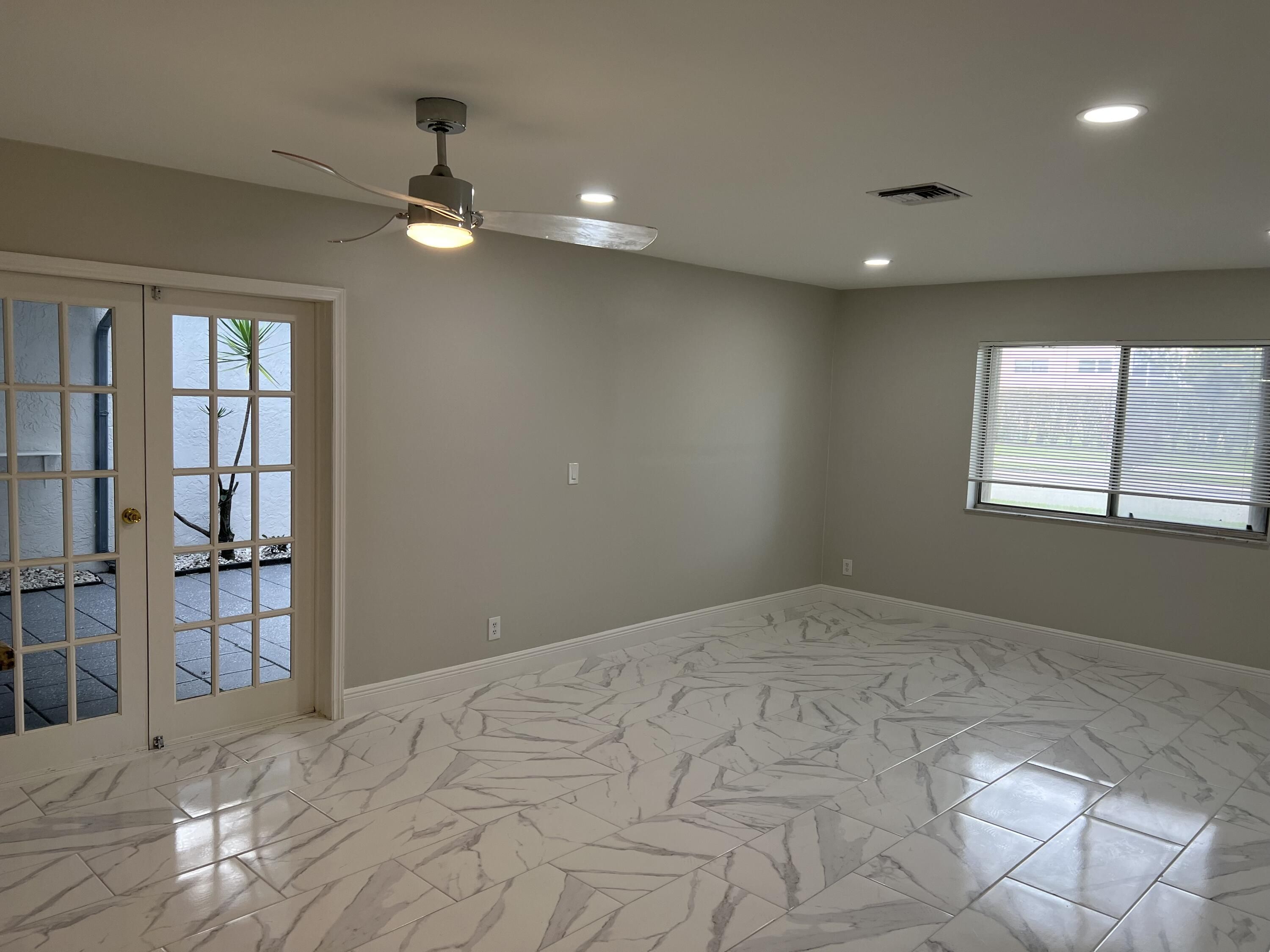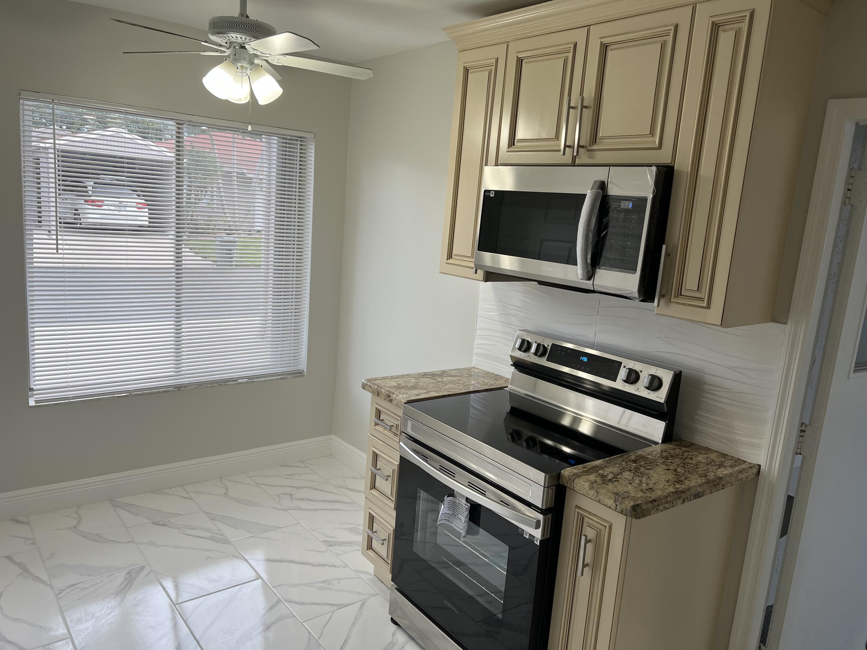 Renovated, New Stainless steel appliances, bathroom vanities ,2 walk-in showers, new toilets, new window treatments. Wood Kitchen cabinets with granite. New 5.1/4 baseboards,freshly painted. New up to code curcuit breaker box. freshly painted driveway. French door leading out to the large screened in patio partially covered with storage room. A/C 2020, All Appliances 2023. Acordian shutters throughout. 1 person must be at least 55 and have a 650 credit score, No kids under 15. Cable,internet,lawncare and pest control incl Close to shopping ,, both major hwys. approx 6 miles to the beach & downtown Delray. Service animal allowed with proper documentation