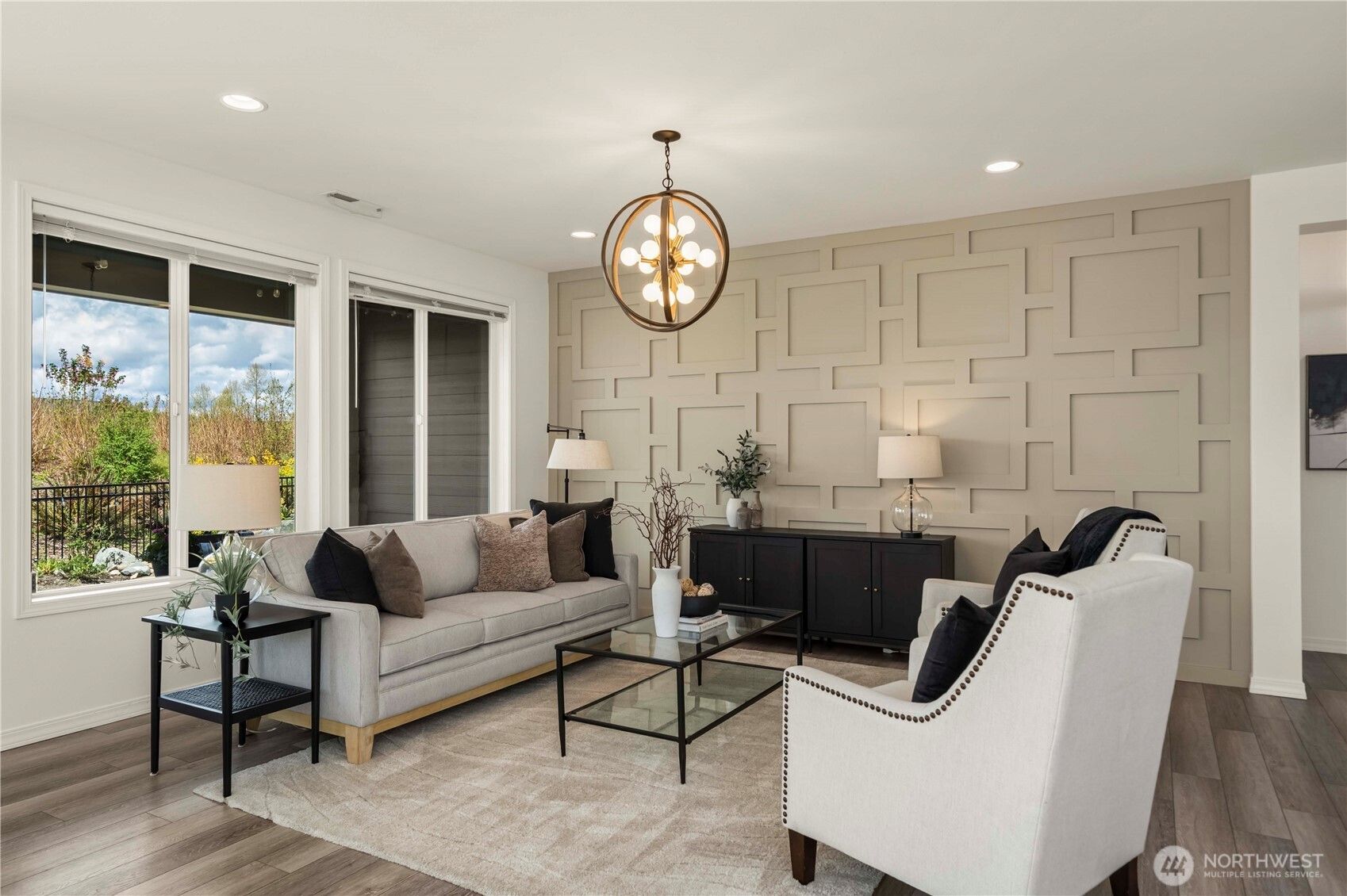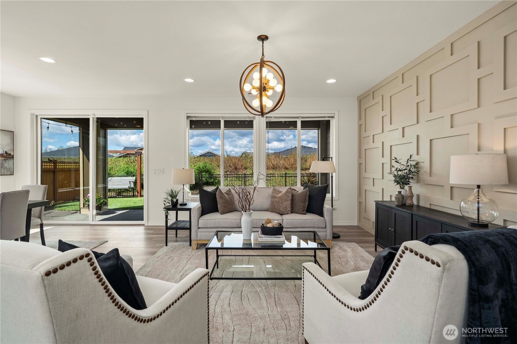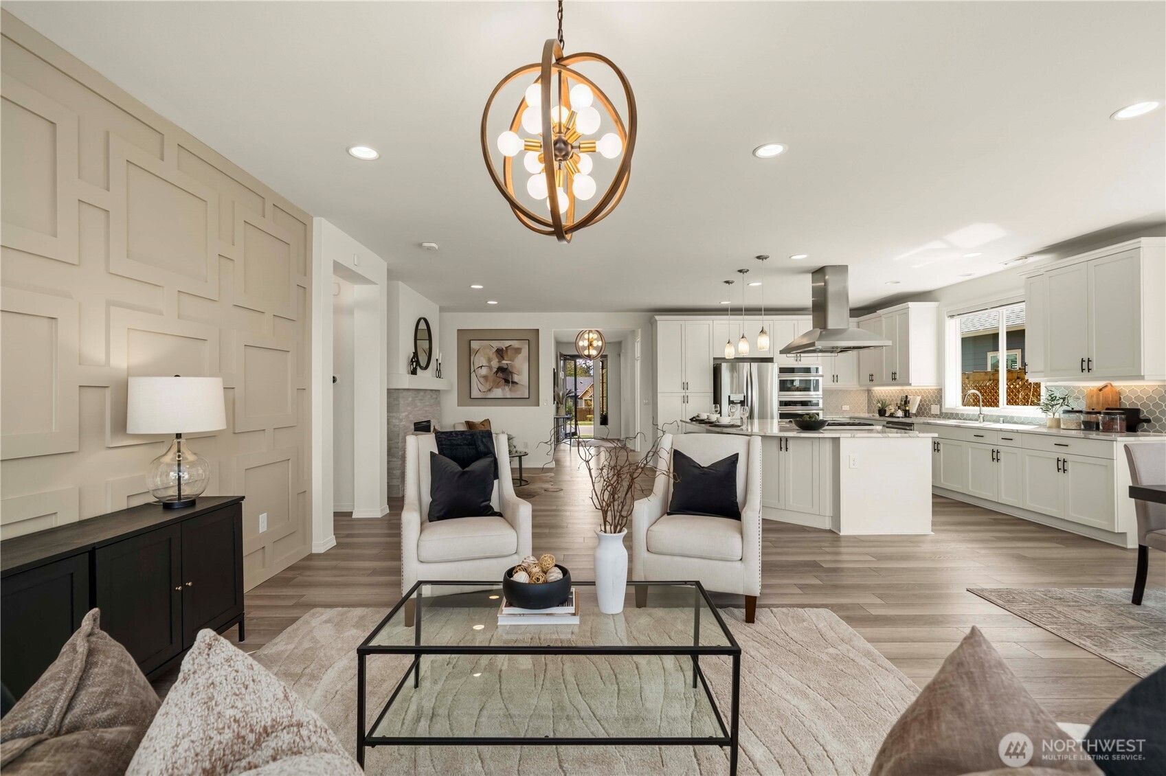 Discover this impeccably upgraded Elate w/ Mt. Rainier views in the acclaimed 55+ Trilogy at Tehaleh resort community. Perfectly positioned against a permanent green space w/ exceptional privacy, expansive western exposure & breathtaking sunsets. This home offers an exceptional sense of privacy alongside a professionally curated outdoor retreat featuring a stunning illuminated water feature, raised patios, top grade turf, trellises, mature rose vines & lush landscaping. Inside, the home showcases a refined, modern aesthetic w/ hard surface flooring throughout, stacked stone fireplace & a striking decorative feature wall, complemented by stunning designer lighting throughout. The chef’s kitchen is a true centerpiece—highly upgraded w/ premium GE Monogram appliances, elevated finishes, Quartz counters & glass backsplash = timeless style. The primary suite offers a luxurious escape, complete w/ a spa-inspired bath featuring an oversized glass shower w/ dual shower heads, & a Toto automatic heated-seat toilet. Additional highlights include motorized sunshades in the great room & primary suite, blackout shades, Smart home innovation, storm doors w/ screens at both the front entry & garage service door, fully fenced & irrigated grounds & Shelf Genie storage systems in kitchen. Insulated interior walls & garage, heat pump. Experience the amazing Lodge/pool/fitness/restaurant & bar/Pickleball/retail/Post & Pour bistro/trails.