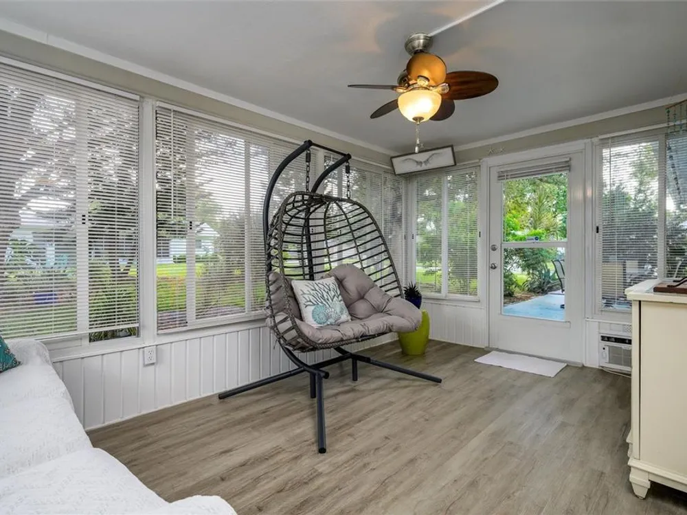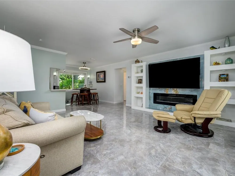Come experience the best of Highland Lakes on Lake Tarpon — a vibrant 55+ active community! $5,000 towards closing costs!!! This beautifully remodeled, turnkey 2-bedroom, 2-bath home is perfectly situated on a spacious corner lot, featuring an inviting front porch and a backyard designed for outdoor entertaining. Step inside to discover elegant porcelain tile flooring, stylish built-ins on a tiled accent wall, and a bright, open layout filled with natural light. The galley kitchen shines with stone countertops, a new backsplash, and updated cabinetry. Enjoy peace of mind with newer upgrades throughout — including the roof, storm windows, AC, stainless steel appliances, modern lighting, and ceiling fans. A cozy family area connects seamlessly to the sunroom, creating an ideal indoor-outdoor living space. The thoughtfully landscaped exterior offers privacy and tranquility, perfect for relaxing or entertaining. Highland Lakes offers resort-style amenities, including three 9-hole executive golf courses, tennis and pickleball courts, pontoon boats with available boat slips, RV storage, an Olympic-size pool and spa, auditorium, and endless clubs and social events. All just minutes from Dunedin, the famous Sponge Docks of Tarpon Springs, and the white-sand beaches of Honeymoon Island. Don’t miss the opportunity to make this beautifully updated home yours!