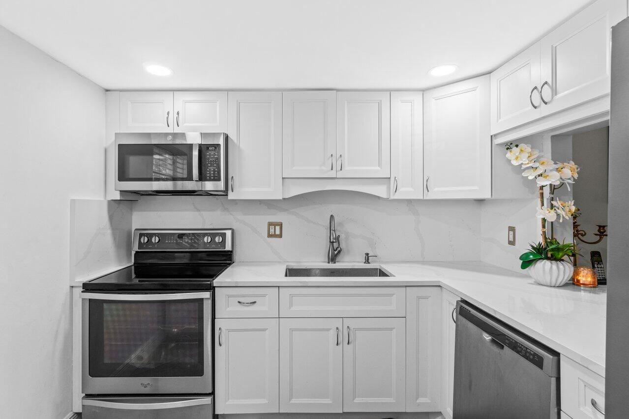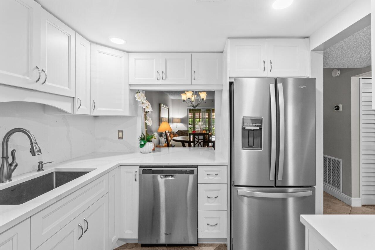 Corner first-floor condo featuring 2 spacious bedrooms and 2 full bathrooms. The highlight of this home is the beautifully remodeled kitchen--boasting modern finishes, updated cabinetry, and sleek countertops--perfect for cooking and entertaining. Enjoy peace of mind with newer air-conditioning and the added convenience of parking located directly in front of your unit. The open-concept layout offers a great flow from the kitchen to the living and dining areas, with plenty of natural light throughout. Located in a well-maintained community offering a wide range of amenities--pool, clubhouse, fitness center, and more--this condo combines comfort with lifestyle. It's just minutes from the Turnpike and I-95, offering quick access to shopping, dining, and the best of South Florida living.