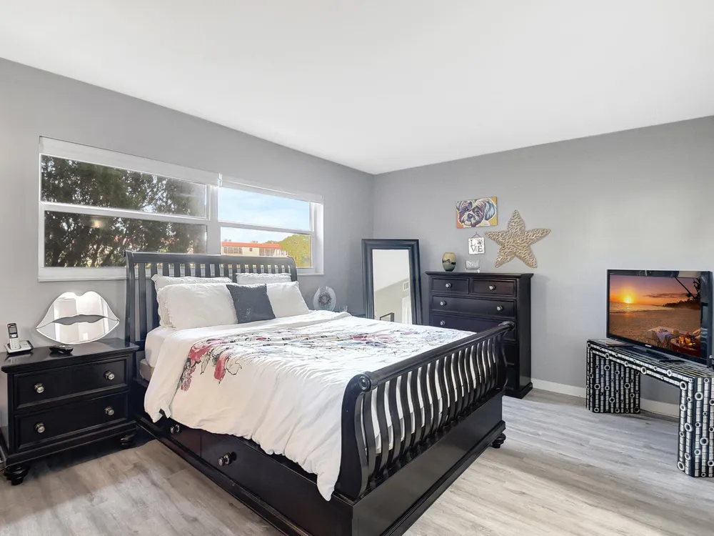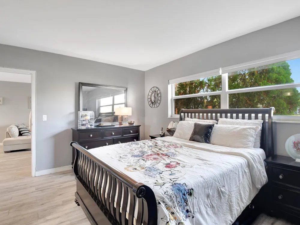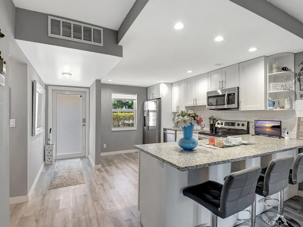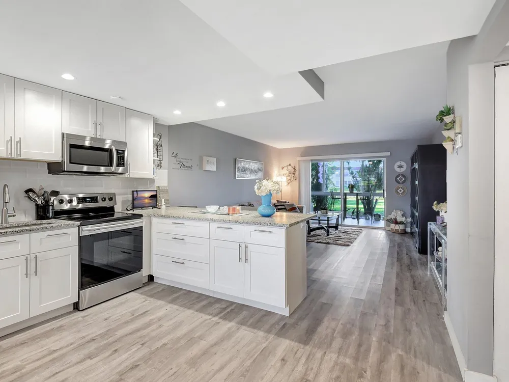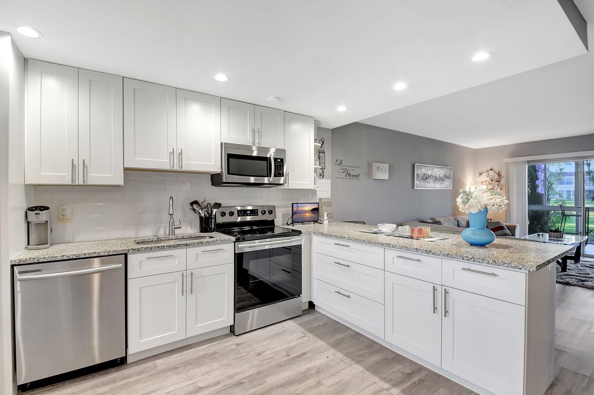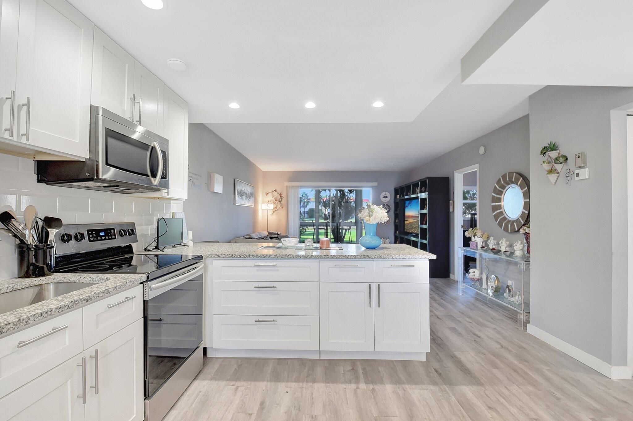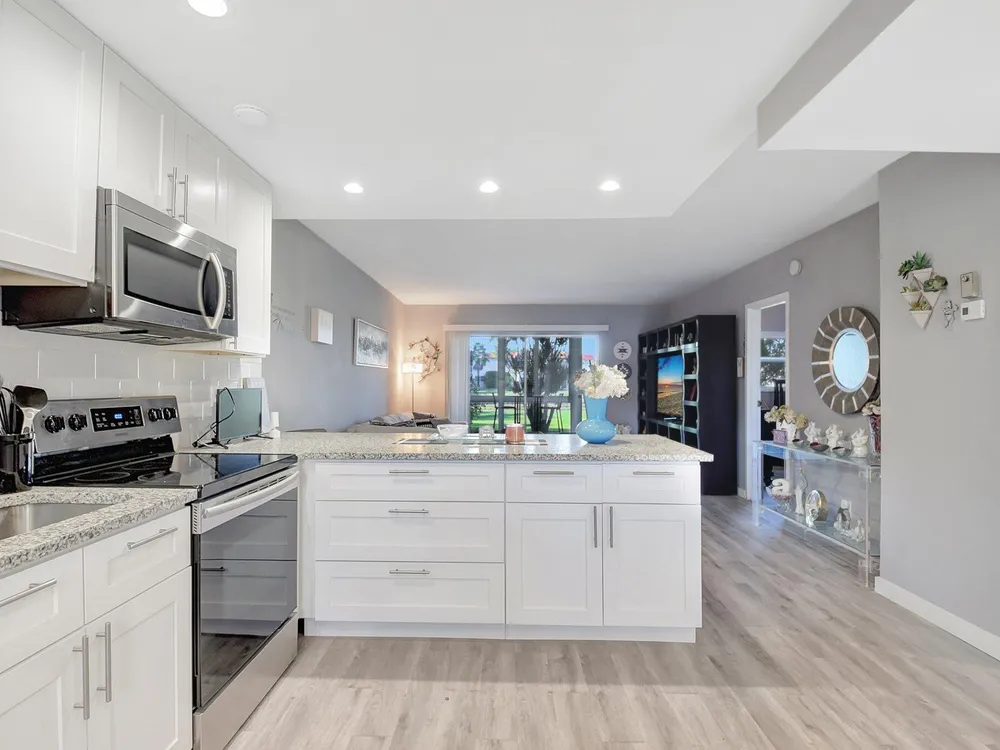 Move right in to the totally renovated (3 years ago) 2 Bedroom 2 Bath Lake View Condo with newly installed HURRICANE WINDOWS AND DOORS!! Deeded parking spot just 20 feet from the entrance door! beautiful eat-in-kitchen with White Shaker Cabinets and Stainless Steel Appliances with bar seating for four. Living Room, Lanai and Primary Bedroom overlooking the lake. This 55+ Community boasts a Pool, Fitness Center, Bocce, Tennis, Pickleball Courts, Shuffleboard, BBQ pits and more!