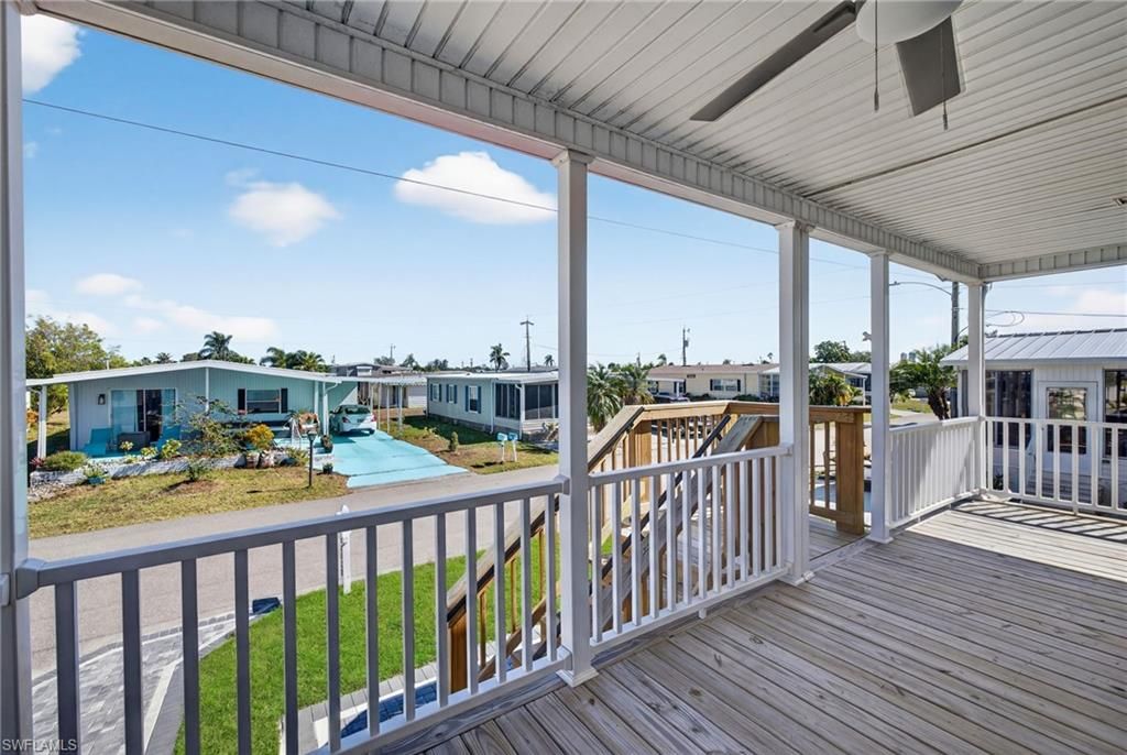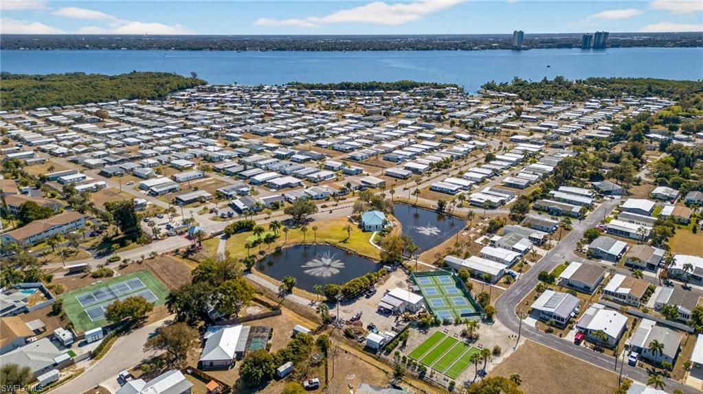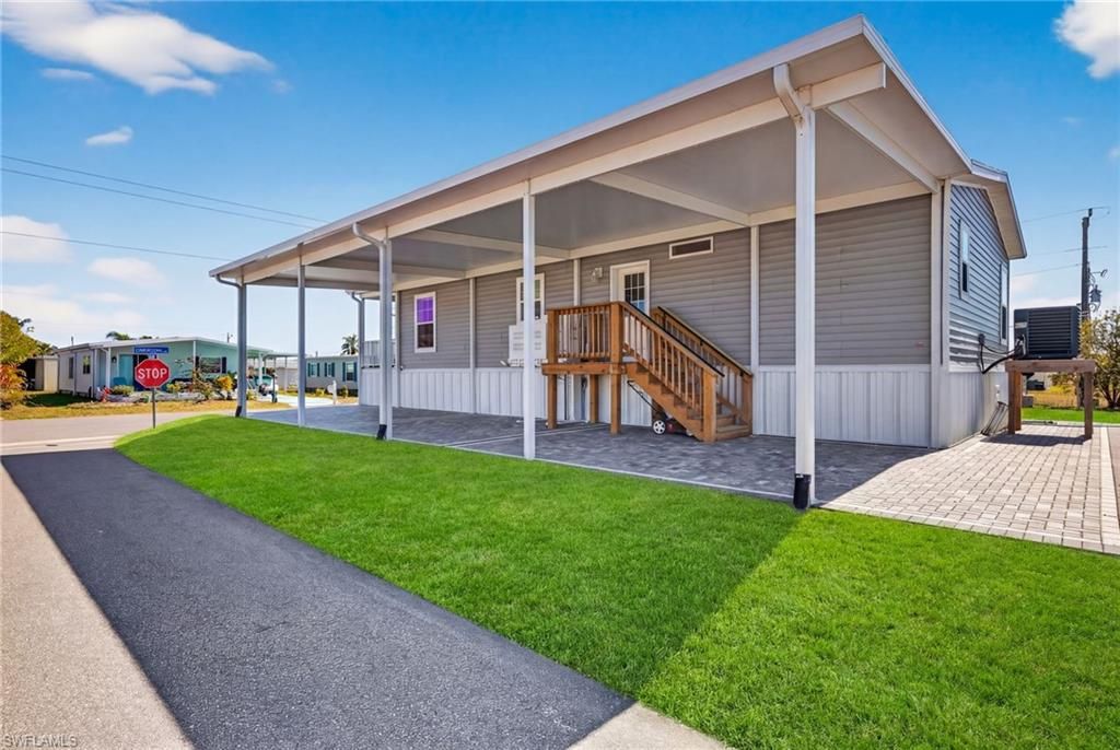 Welcome to Old Bridge Village, North Fort Myers’ premier 55+ Boating Community! This exceptional, newer manufactured home is Elevated to current flood code on a professionally engineered pad with 350 tons of compacted lime rock, offering outstanding Stability and Peace of Mind. Designed with comfort and safety in mind, the home features Dual Staircases built to hurricane code, a Wheelchair Lift for Accessibility, and a Covered Front Porch with a ceiling fan for relaxing outdoors. The Sealed Paver Driveway is also elevated to protect vehicles and offers Ample Parking for two vehicles plus a golf cart, while the permitted Carport is engineered to code for Extra Protection. Take advantage of footers already poured and inspected for a future 5'x10' shed. Inside, enjoy efficient comfort with a split unit A/C within the Open Floor Plan and comfortable layout. This move-in ready home is thoughtfully designed for long-term value and easy living.Old Bridge Village offers unmatched amenities to support an active, vibrant lifestyle. Residents have access to a state-of-the-art Health and Fitness Center, two heated Saltwater Pools and a Spa with beautiful views of the marina and Caloosahatchee River, and a private deep-water marina with 81 slips and direct access to the Gulf of Mexico and Atlantic. Enjoy lighted Tennis and Pickleball Courts, Bocce Ball and Shuffleboard Courts, and an 8.5-acre Riverfront Greenspace at Palm Point for birdwatching, fishing, and picnicking. The Clubhouse serves as the social hub of the community, hosting events, activities, and clubs year-round. Golf enthusiasts will appreciate the putting green and driving net, while the horseshoe pit offers a fun way to unwind with neighbors.Experience the perfect blend of comfort, safety, and community in this beautiful home. Schedule your private showing today and discover why Old Bridge Village is one of Southwest Florida’s best-kept secrets!