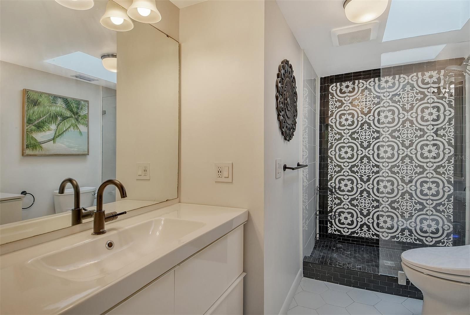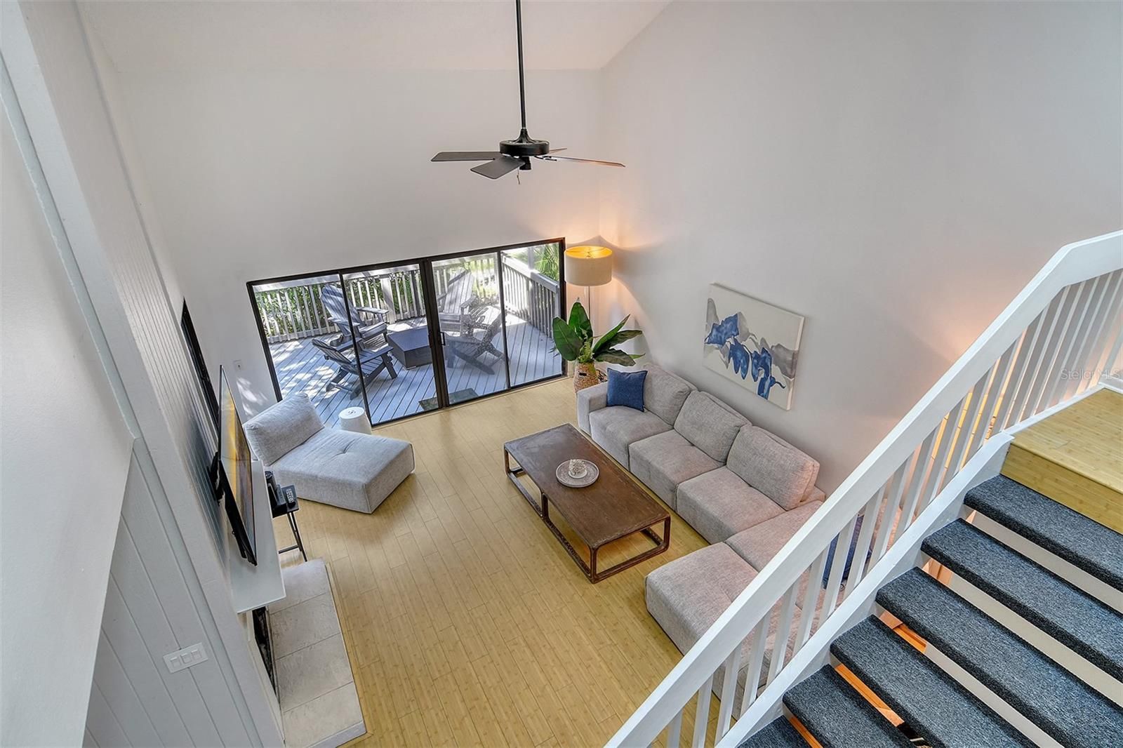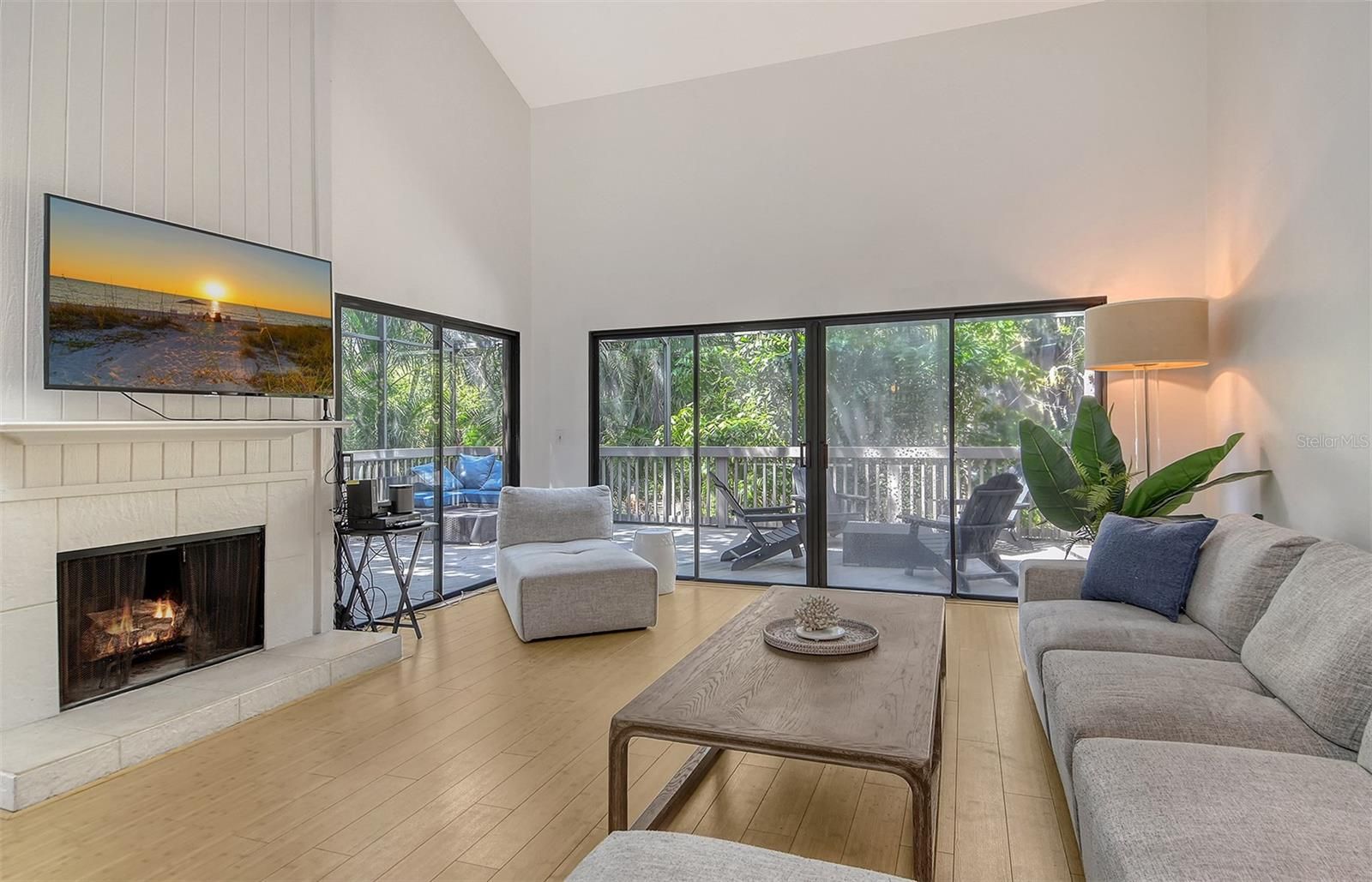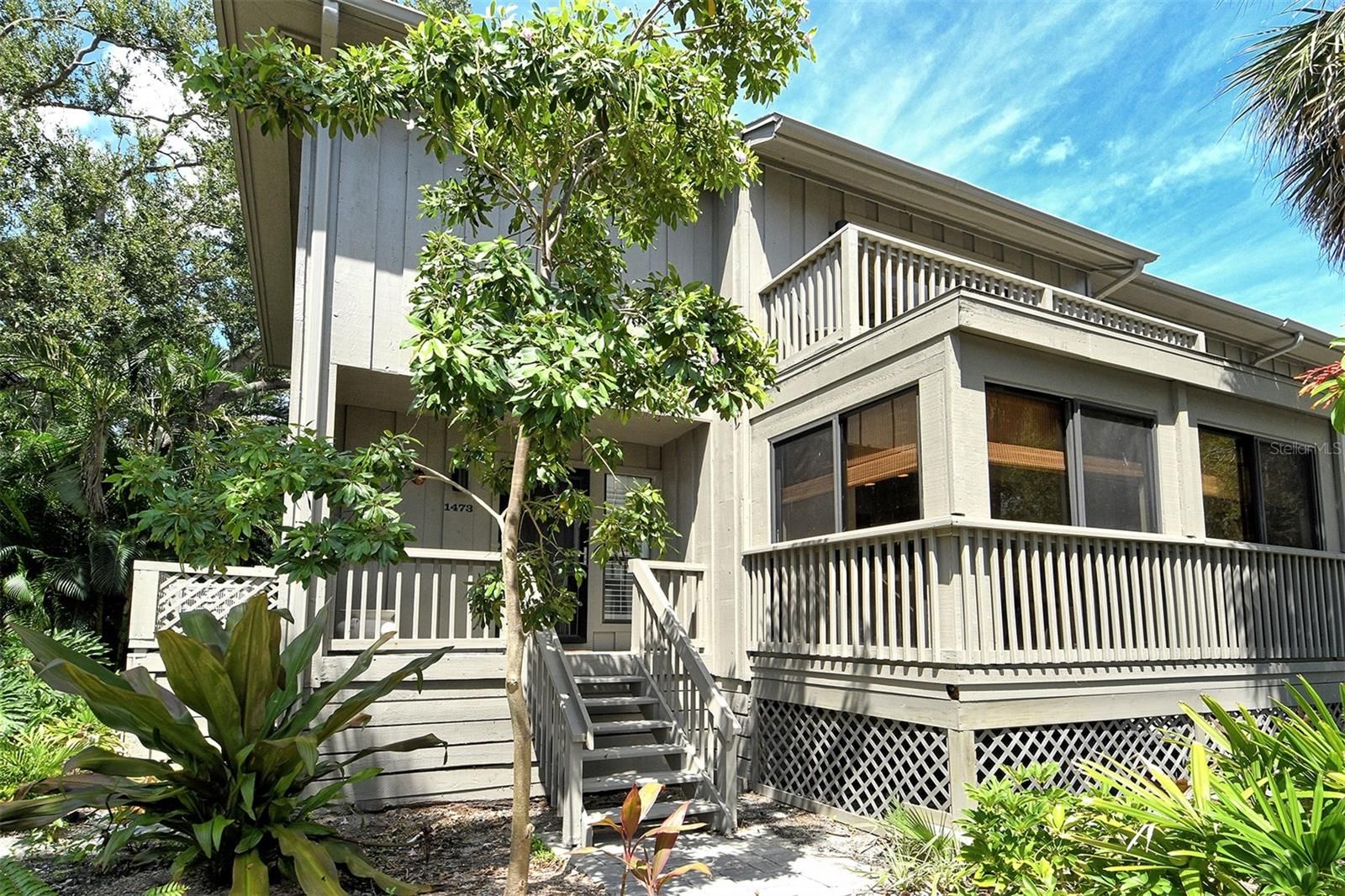 Welcome to The Landings Treehouse, one of Sarasota’s most sought-after gated communities. This spacious 3-bedroom, 2.5-bath residence offers over 2,000 sq. ft. of living space with a thoughtfully designed open floor plan that balances comfort and style. The main level features a bright living and dining area with soaring ceilings, skylights, a cozy fireplace, and access to a private lanai surrounded by lush tropical landscaping. The updated kitchen boasts granite counters, a center island, breakfast bar, solid wood cabinetry, and stainless-steel appliances—perfect for both everyday living and entertaining. Upstairs, the primary suite offers a walk-in closet, high ceilings, and a spa-inspired bathroom with skylights that fill the space with natural light. Two additional bedrooms provide plenty of room for guests, one with its own en suite bath. Throughout the home, you’ll find luxury vinyl and tile flooring, designer finishes, and built-in features that enhance functionality. Set among mature trees and serene nature, The Landings Treehouse community is known for its exclusive amenities, including a heated community pool, tennis courts, walking trails, and private access to the Intracoastal Waterway through the Landings Racquet Club (membership optional). This desirable location places you just minutes from Siesta Key Beach, Downtown Sarasota, St. Armands Circle, and a variety of shopping, dining, and cultural attractions. With its generous floor plan, resort-style amenities, and unbeatable location, this home is the perfect opportunity to enjoy the relaxed yet vibrant Sarasota lifestyle.